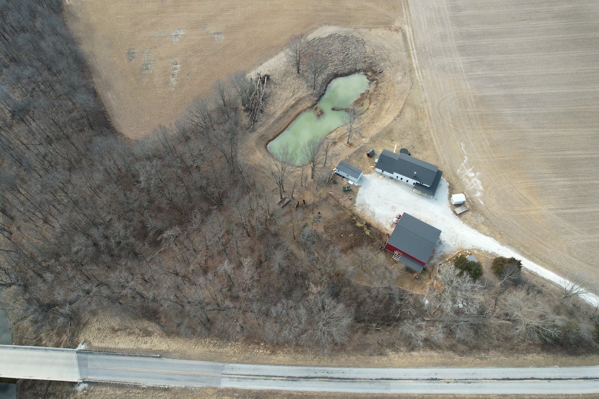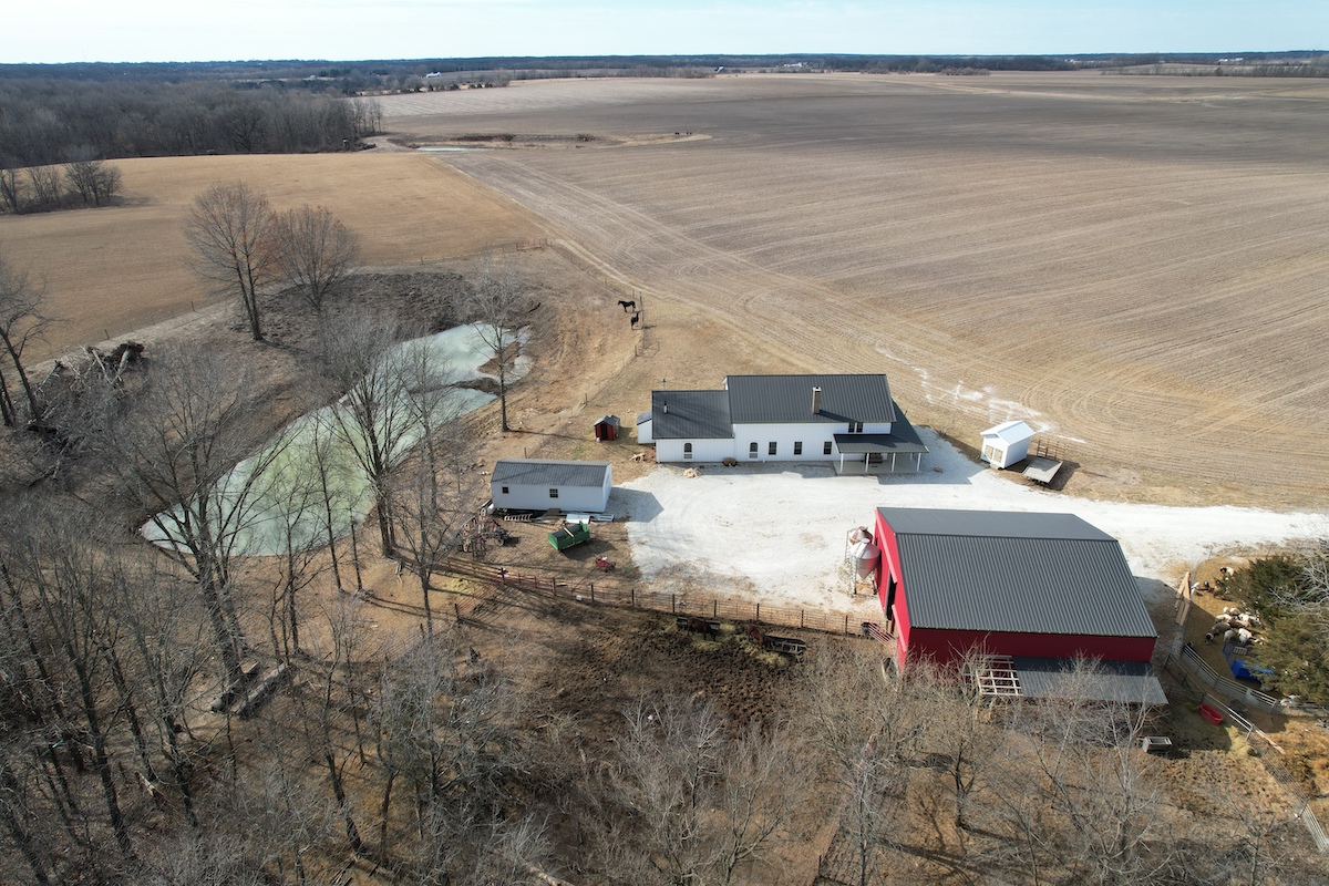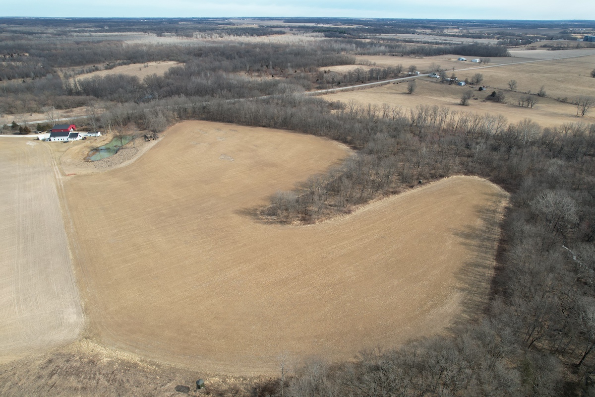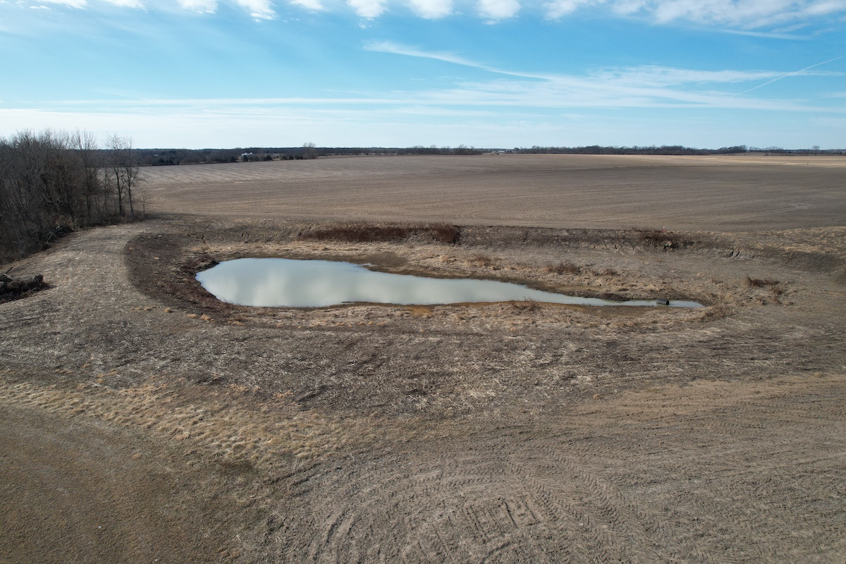 Located in eastern Hancock County, this diverse property offers a blend of residential improvements, productive tillable acreage, timber, and water features. The property includes a 2,112 square foot home built in 2025 on a concrete slab foundation. The layout of the home includes one main-level bedroom, a bathroom with a tub, an open living and kitchen area, a large 768 square foot washroom, and a 576 square foot unfinished loft that could serve as storage or additional sleeping space depending on a buyer’s needs.