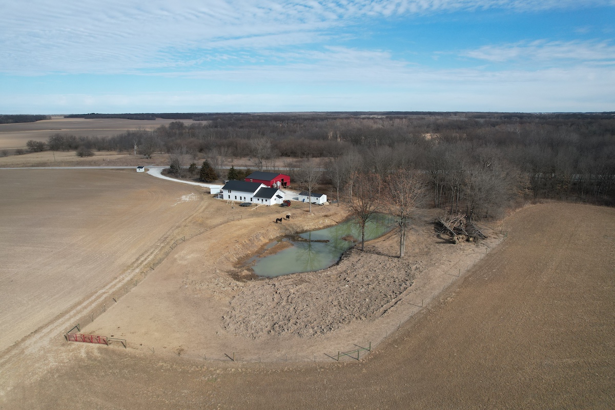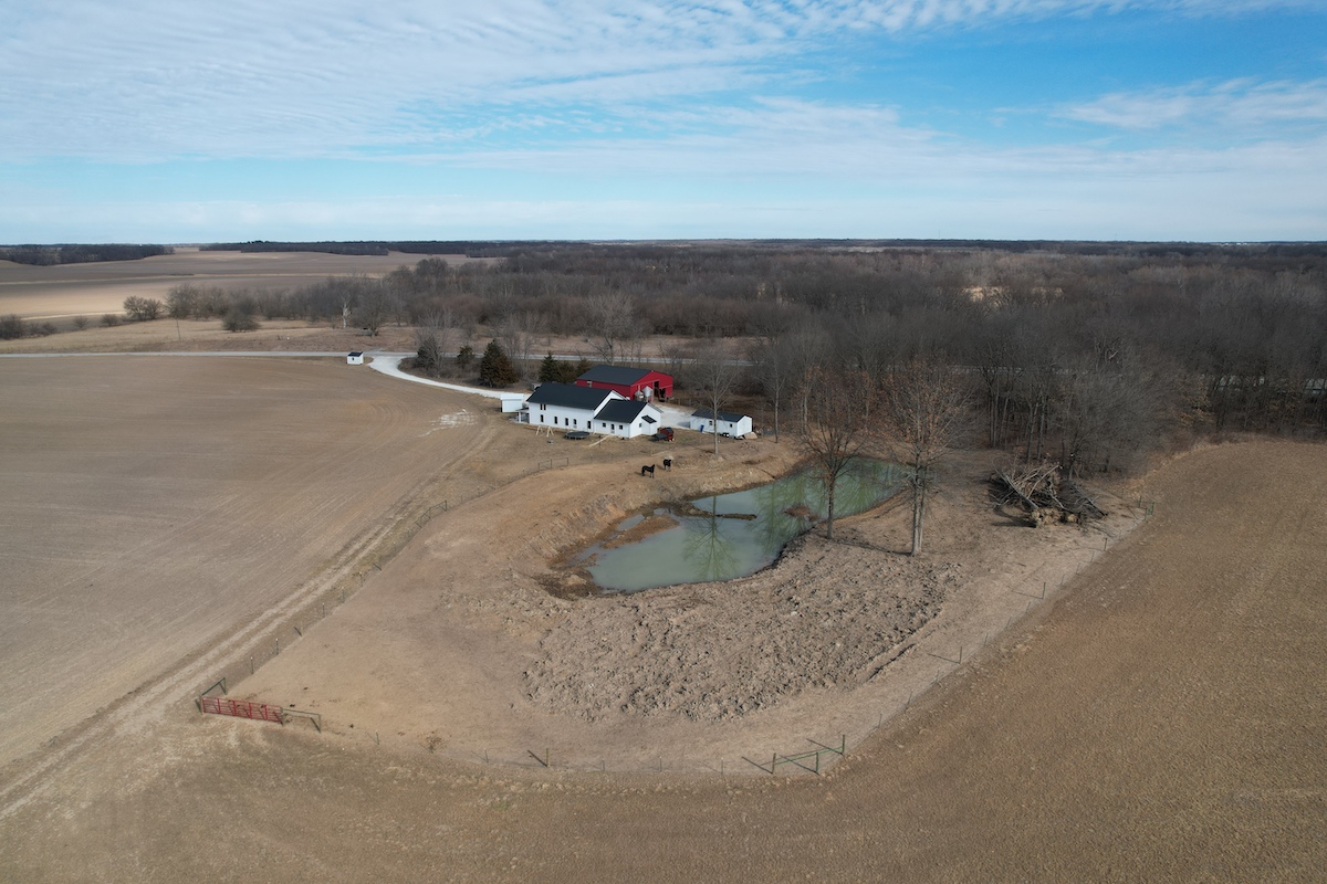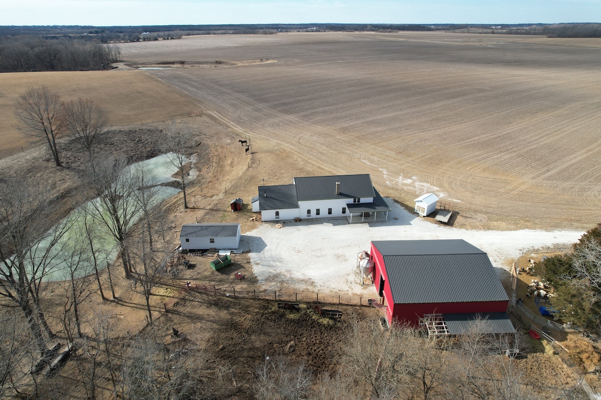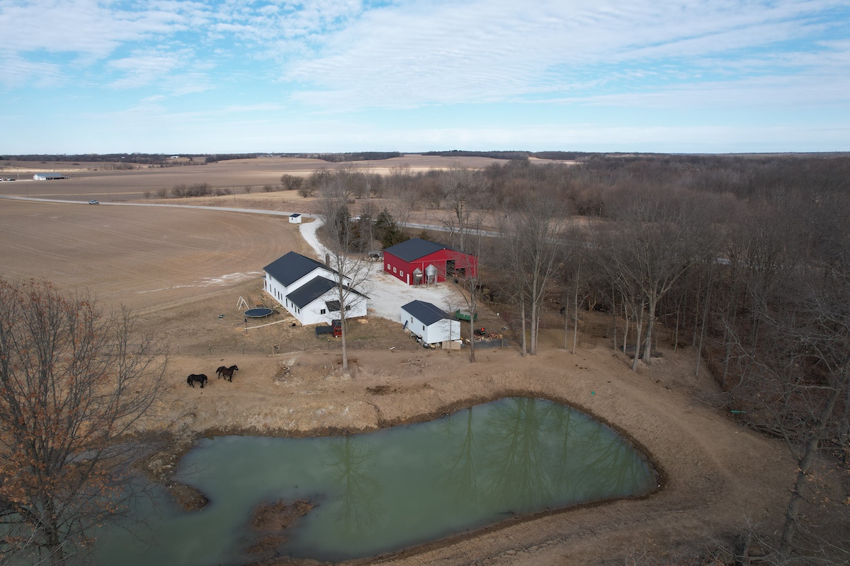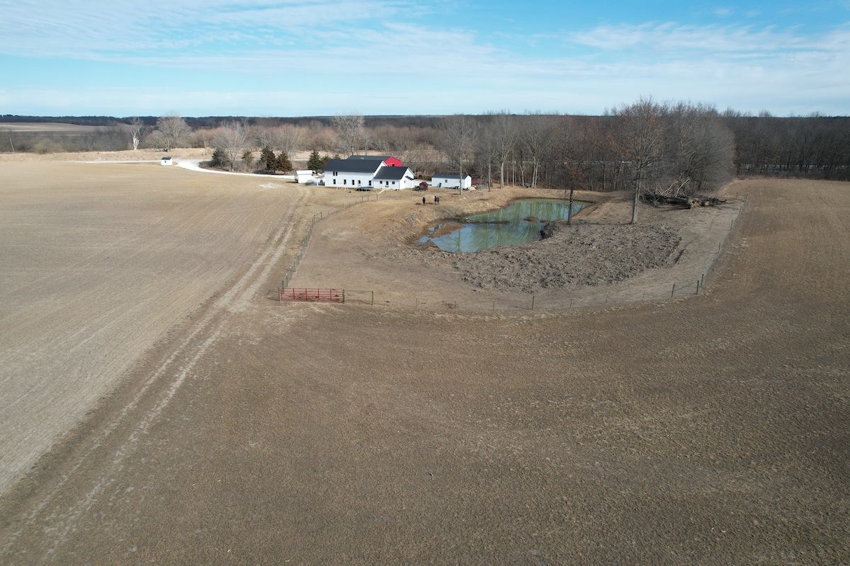 Located in eastern Hancock County, this diverse property offers a blend of residential improvements, productive tillable acreage, timber, and water features. The property includes a 2,112 square foot home built in 2025 on a concrete slab foundation. The layout of the home includes one main-level bedroom, a bathroom with a tub, an open living and kitchen area, a large 768 square foot washroom, and a 576 square foot unfinished loft that could serve as storage or additional sleeping space depending on a buyer’s needs.