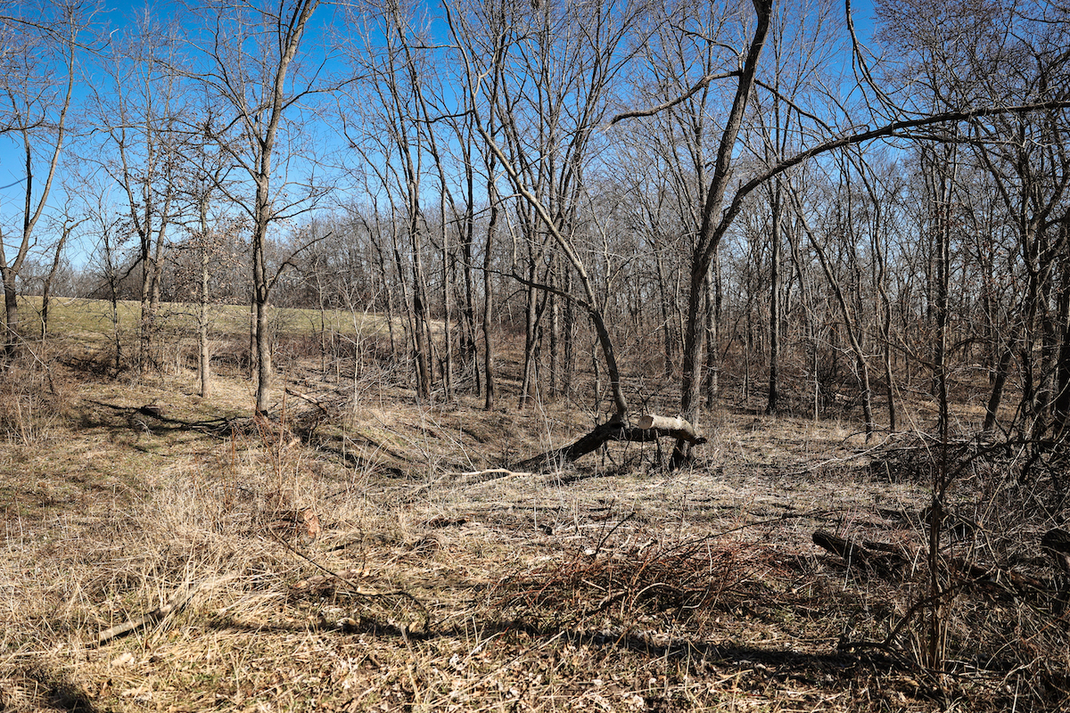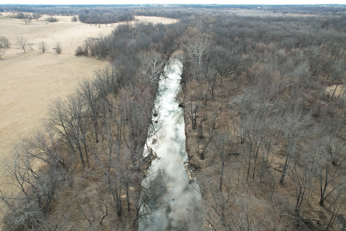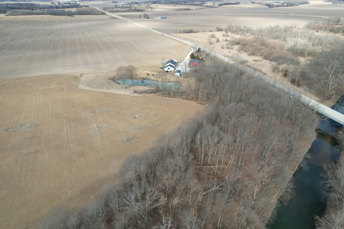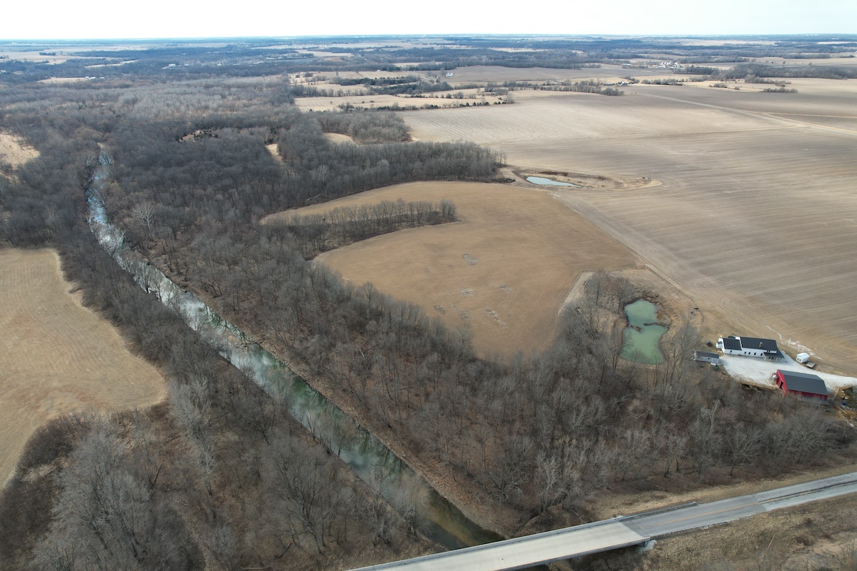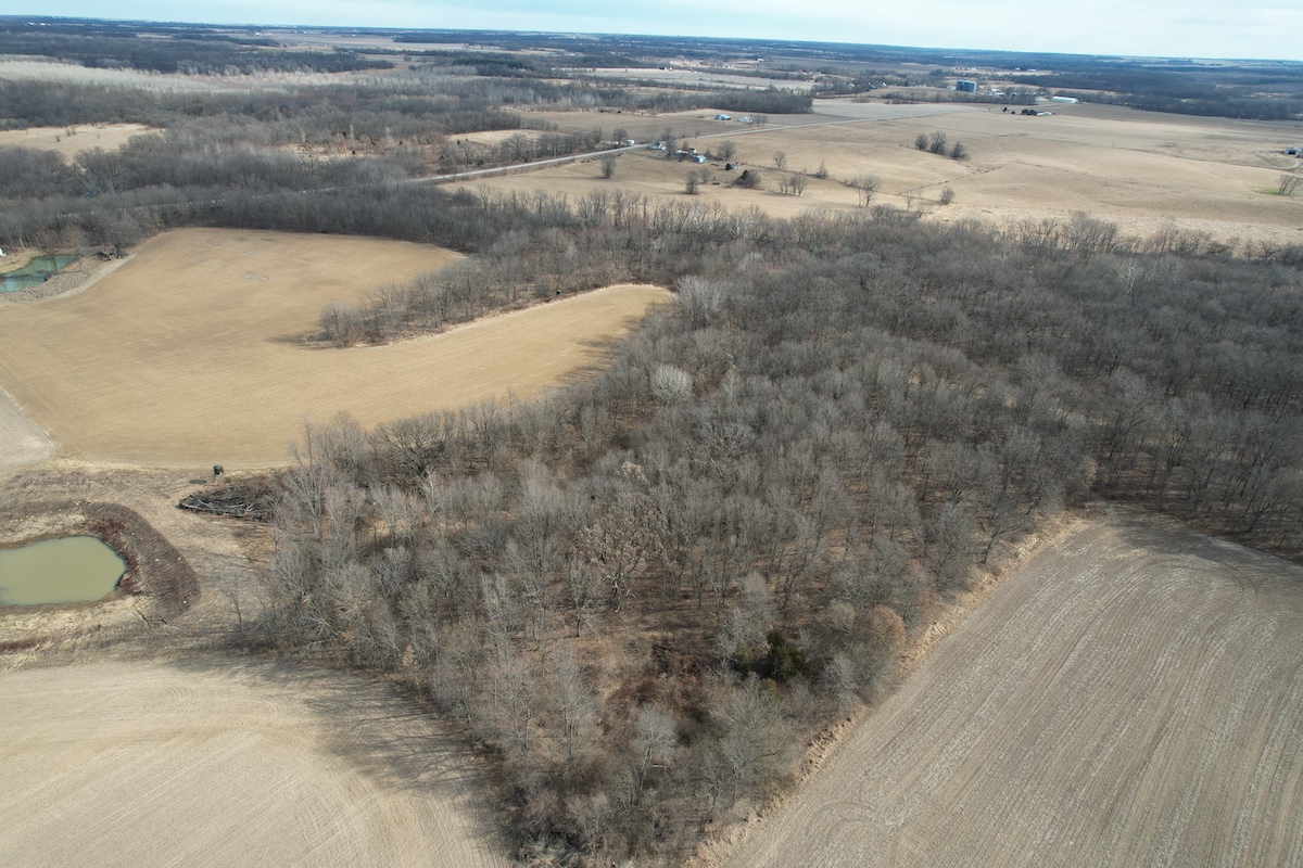 The land offers a balanced mix of open ground and timber. Approximately 12 acres are currently in alfalfa production, which could be converted to row crop tillable acres or left in alfalfa for hay production and a destination food source for deer. The remaining acreage is primarily timber with a diversity of habitat and recreational opportunities. The property has excellent connecting habitat to the south and offers great deer and turkey hunting. Water features enhance the property with two ponds—one located just east of the home inside a fenced area and another on the southwest portion of the property. The La Moine River forms the eastern boundary, adding natural character and serving as a travel corridor for wildlife and fishing opportunities.