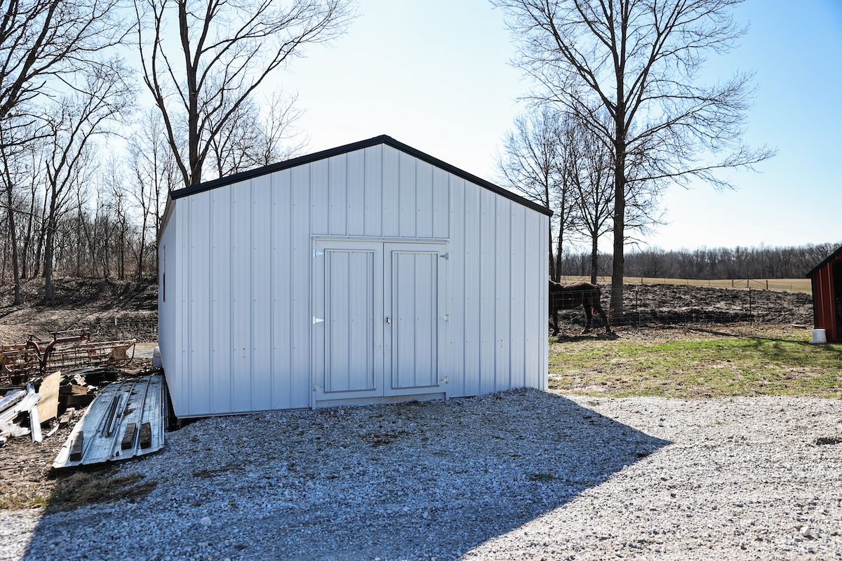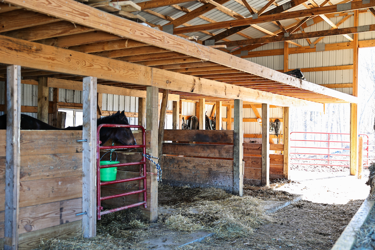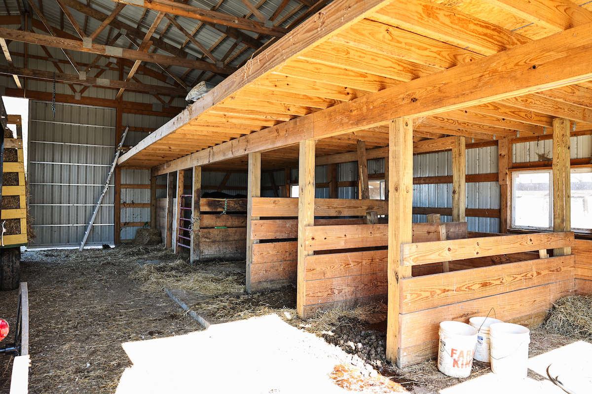 - 48x48 shed with multiple concrete floor stalls and hay loft