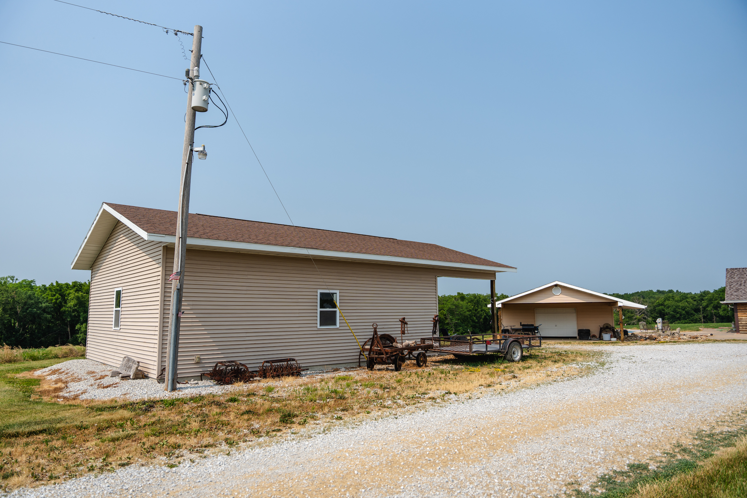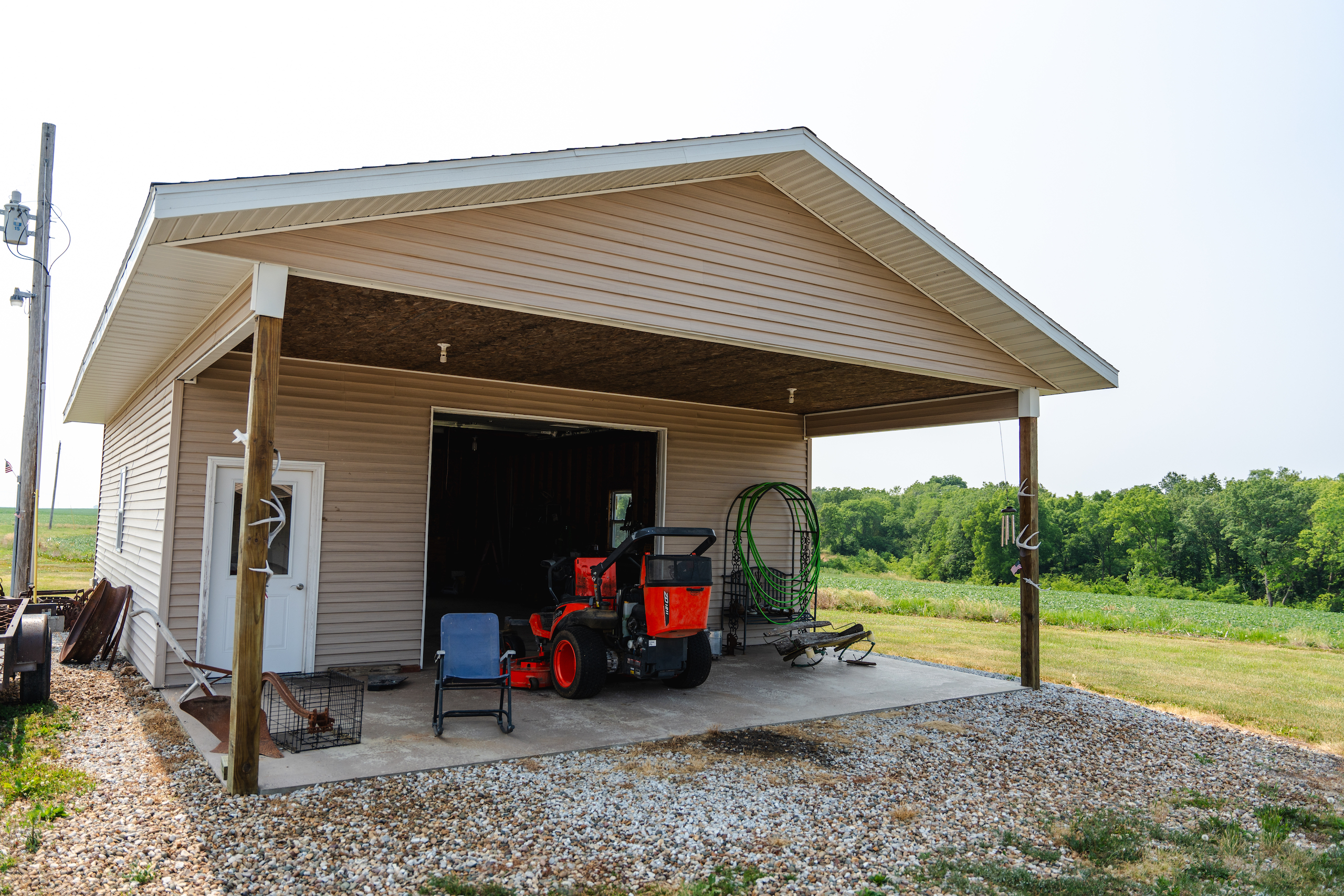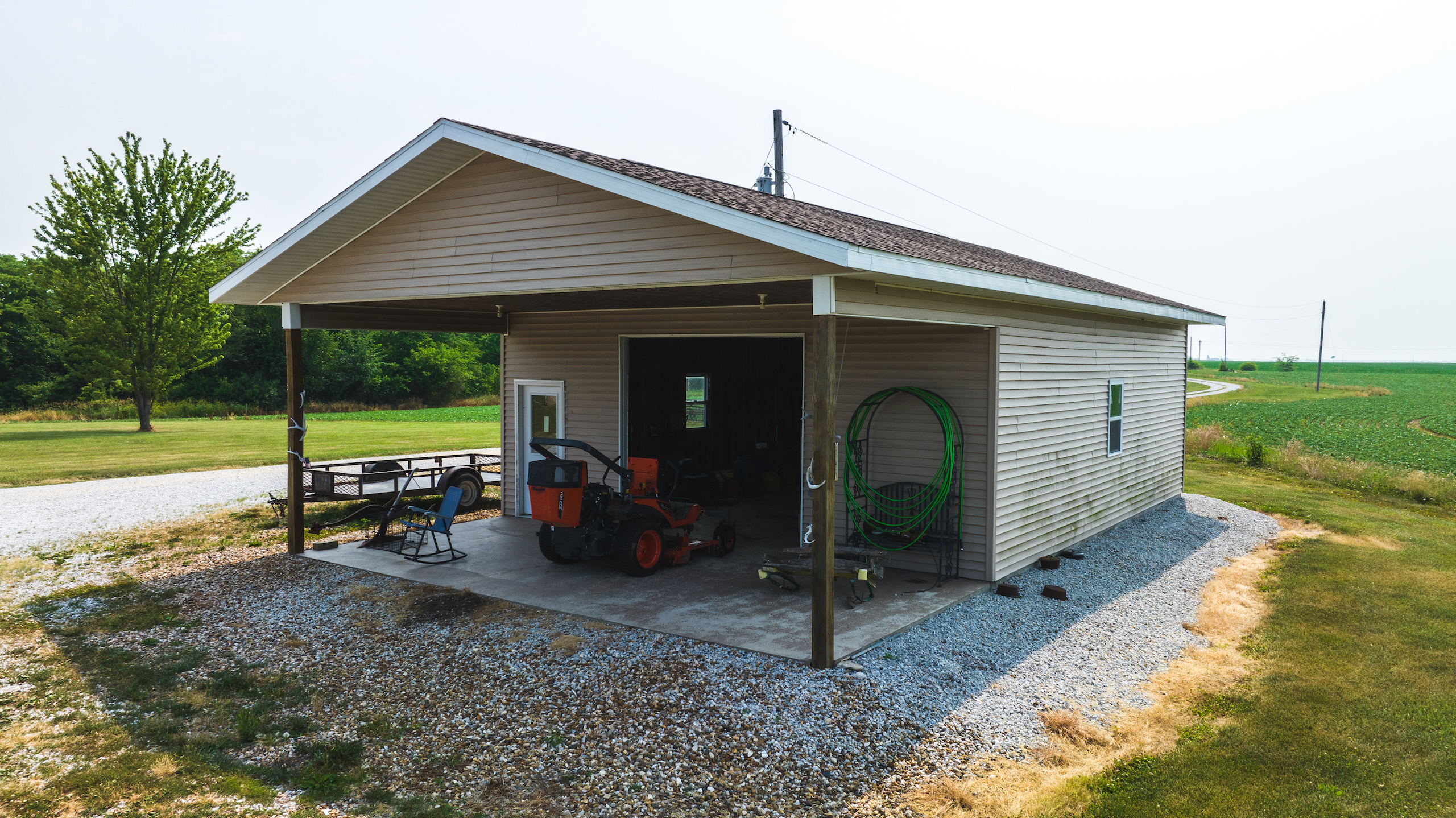 - 26’x32’ shop with concrete floor and 12’ overhang