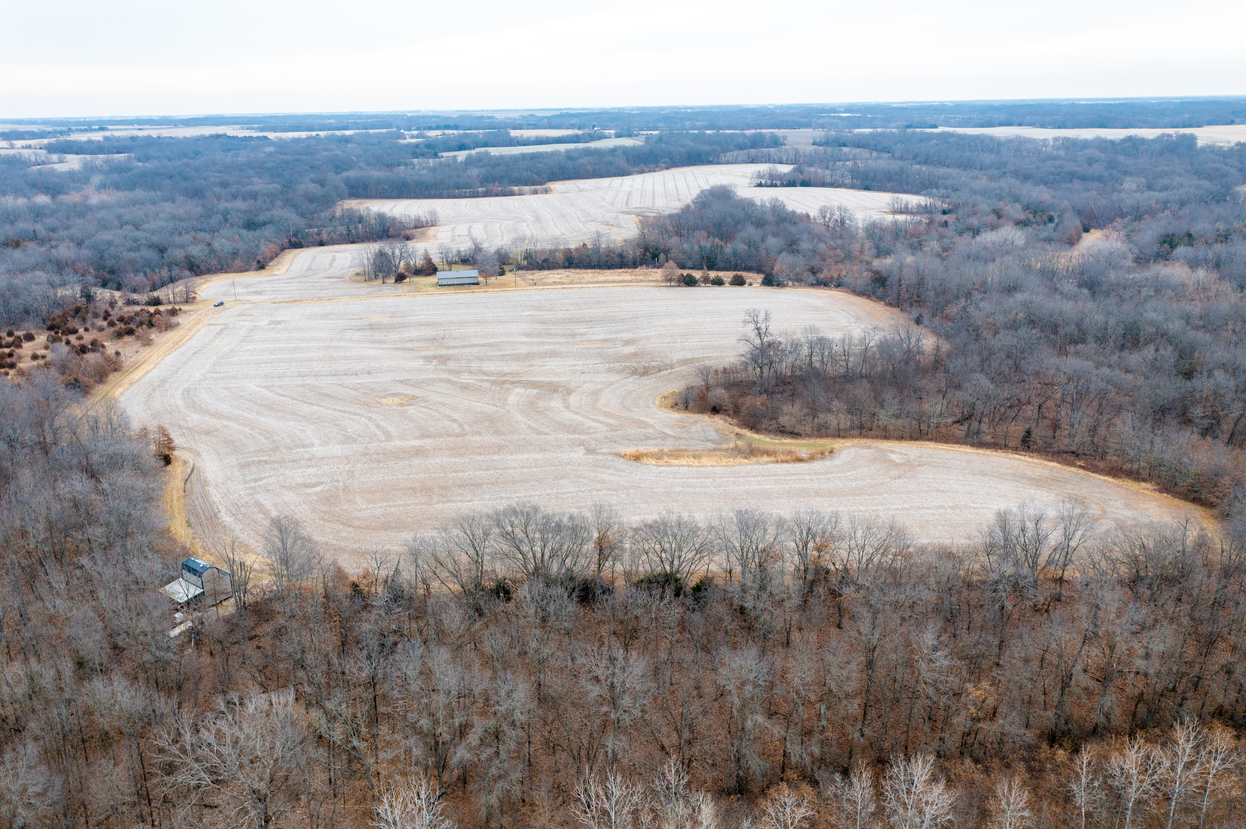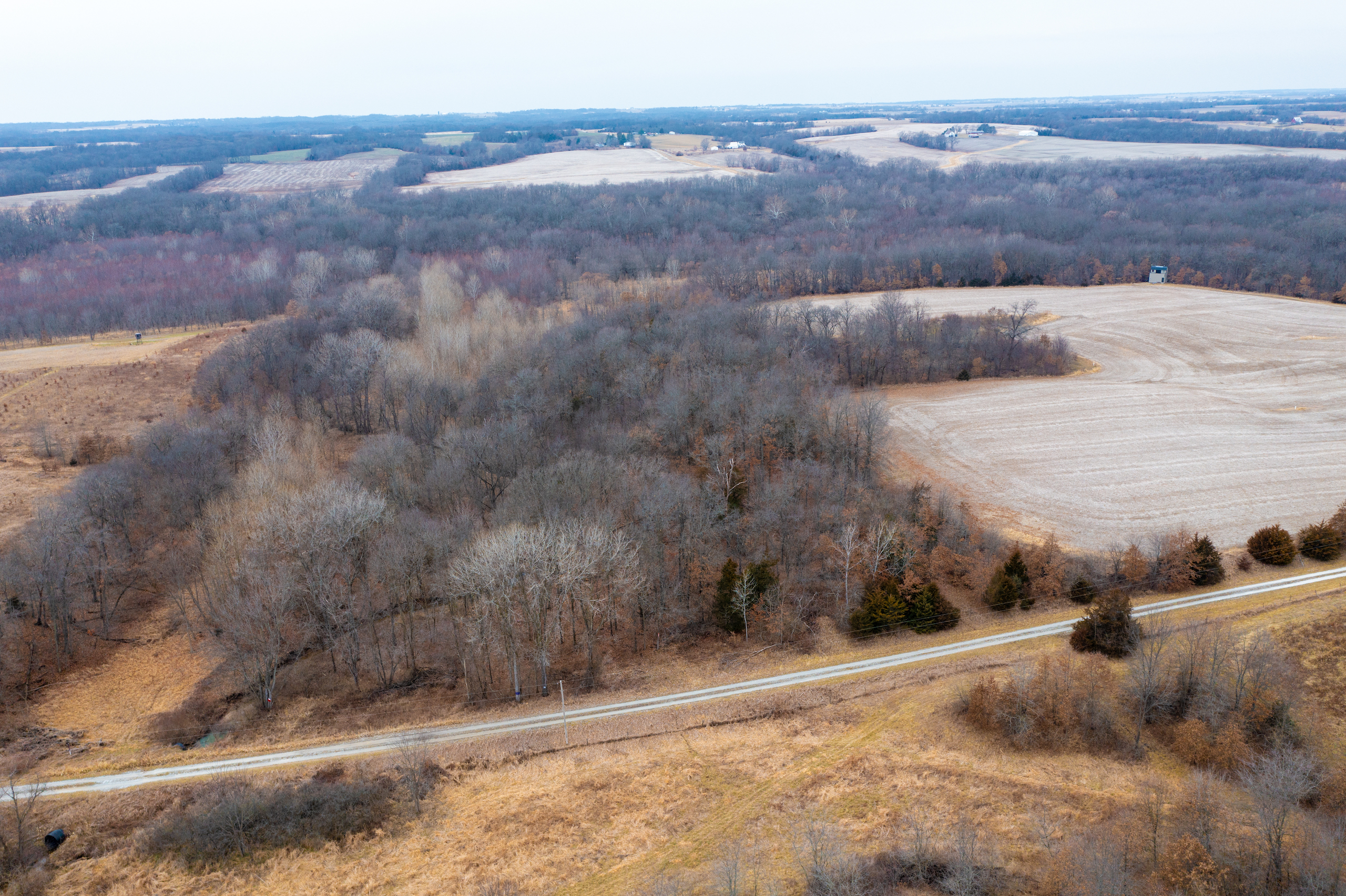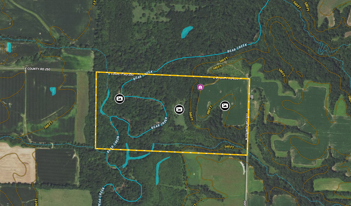 Here is an excellent opportunity to own a secluded and private hunting tract in an area known for producing quality whitetails and turkeys year after year. The property has approximately 14 acres of tillable farm ground and an additional 12.42 acres of CRP. Excellent access into the property from the east and west sides. Each access point is dead-end road access, with this property at the end of each road. Coming in from the east side down a gravel road, you will find the tillable and CRP fields on this side. The tillable field is gently rolling and has terraces and risers for erosion control. Enrolling a portion of the tillable into CRP and putting the balance in food plots would take this farm to the next level. There is a seasonal creek on the south side of the property, and Bear Creek runs through the western part of the property. Bear Creek is a natural travel corridor that meanders back and forth through the property creating several pinch points. What makes this farm a dynamite property is having east and west access allowing for access to various stand locations on opposite sides of the creek while minimizing hunting pressure. These pinch points create some obvious stand locations that are sure to produce shot opportunities year after year. The Bear Creek area has a substantial turkey population, with turkeys frequenting this property both spring and fall. There is a small cabin on the east side of the property with solar power and a wood stove, and it is ideal to stay at while hunting the property. If you are in the market for a well-rounded hunting property in a quality neighborhood, call the listing agent today for more information or schedule a private showing.