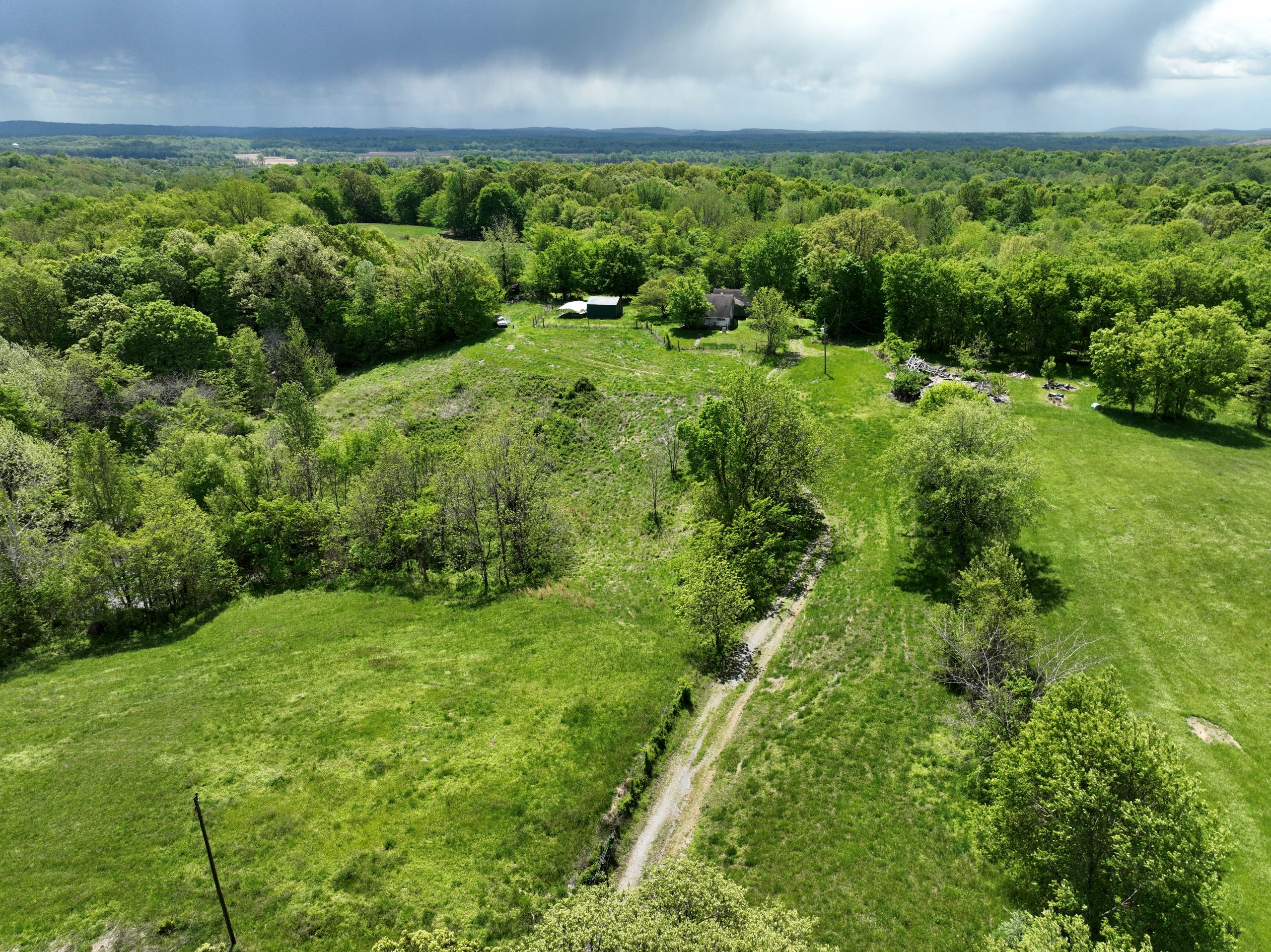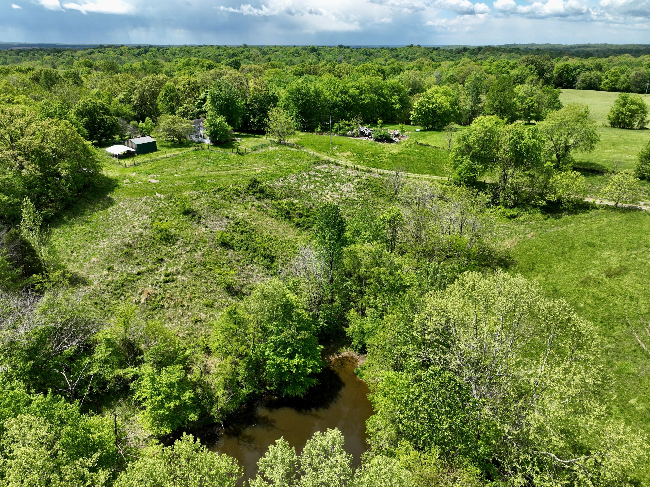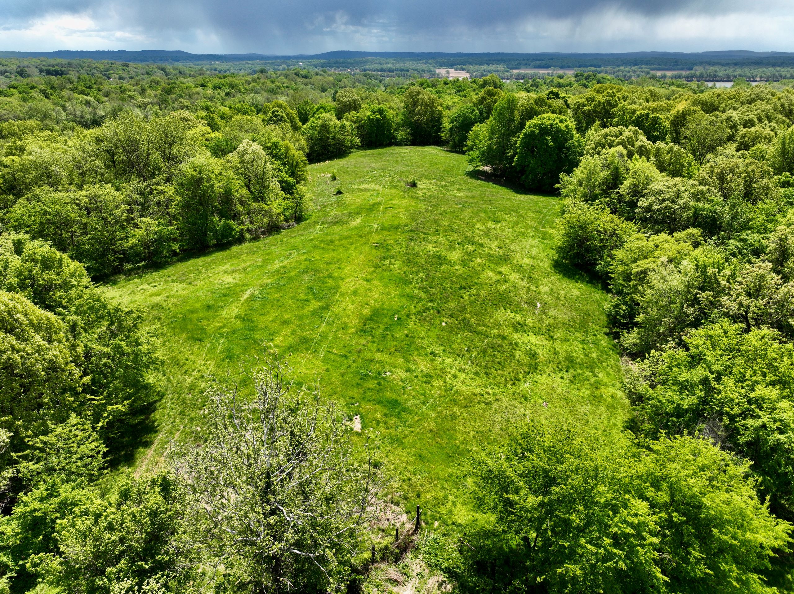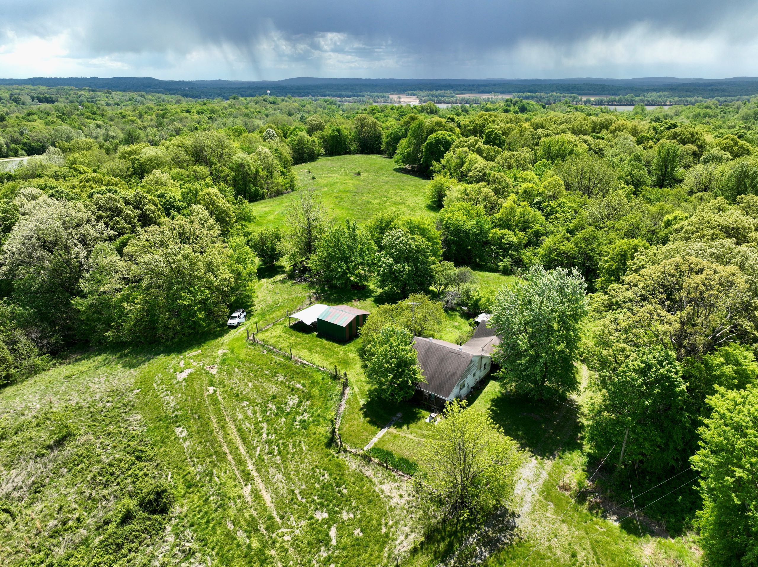 Diverse hunting tract with farmhouse and scenic views! This tract has a 2BR/1BA farmhouse, a detached 2-car garage, storage buildings, and a diverse blend of habitat types throughout. A gravel drive leads to the property, which features rolling topography and scenic views that are sure to take your breath away. Located just half a mile from the Ohio River, this property offers a diverse blend of habitat types, including 17+/- acres of open ground that provides ideal food plot locations and lots of edge and transition cover. It has timbered ridges and draws with softwoods, mast-producing hardwoods, and areas of dense security and bedding cover throughout. Access trails, a small pond, and drainages add to the charm of this hunting tract.