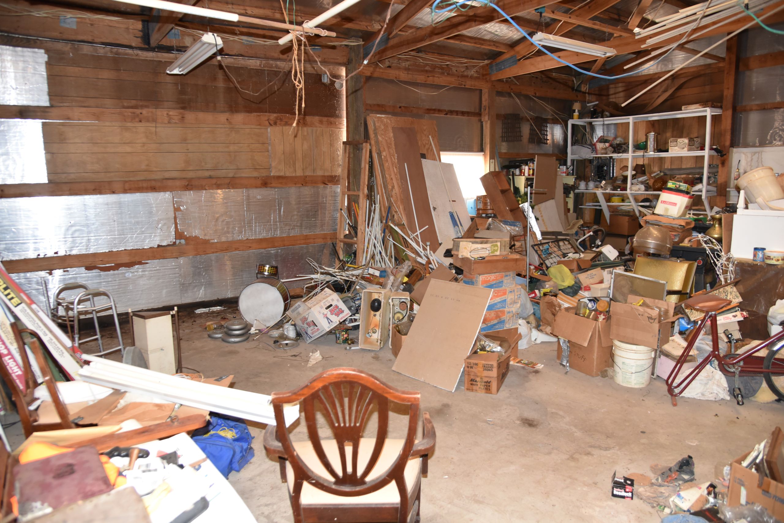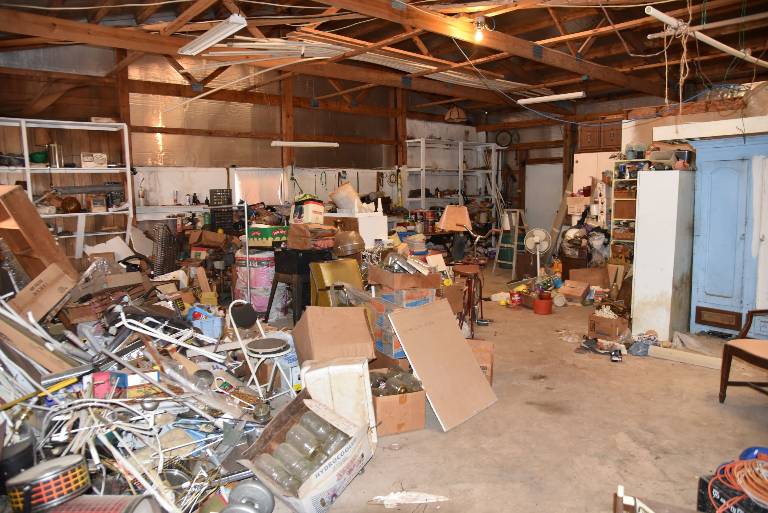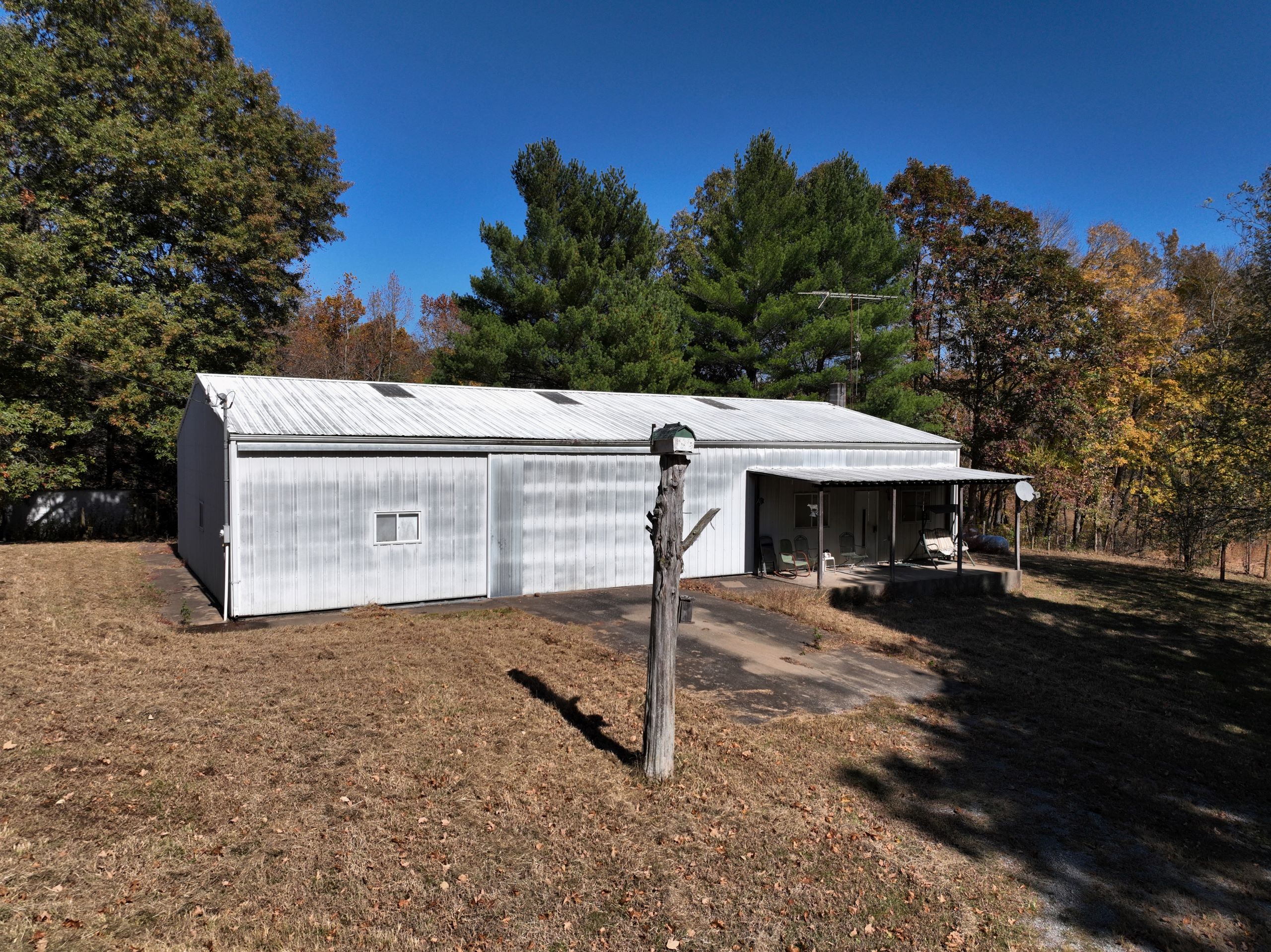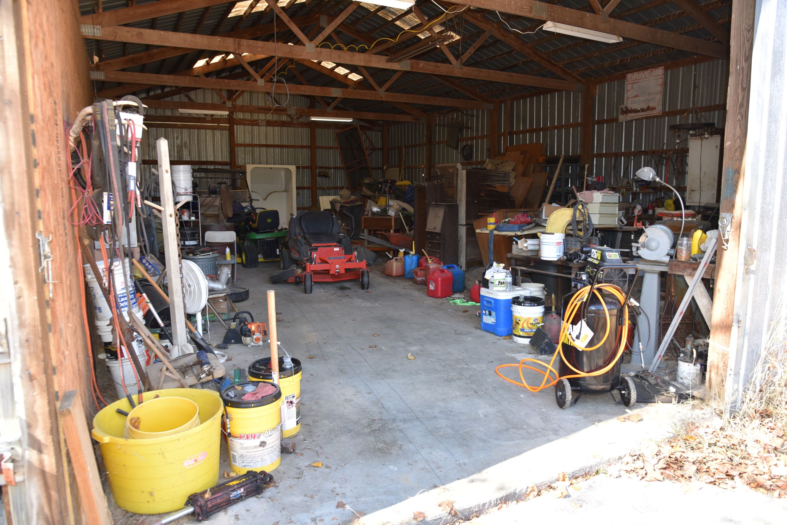 - Large shop with garage doors and lean-to storage