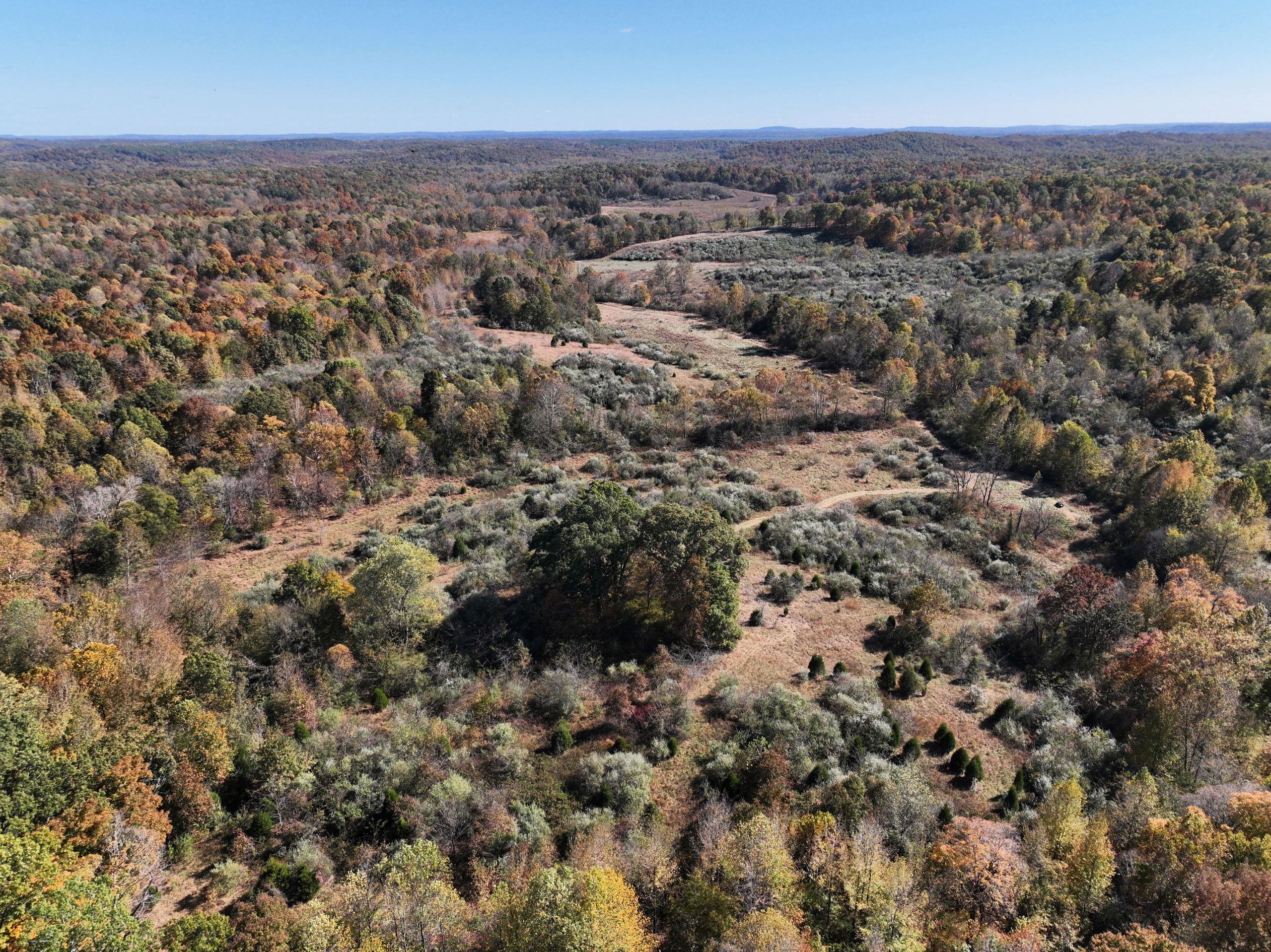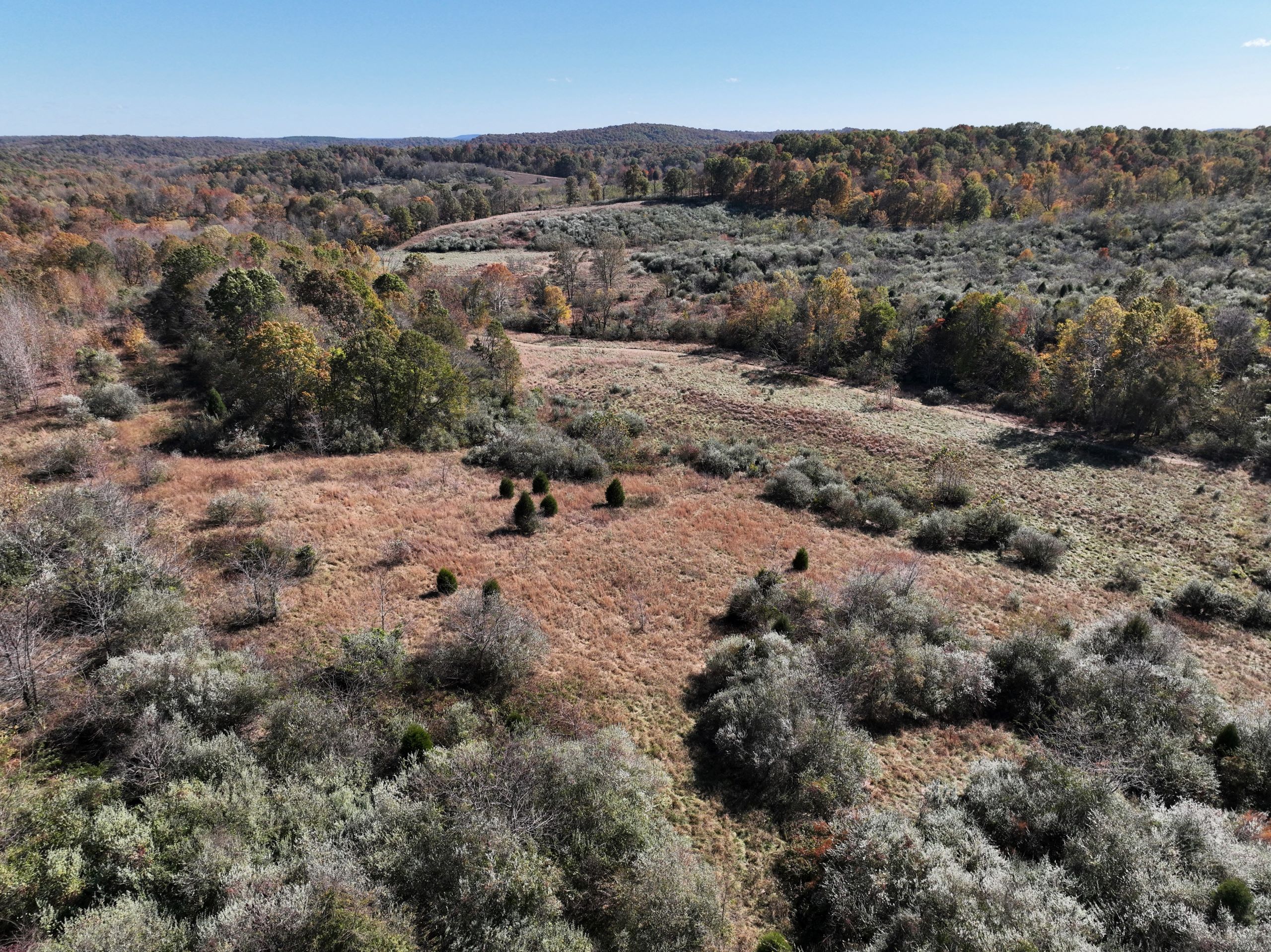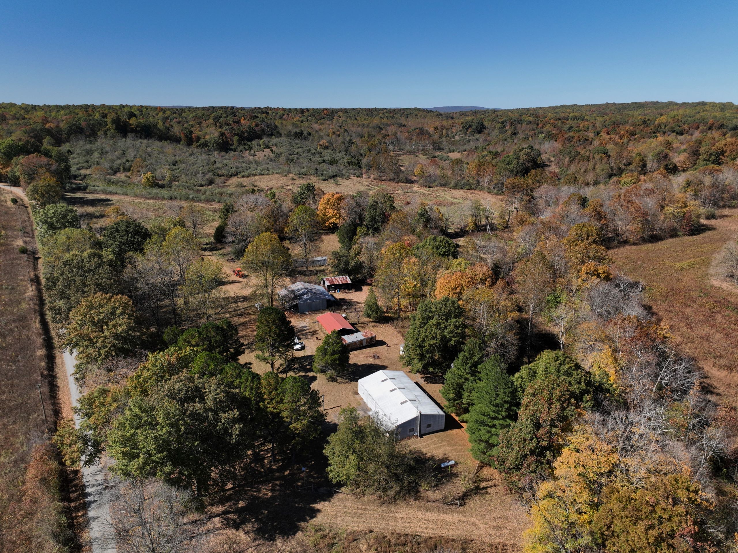 Diverse hunting tract with lodging and outbuildings! This property has the ideal habitat types to grow and hold big bucks with the bonus of lodging and outbuildings! The lodging is a pole barn with two bedrooms, one bathroom, 1,368 square feet of finished living space, an attached garage area and a covered front porch. A spacious yard surrounds the home with a gravel drive, parking area, and plenty of shade trees. A large shop sits beside the home with garage doors at each end and covered lean-to storage on each side. The shop has lots of equipment, tools and machinery staying with the farm, including multiple tractors, implements, a Polaris ranger, mowers and much more. An additional small barn provides storage for equipment. The farm has a rolling topography with a diverse blend of habitat types. Many acres of old cattle pasture now have areas of successional cover, native grasses and Autumn Olive thickets throughout that provide the ideal cover to grow and hold big bucks! Plenty of open areas would make great food plot locations, with some areas being large enough for row crop food plots. Several areas of timbered ridges and draws with softwoods and mast-producing hardwoods throughout. A large rock-bottom creek runs along the eastern side and is a major travel corridor for wildlife in the area. Several mowed paths and trails throughout the farm provide easy travel for farm work and quiet access to favored stand sites. It has 1,400 feet of road frontage along the southern side and multiple entry points. If you’re looking for a diverse hunting tract with lodging and outbuildings, give Land Specialist Justin Mason a call today and schedule your private tour!