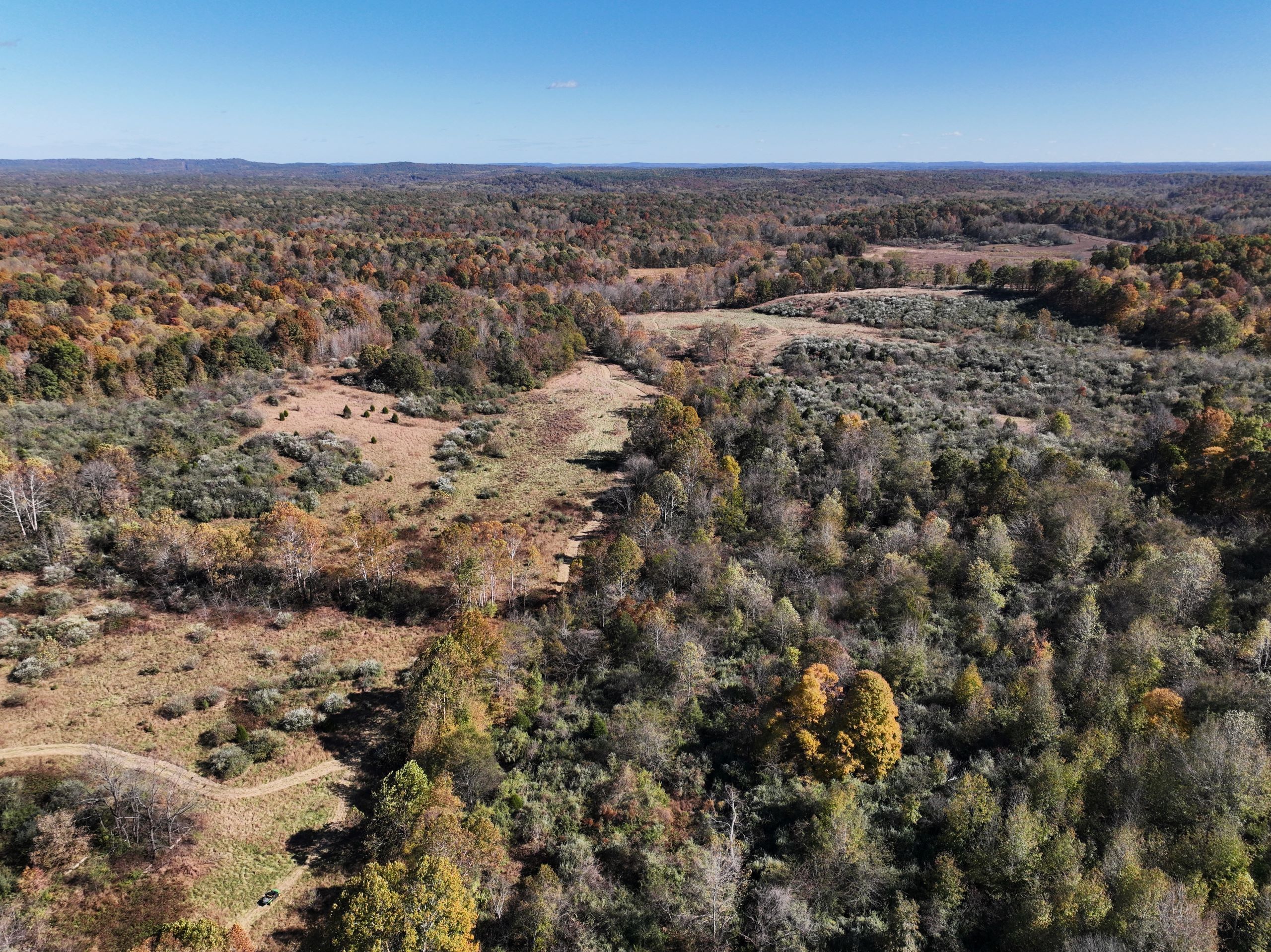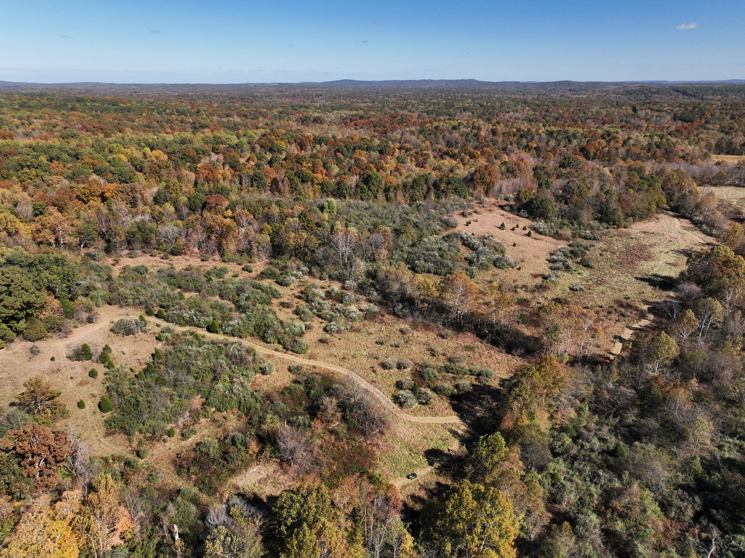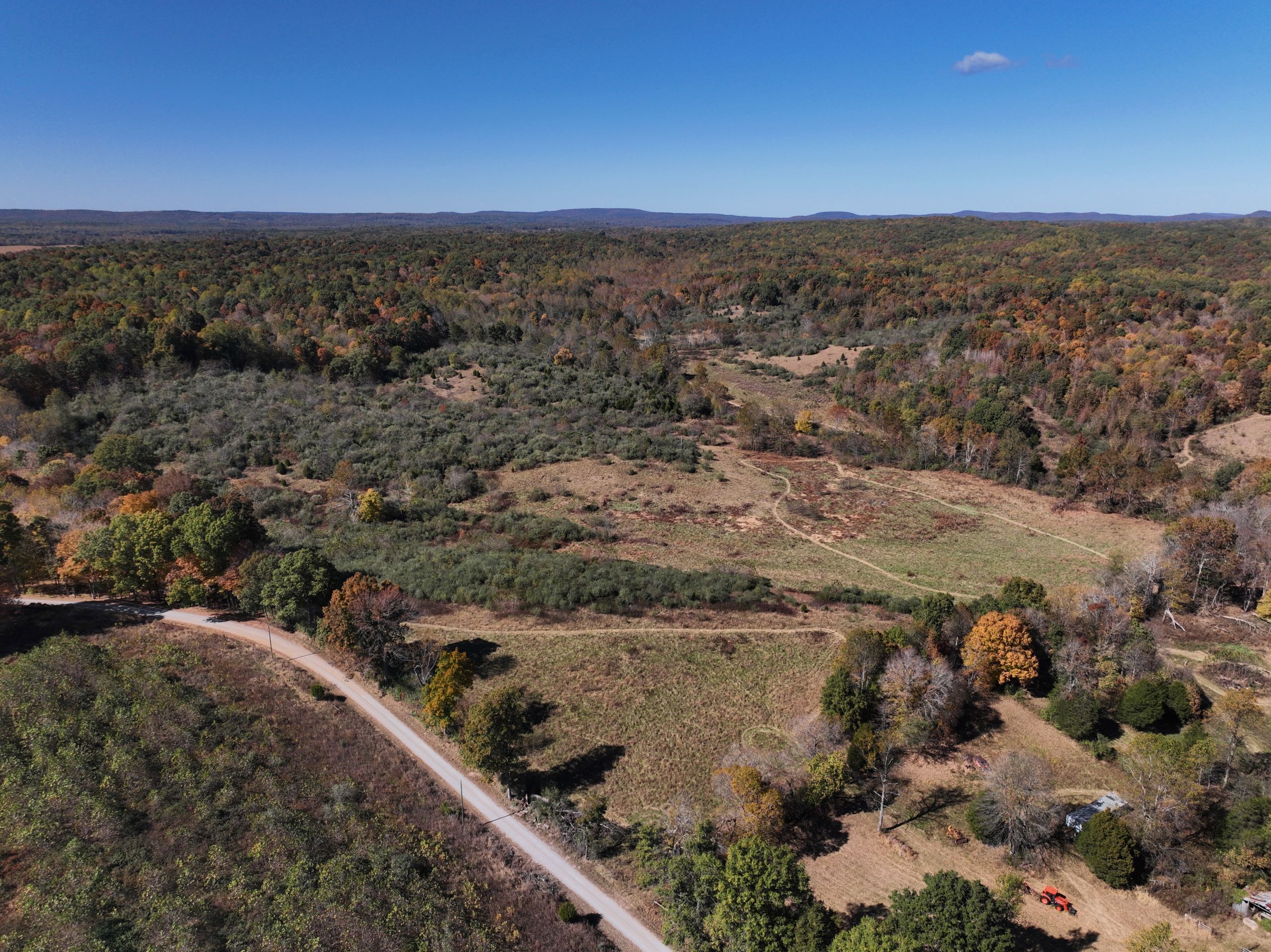 Diverse hunting tract with lodging and outbuildings! This property has the ideal habitat types to grow and hold big bucks with the bonus of lodging and outbuildings! The lodging is a pole barn with two bedrooms, one bathroom, 1,368 square feet of finished living space, an attached garage area and a covered front porch. A spacious yard surrounds the home with a gravel drive, parking area, and plenty of shade trees. A large shop sits beside the home with garage doors at each end and covered lean-to storage on each side. The shop has lots of equipment, tools and machinery staying with the farm, including multiple tractors, implements, a Polaris ranger, mowers and much more. An additional small barn provides storage for equipment. The farm has a rolling topography with a diverse blend of habitat types. Many acres of old cattle pasture now have areas of successional cover, native grasses and Autumn Olive thickets throughout that provide the ideal cover to grow and hold big bucks! Plenty of open areas would make great food plot locations, with some areas being large enough for row crop food plots. Several areas of timbered ridges and draws with softwoods and mast-producing hardwoods throughout. A large rock-bottom creek runs along the eastern side and is a major travel corridor for wildlife in the area. Several mowed paths and trails throughout the farm provide easy travel for farm work and quiet access to favored stand sites. It has 1,400 feet of road frontage along the southern side and multiple entry points. If you’re looking for a diverse hunting tract with lodging and outbuildings, give Land Specialist Justin Mason a call today and schedule your private tour!