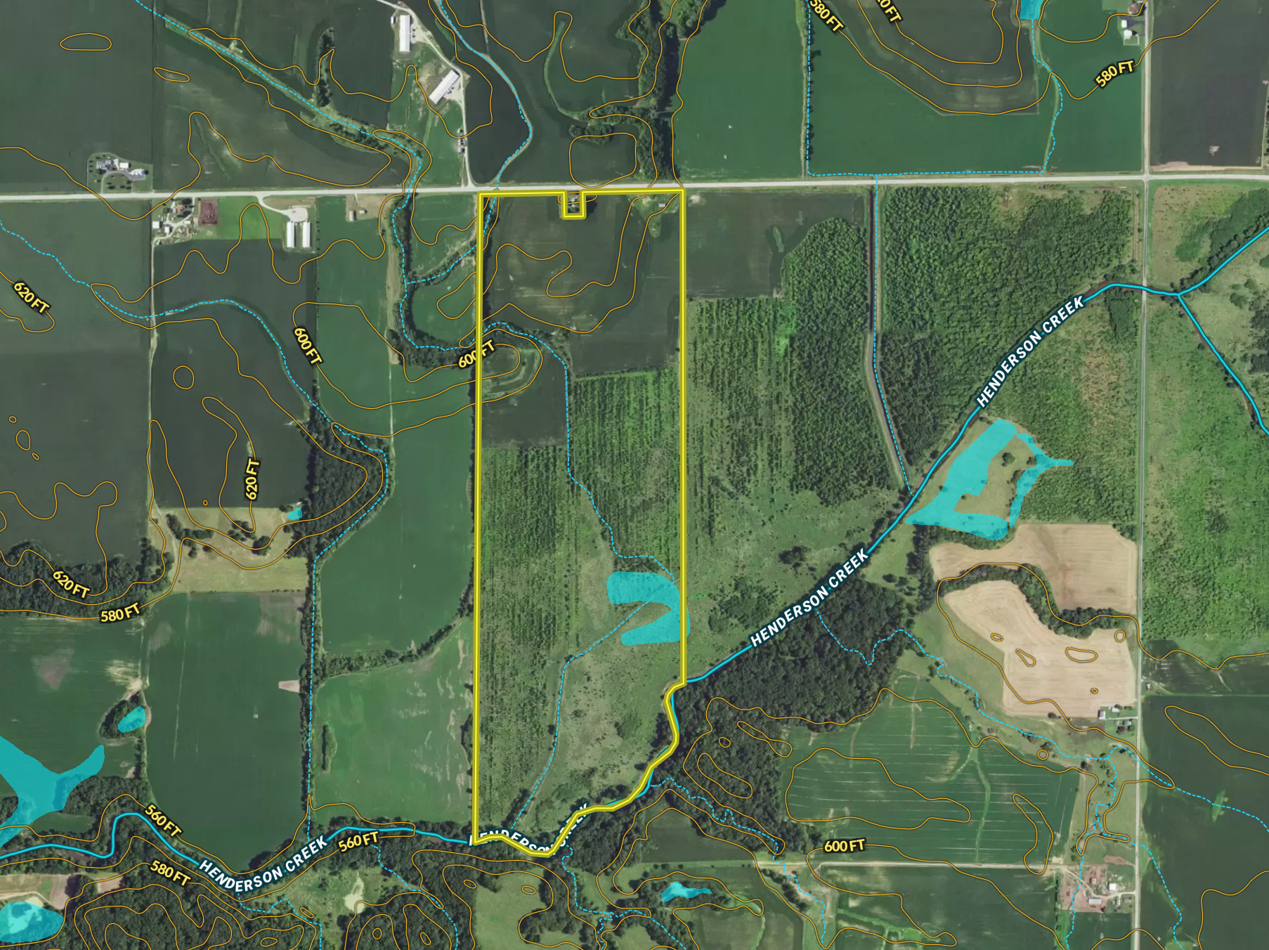 This is an excellent piece of property with a ton of potential! On the front part of the property, there are approximately 52 acres currently in row crop production with an average productivity index of 119.1 with Otter-Lawson and Seaton silt loam soils. The current farm lease runs through 2024 and pays $275/tillable acre. The majority of the remaining acres in the rear of the property are small trees that were once part of a CRP tree planting program. That contract expired in 2018, so there is opportunity to clear several additional acres and put back into tillable production. Those additional acres have an average PI of 139. There could also be organic possibilities as well. The habitat that the trees and grasses offer creates outstanding whitetail deer hunting, as well as wild turkey, quail, pheasant, and small game To make it even better, there are numerous places to establish food plots. There is also an ATV trail to get you access to the back of the farm where you will find Henderson Creek winding across the southern part of the property. The adjacent property is also available totaling over 700 acres. Call the listing agent today for your private showing.