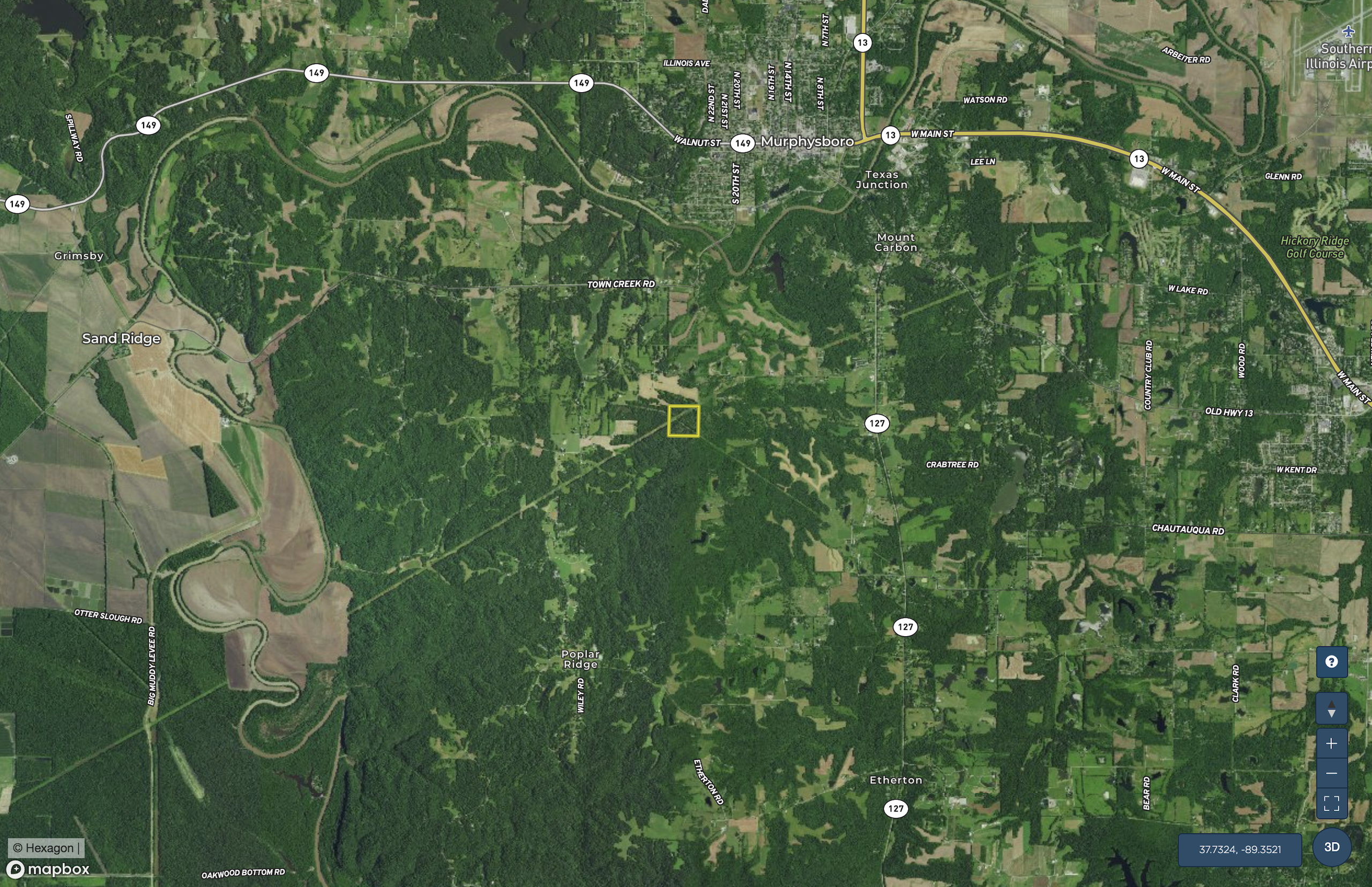 - 5.5 miles south of Murhysboro, and 9 miles west of Carbondale