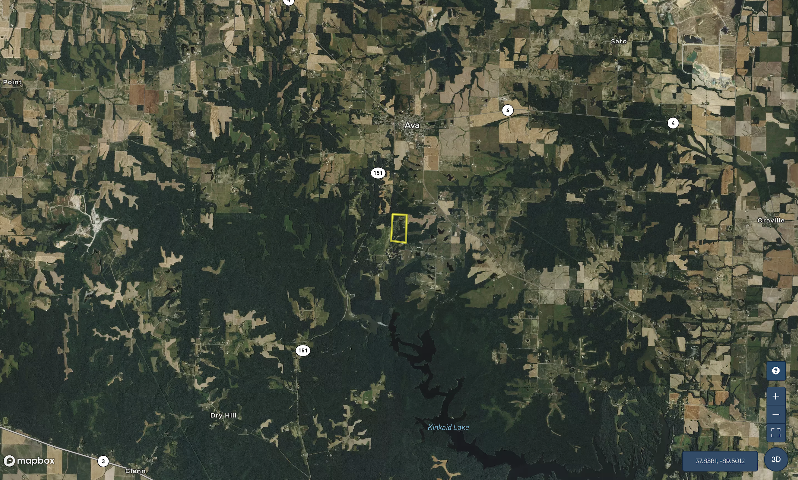 - 1.5 miles south of Ava, 15 miles NW of Carbondale, 1:20 SE of St Louis