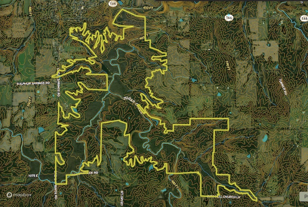 This 1,180+/- acre one-of-a-kind hunting property spans Johnson and Williamson Counties and sits in a strategic location almost perfectly centered between Nashville, Tennessee, St. Louis, Missouri and Louisville, Kentucky. Offering scale, diversity and habitat potential rarely found in Southern Illinois, this tract presents a standout opportunity for serious land managers, investors and sportsmen seeking a premier destination for whitetail, turkey and waterfowl hunting. The property is defined by its extensive creek system, with 4 miles of Sugar Creek and 2 miles of Maple Branch, along with numerous feeder tributaries. These major waterways form one of the strongest natural rut travel corridors in the region, concentrating bucks as they move between bedding, browse and adjoining ag fields. The creek system has carved out a landscape full of funnels, pinch points, interior edges and natural transition zones, creating predictable travel patterns ideal for stand and blind placement. Habitat diversity is exceptional. Large stretches of creek-bottom timber blend with new age growth, mast-producing hardwoods, thickets and dense bedding cover, providing year-round holding power. Numerous water features, including oxbow ponds, wetlands, small ponds and flowing creeks, enhance wildlife attraction and support both deer and waterfowl opportunities. Adjoining tillable acreage on multiple sides adds seasonal food sources and helps anchor wildlife to the property. Access and infrastructure are well developed, with an extensive internal trail system that allows for quiet entry to remote stand locations and efficient travel across the farm. Multiple road frontages and several gravel entry points and landing areas provide excellent access for equipment, hunting vehicles and future improvements. The property features multiple potential building sites and utilities are available, making it ideal for a cabin, lodge or a fully developed hunting headquarters. For the committed deer manager or habitat developer, this farm offers vast potential for expansion - ample room for large-scale food plot systems, managed timber initiatives, bedding enhancement, native warm-season grass establishment and tailored hunting layouts. And with Illinois' two-buck annual limit, hunters have the chance to capitalize on the quality and consistency that these creek corridors produce. This is a rare opportunity to own a high-acreage, habitat-rich, and strategically located property with the size, structure and natural resources needed to create a legacy hunting destination.