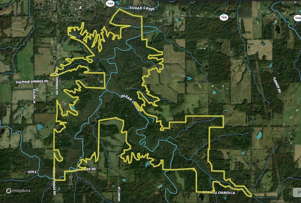 - 4 mi. of Sugar Creek, 2 mi. of Maple Branch and several tributaries flow through the property