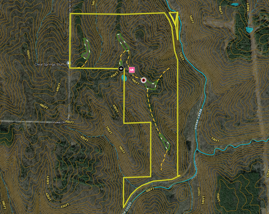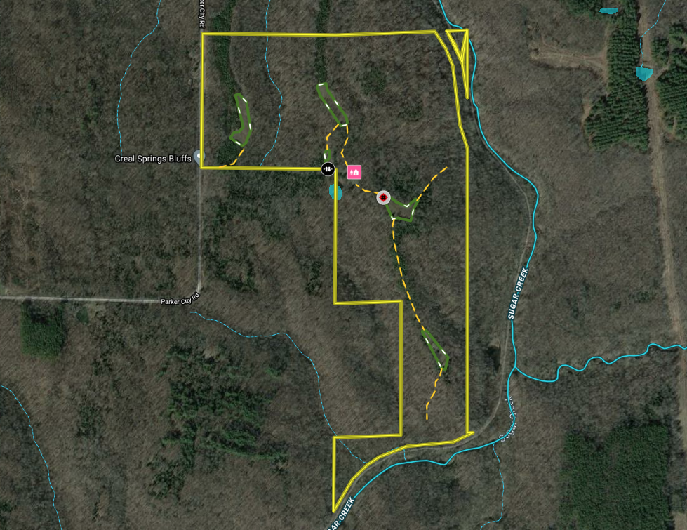 Wild Game, Whitetail, Turkey, Upland Game, Waterfront, Creek, Pond (0-3 acres), Improvements, Metal Buildings, Blinds, Food Plot, Investment, Pasture, Fish, Big Game, Small Game, Dove, Other Game, Bass, Panfish, Roads, Road Frontage, County Road, Road Access, Gravel, Dirt, Fence, Partial Fence, Fence Material, Wire, Tillable / Production Acres, Pine Trees, Hardwood Trees, Softwood Trees, Clover, Housing, Outbuilding w/Living Quarters, Hunting Improvements, Tree Stands, Recreational Improvements, Trail Network, Building Improvements, Barn, Gated Entrance, Area Features, Public Hunting, Public Fishing, Public Access Area, Activities on Property, Hunting, Fishing, Hiking, ATV Riding, Horseback Riding, Camping, Family Activities, Biking, Low Fence