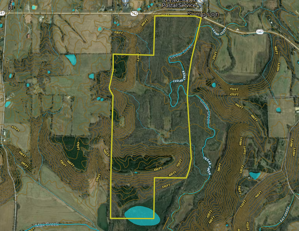 Diverse hunting tract with a proven history of big bucks. This property has everything needed to grow, hold and harvest big bucks year after year! It has an ideal blend of habitat types and topography with the added bonus of waterfowl hunting opportunities. There are 19+/- acres of open ground for food plots, with some currently planted in brassica blends. Multiple elevated blinds and tree stands are already in place. The timber is a blend of softwoods, mast producing hardwoods and areas of pine plantings. Some areas have a dense understory that provides plenty of security and bedding cover. The topography is rolling on the western side and becomes flat as it adjoins the large creek bottom to the east. The creek is a major travel corridor for wildlife in the area with numerous ambush sites along its path. Entry is along the western side with several gated entry points. An established trail system runs throughout the farm and is wide enough for a tractor and implements. Approximately 9 acres of open water sits at the southern end of the farm and provides plenty of opportunities for waterfowl hunting. The farm adjoins tillable acreage on the western side creating plenty of ambush opportunities as deer stage in the property’s food plots before moving to tillable acreage in the evening. The property also adjoins a large area of no hunting! If you’re looking for a diverse hunting tract with a proven history of big bucks, give us a call today and schedule your private tour!