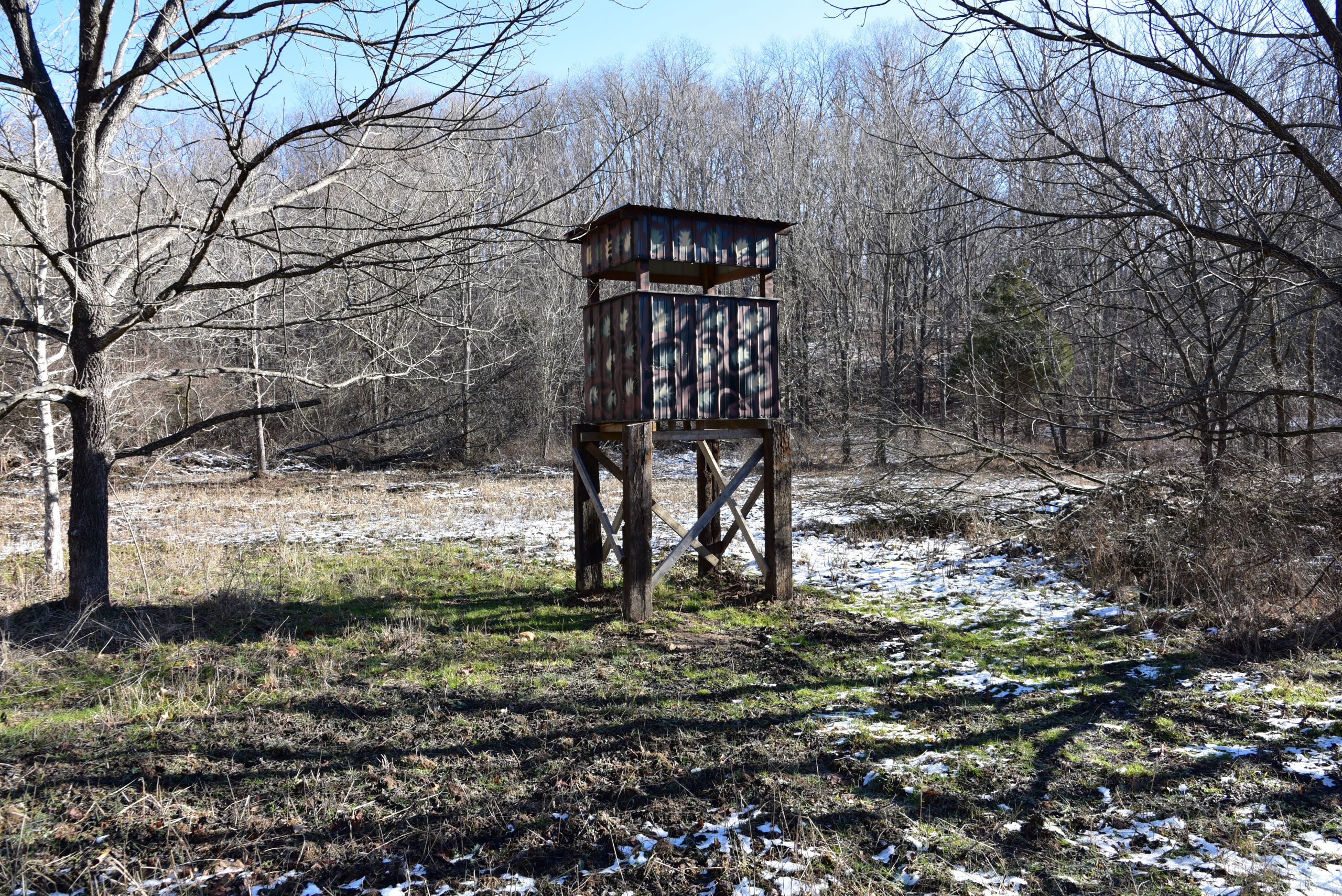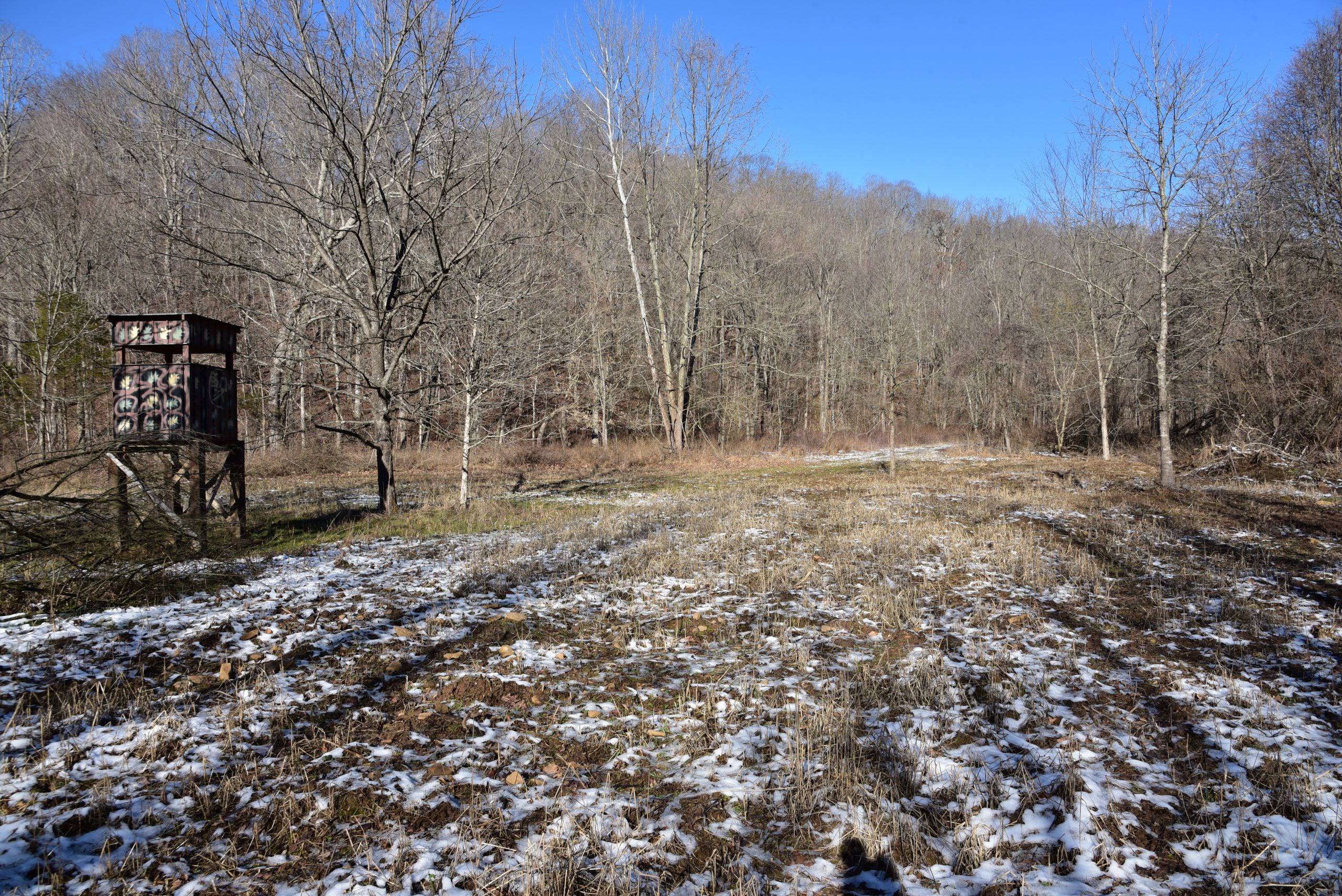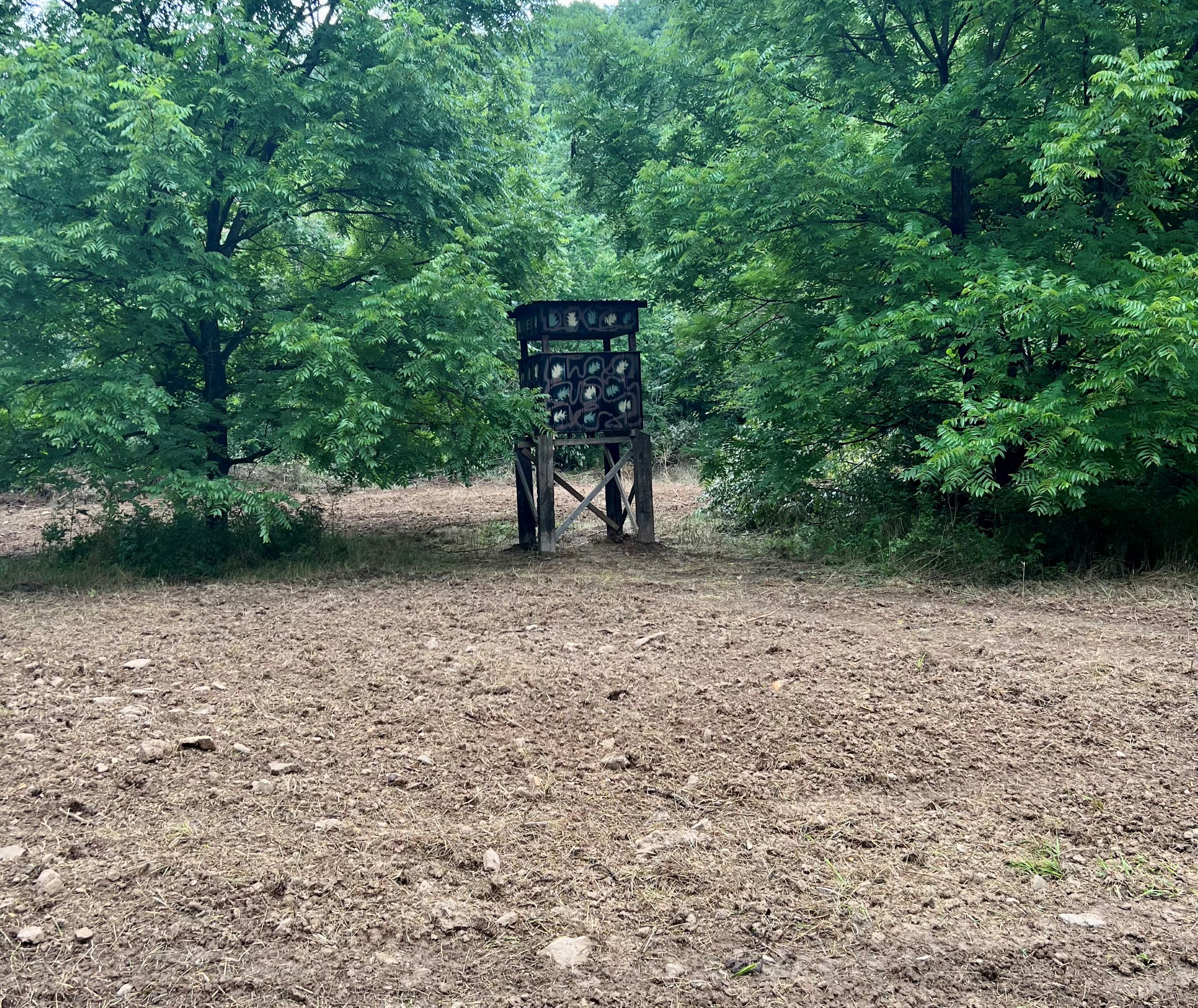 - Established food plot with box blind