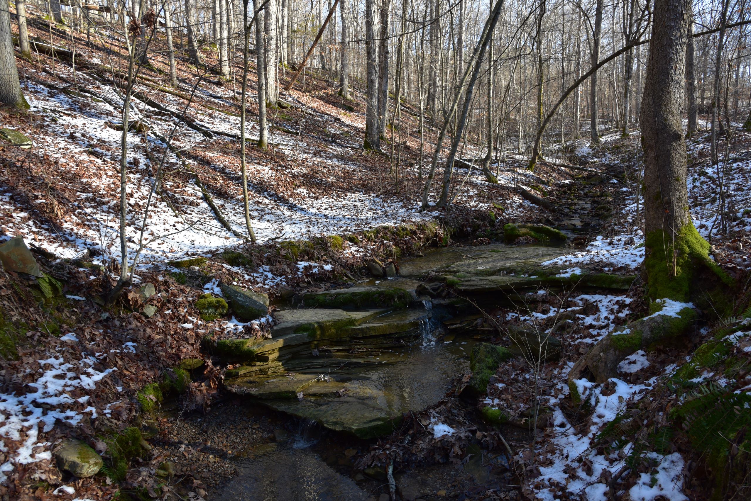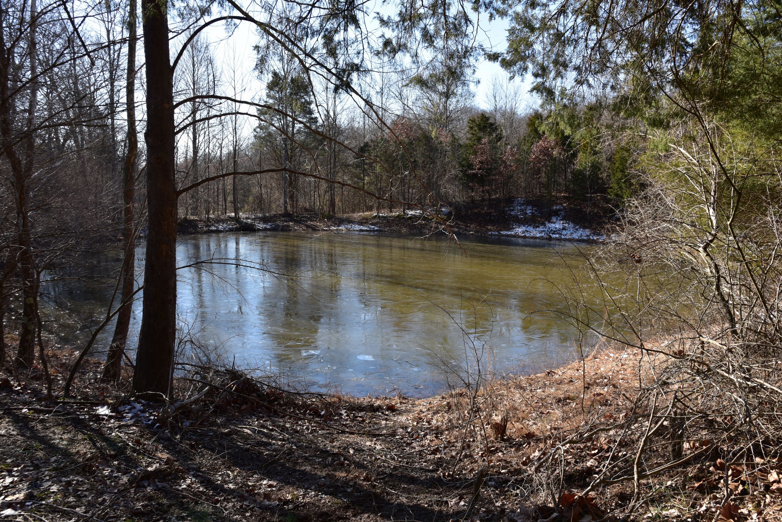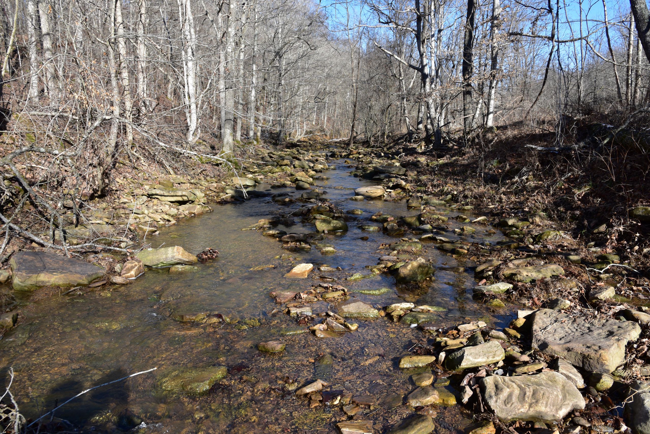 - Rock bottom creek and small pond provide water for wildlife