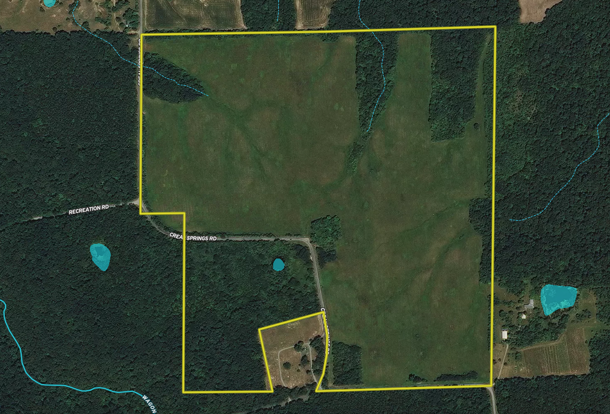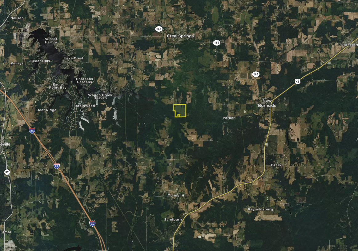 - Road frontage along Creal Springs Road (paved) and New Salem Road (gravel)
