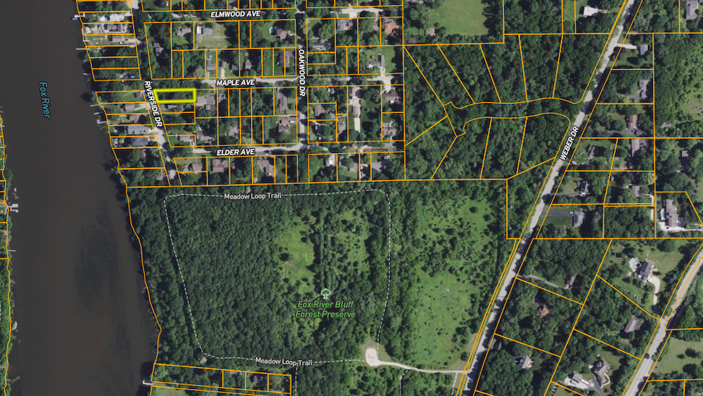 Beautifully shaped .20+/- acre lot along Riverside Drive near St. Charles in unincorporated Kane County, ready for your custom build plans and priced to sell! This lot sits on the southeast corner of Riverside Drive and Maple Avenue in Fox River Estates, offering many options for potential residential development. Located less than five miles from the charming shops, dining, and entertainment of downtown St. Charles, this parcel also sits within walking distance of the scenic landscapes surrounding Fox River Bluff Forest Preserve and the Fox River. Outdoor recreation activities abound from miles of hiking and biking trails, to kayaking, fishing and year-round enjoyment of the river’s natural beauty. This manageably sized lot holds big potential – certainly a must see! Contact Land Specialist, Mark Leonard for more information or to schedule a visit.