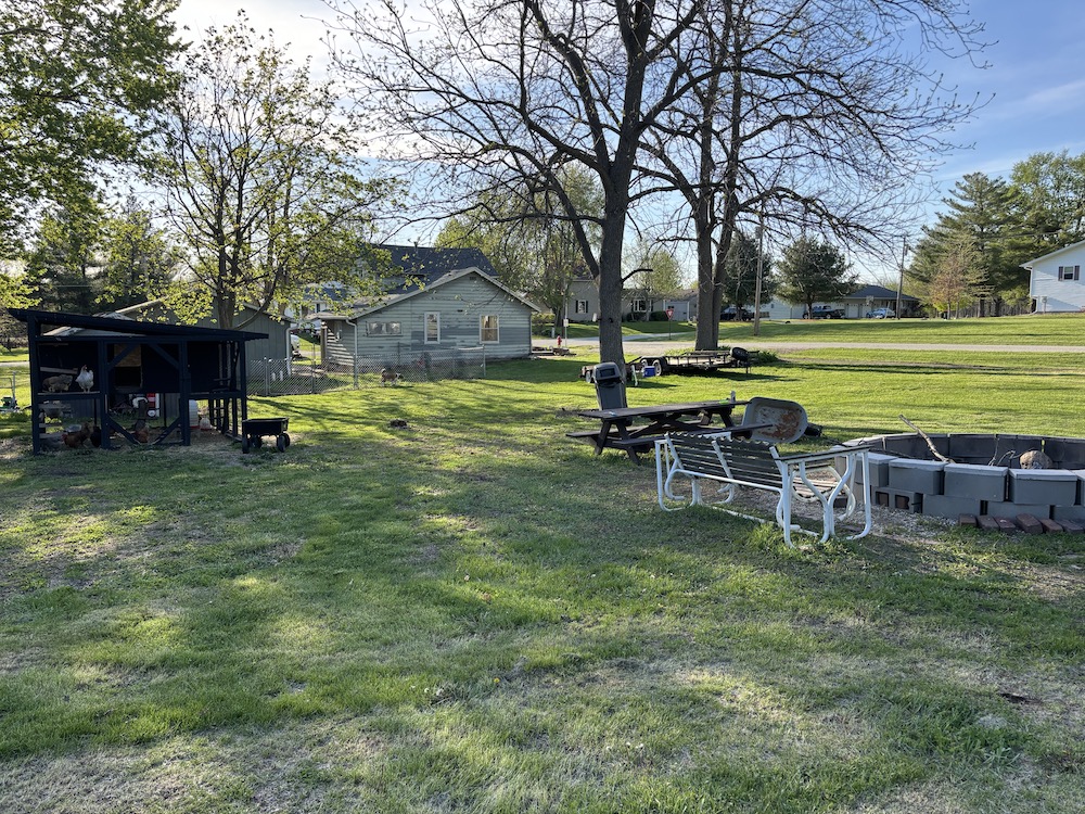 - Very large yard with wood-burning fire pit