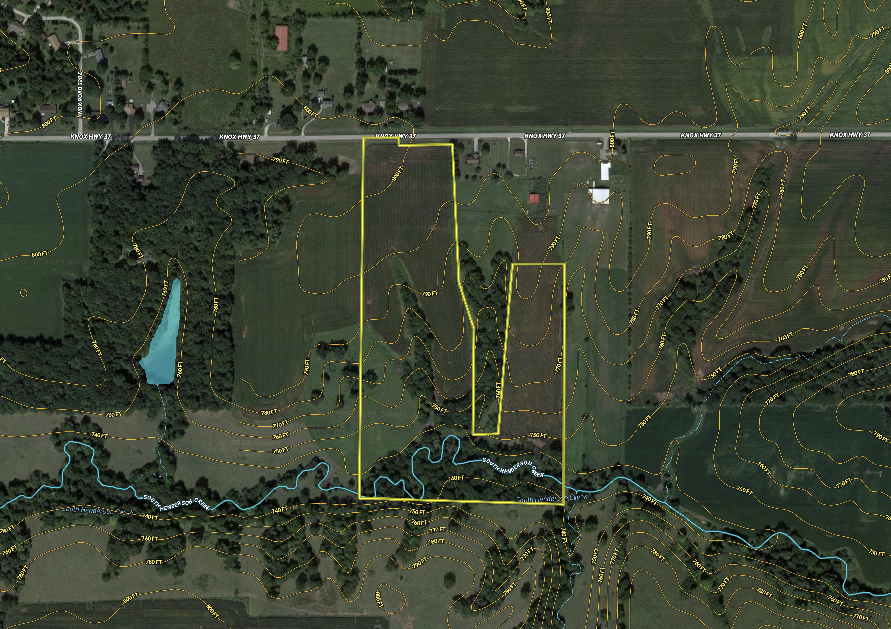 - South Henderson Creek flows through the property
