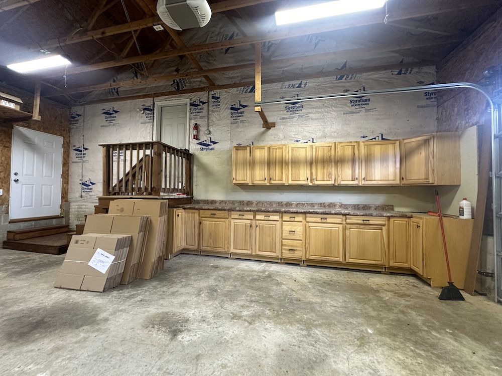 - 2 stall attached garage with additional cabinets for storage