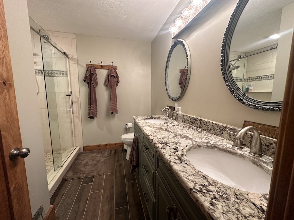 - Knotty-alder cabinetry with gorgeous custom granite countertops