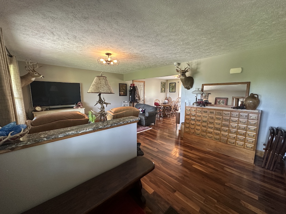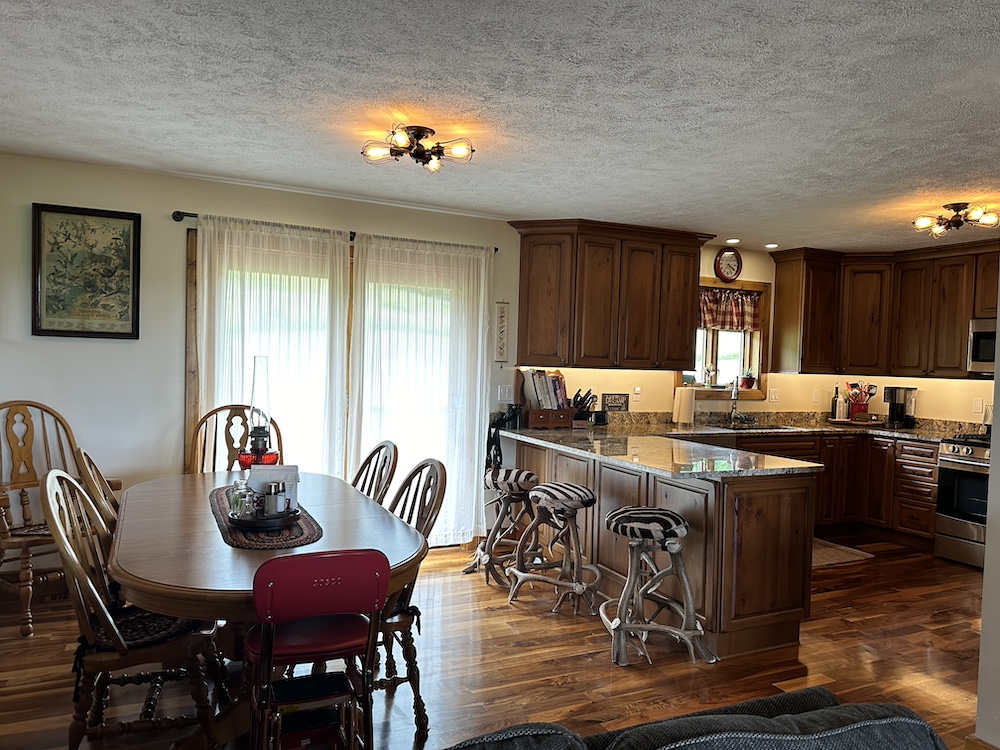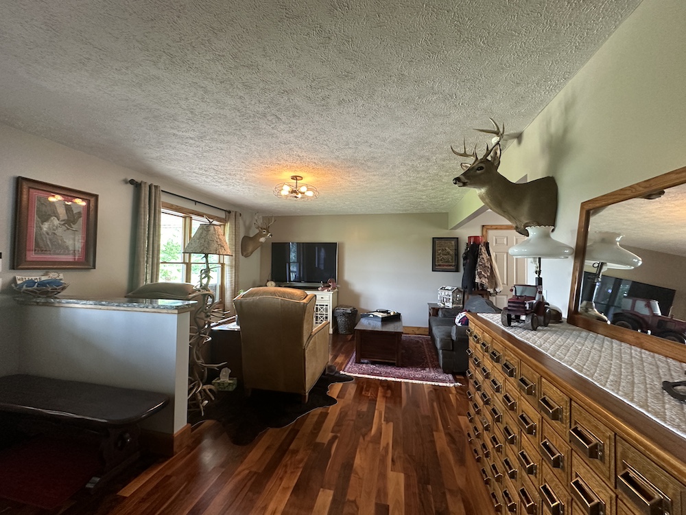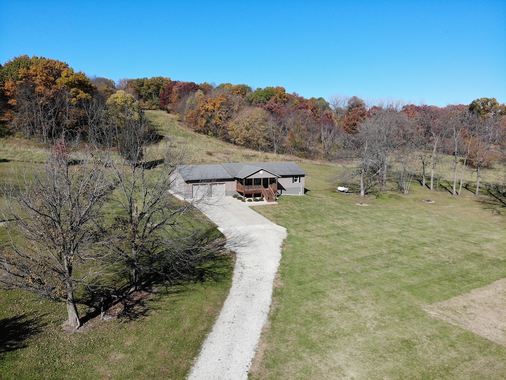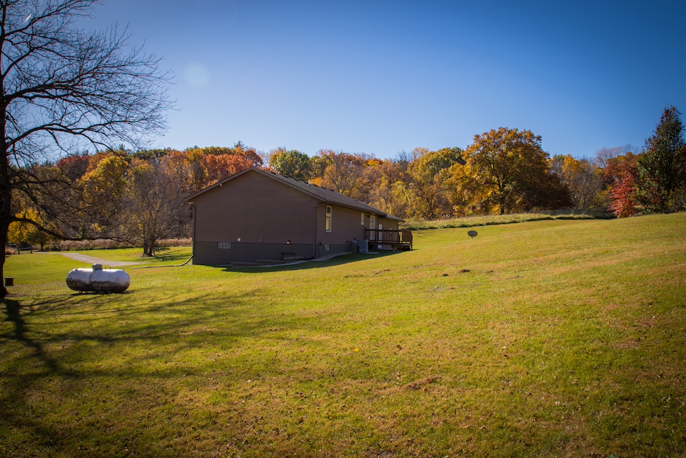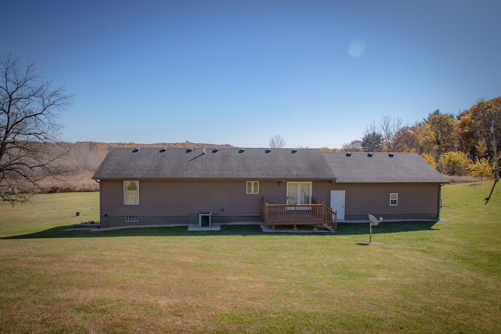 If you are tired of city life, this is your opportunity to spread your wings and relocate! This modern, well-maintained country home sits on 5 beautiful acres. Boasting a large yard with several mature trees, this property is truly a dream. Nestled in the hillside and just off of a quiet country road, you’d be hard-pressed to find a more peaceful and serene setting. The home faces east, and the cozy front porch would be an awesome place to sip your morning coffee while watching the sunrise and enjoying the area’s abundant wildlife. Pheasants crowing, turkeys gobbling and deer running, you are sure to experience it all! Gorgeous hillside views from the back of the house will equally impress! The interior of the home is stunning and has been completely remodeled recently. The main living area is to the front of the house and a big picture window provides an amazing view looking out. Warm tones and fantastic lighting accent the black walnut floor of the dining area and kitchen. Custom granite countertops surrounded by knotty-alder cabinetry and stainless steel appliances give an elegant touch to this perfect country kitchen. The upstairs has a main bathroom, a spacious master bedroom w/bath, and two additional bedrooms. The entire upstairs has custom knotty pine trim with hand-stressed edging. A hand-built custom rail leads you to the lower level of the home. This second living area would be perfect for the family to spread out or an awesome place to entertain guests. There is another full bath, 3 additional non-conforming bedrooms, and an open room awaiting your design and use. A clean mechanical room provides easy access for maintenance and there is an egress door for the lower level on the north end of the home. Lastly, a large two-stall attached garage with concrete approach will keep your vehicle out of the weather or provide a great workshop. This home is well-designed and seems much larger than the square footage indicates. This is a must-see for anyone looking outside of the city limits!! Call Whitetail Properties listing agents Brent Reneau or Clark Cummings today for additional information or to schedule your private showing!
