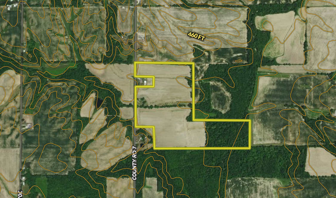 This property will need to be surveyed to get the exact acres after separating it from the rest of the seller's property. There will roughly be 56 acres of tillable with an average PI of 117. The rest will be made up of a small woodlot in the southeast corner, a few fencerows, and an old barn lot. The old barn lot does have a water well and the ability to have electricity if turned back on.