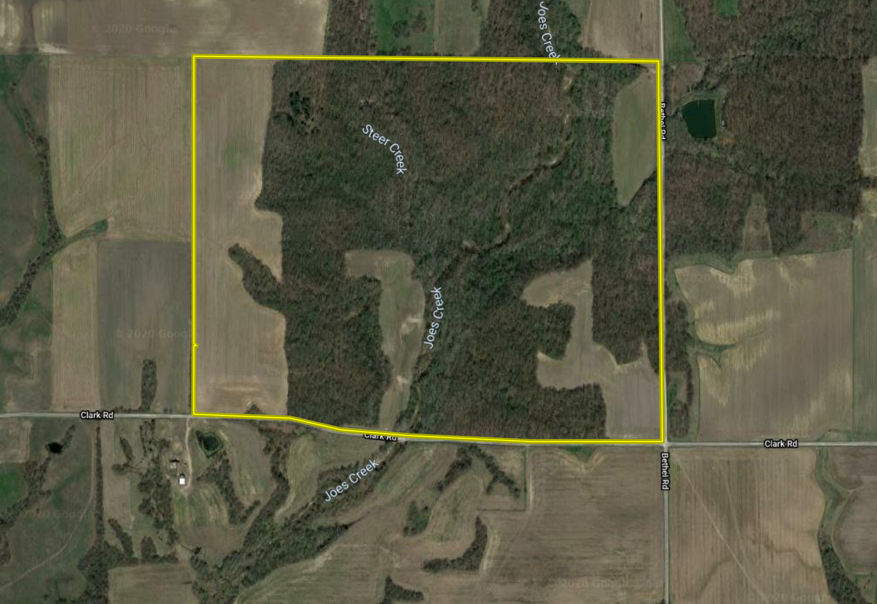 Just a quick look at the aerial of this farm and you will be drawn to its many great attributes. This property is in an excellent location and has a mixture of timber and tillable to provide amazing opportunities for whitetail hunting. The creeks are travel corridors for big bucks, especially during the rut. Road access on two sides of this property allows for multiple hunters and hunting multiple winds. A great stand of upland hardwoods provides ample early season food. The timber is a mixed age class ranging from marketable to sapling. Green browse is abundant for late-season food. This property has not been hunted or managed for hunting in decades. With its geographic location, diverse topography, and intermixed tillable acres the options to turn this into a trophy whitetail property are endless. Multiple food plot locations can easily be established in various locations throughout the property. Don’t miss the opportunity to get a private tour of this one-of-a-kind piece of land.