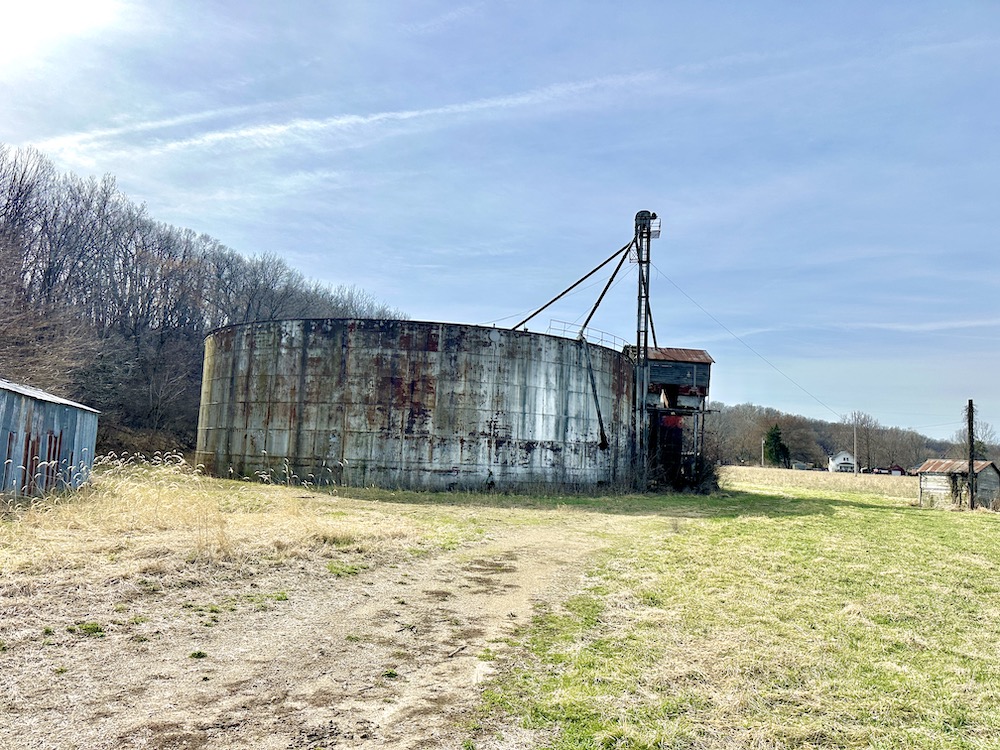 - Old tank has been repurposed for grain storage that could be converted to other dry storage