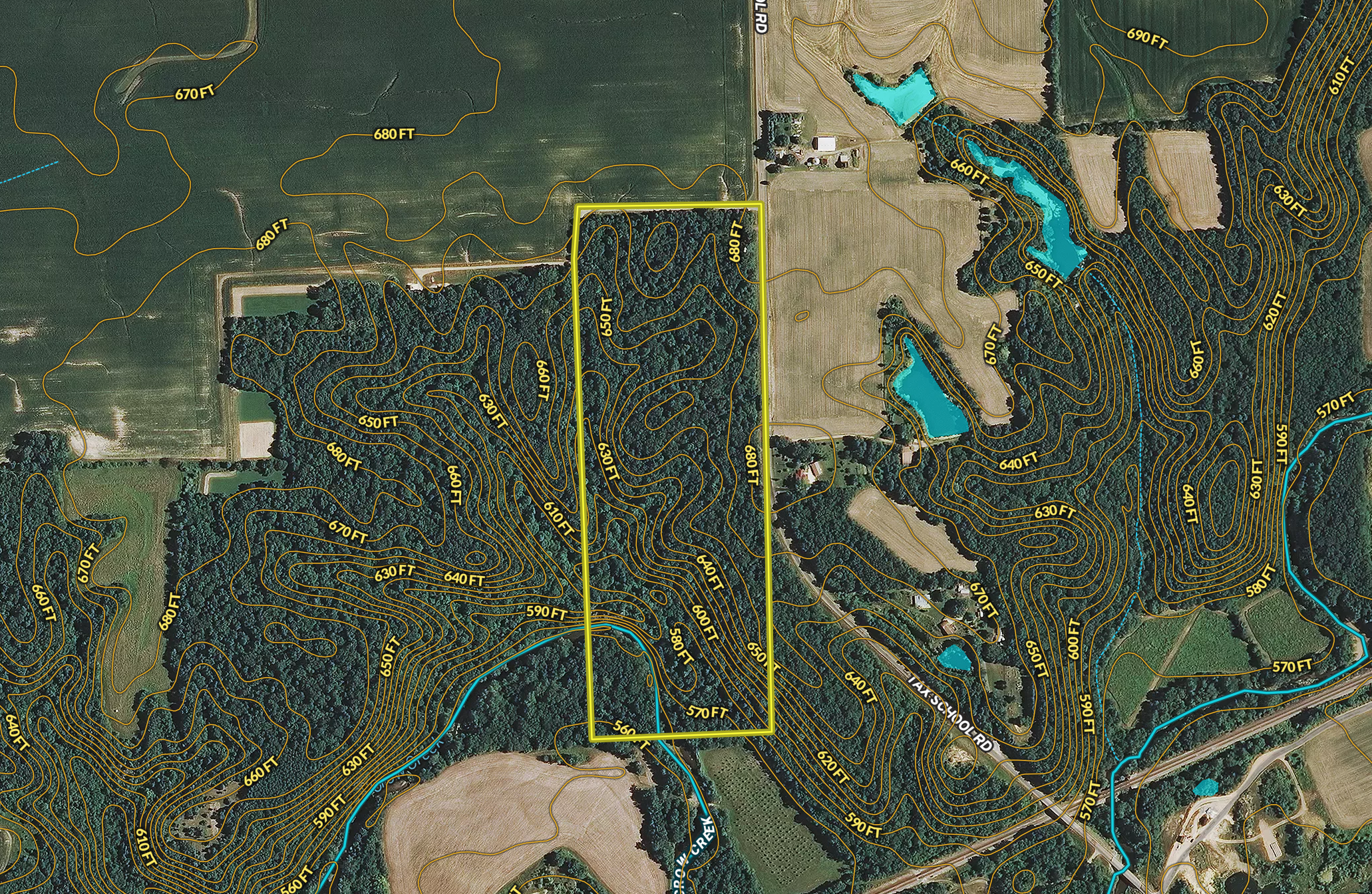 If you are in the market for a total recreation and hunting farm, this is it. This all timber property has about everything to offer to get you outdoors. The deer hunting on this property should be phenomenal. The property is covered in beaten-down deer trails and offers plenty of cover for deer to bed. The current landowner has taken several nice deer in the past. What makes this property also unique is that you have multiple access points to enter the property to hunt any wind direction. More than half of the east side of the farm is frontage to Tax School Road, and the entire north end of the farm has a well maintained private gravel driveway that is part of the property. They have also spotted large groups of turkeys as well. The northeast corner of the farm has been cleared out to accommodate a camper, but could easily be the perfect spot for your dream home, cabin, or shop. The property also offers some older trails and wooden bridges that get you access to a large part of the property with an ATV or side by side. The hardwood tree make-up is of red and black oak, hickory, and walnut, with some maple, cherry, sycamore and locust, and could present a harvest opportunity for income to the new buyer. Another asset to the farm is Crow Creek. This year-round water source cuts through the southwest part of the property for approximately 700 feet and provides a constant water source for wildlife. The current owners have even caught some good-sized fish out of some of the deeper parts of water. It also provides a fun spot to find rocks and cool off in the summer months. Please give me a call if you’re looking for that perfect sized hunting property or a place to build on.