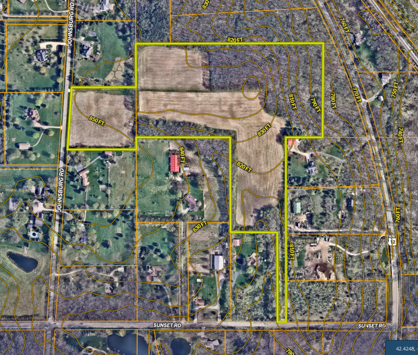 Looking for an incredible build site while earning income on tillable land? Here’s a rare chance at owning a gently rolling mix of hardwood timber and productive farmland in the Village of Spring Grove! Zoned E-1, 1-acre minimum estate lots, this property brings ultimate seclusion and privacy, surrounded by wooded acreage. Approximately half of the land is tillable and planted in row crops which rotate between corn and beans. The tillable soils consist mostly of McHenry silt loam and Kidder loam with an AVG PI of 109.62. The remaining acreage is wooded and consists of mature hardwoods including oaks, shagbark hickory, black cherry and black walnut trees amongst others. The property is frequented by various species of wildlife including songbirds, whitetail deer, turkeys and waterfowl flying overhead. With potential development in mind, two points of ingress and egress have already been established along paved roads. The first entrance is located off Johnsburg Road, and the other is along Sunset Road, which is already graded and gated! Utilities are already located nearby. Being located so close to the Fox Chain of Lakes, recreational opportunities are plentiful. Grab breakfast at one of the lakeside restaurants, then spend the day boating, kayaking or fishing. Pictures just can’t do this property justice! Call Land Specialist Mark Leonard today to schedule your private tour!
