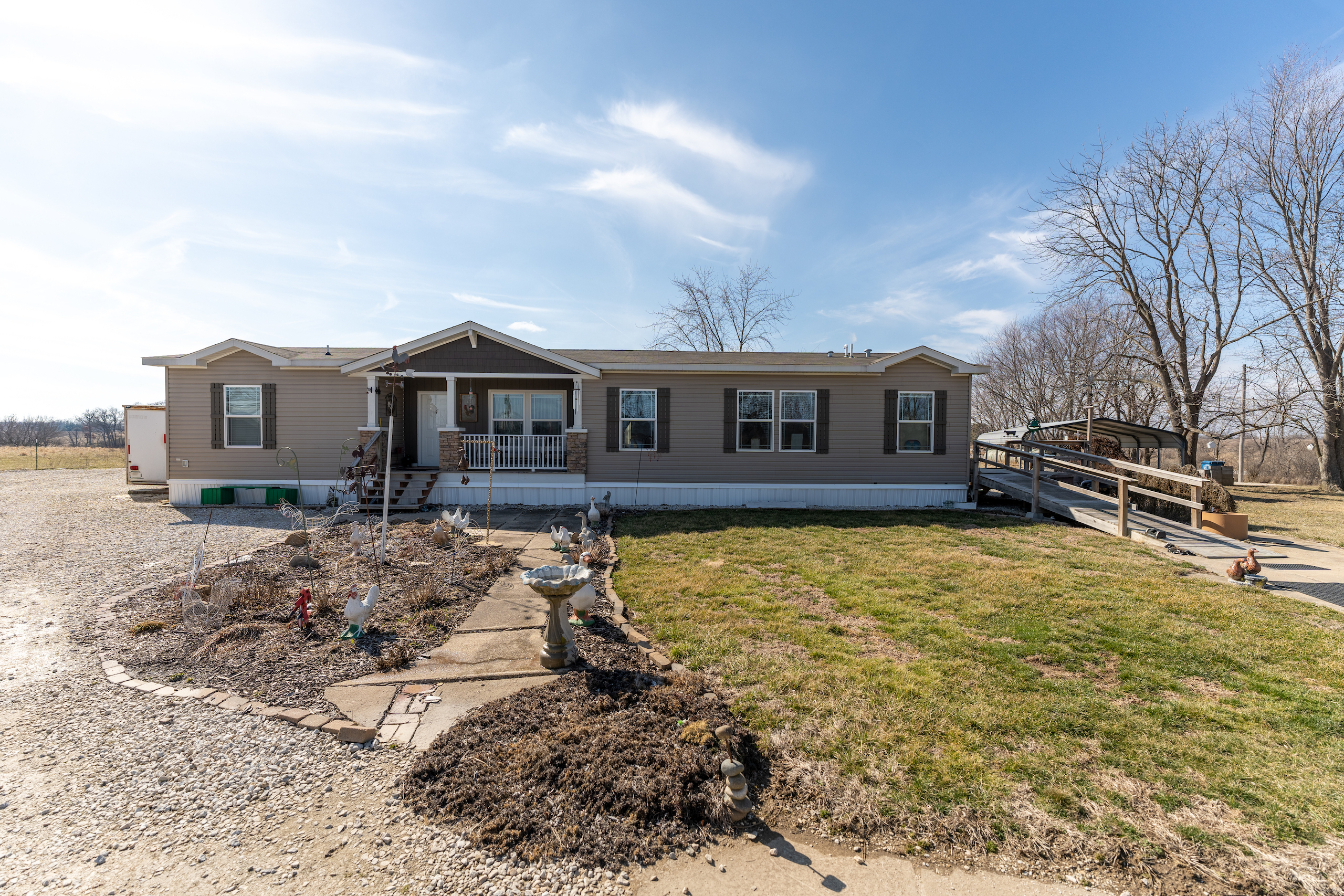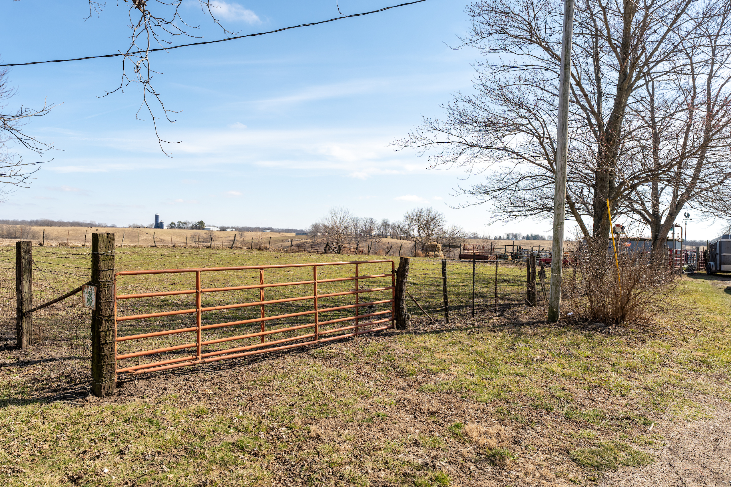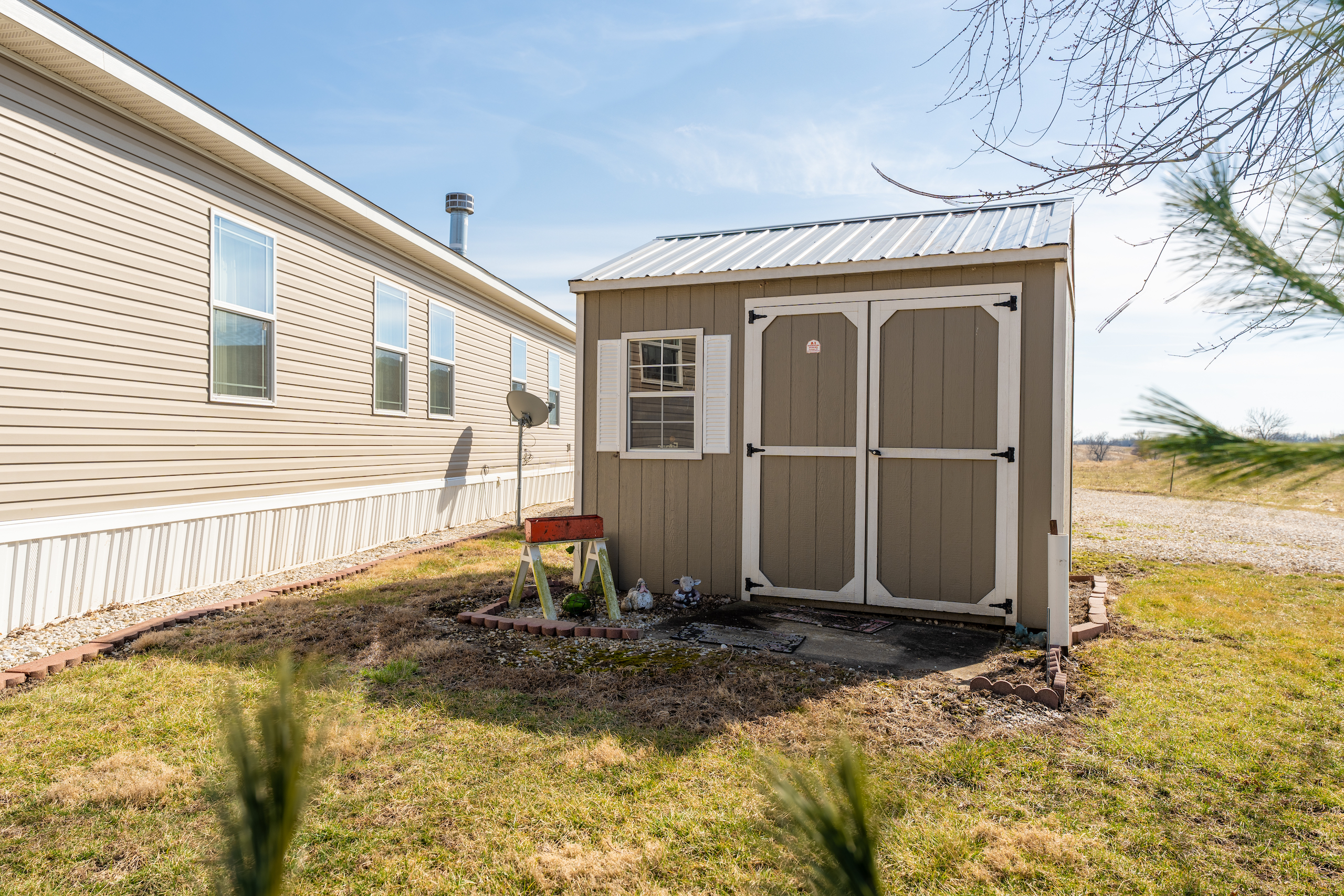 Rare opportunity for country living only minutes from town. The mobile home is extremely nice, with numerous upgrades. Nine-foot ceilings, solid wood cabinets, additional HVAC ducts and a fireplace are just a few items you rarely see in a mobile home. Three bedrooms and two full baths make this the perfect spot to live out of town while maintaining quick and easy access to amenities. The primary bedroom has his and hers walk-in closets and an impressive primary bath. The other two bedrooms also contain walk-in closets and easy access to the additional bathroom. The property will be surveyed and will contain approximately 2 acres. The area to the east of the house is already set up for cattle. This property provides the perfect spot for a few cows, sheep, goats, chickens or whatever else you may enjoy. The property is overflowing with storage options. Two Amish-built storage buildings, a garage and a shipping container with power are ready to house all your hobbies inside and out of the weather. Properties like this, with the proximity to town, are hard to find. Call Land Specialist Joe Cebuhar today for a private tour.