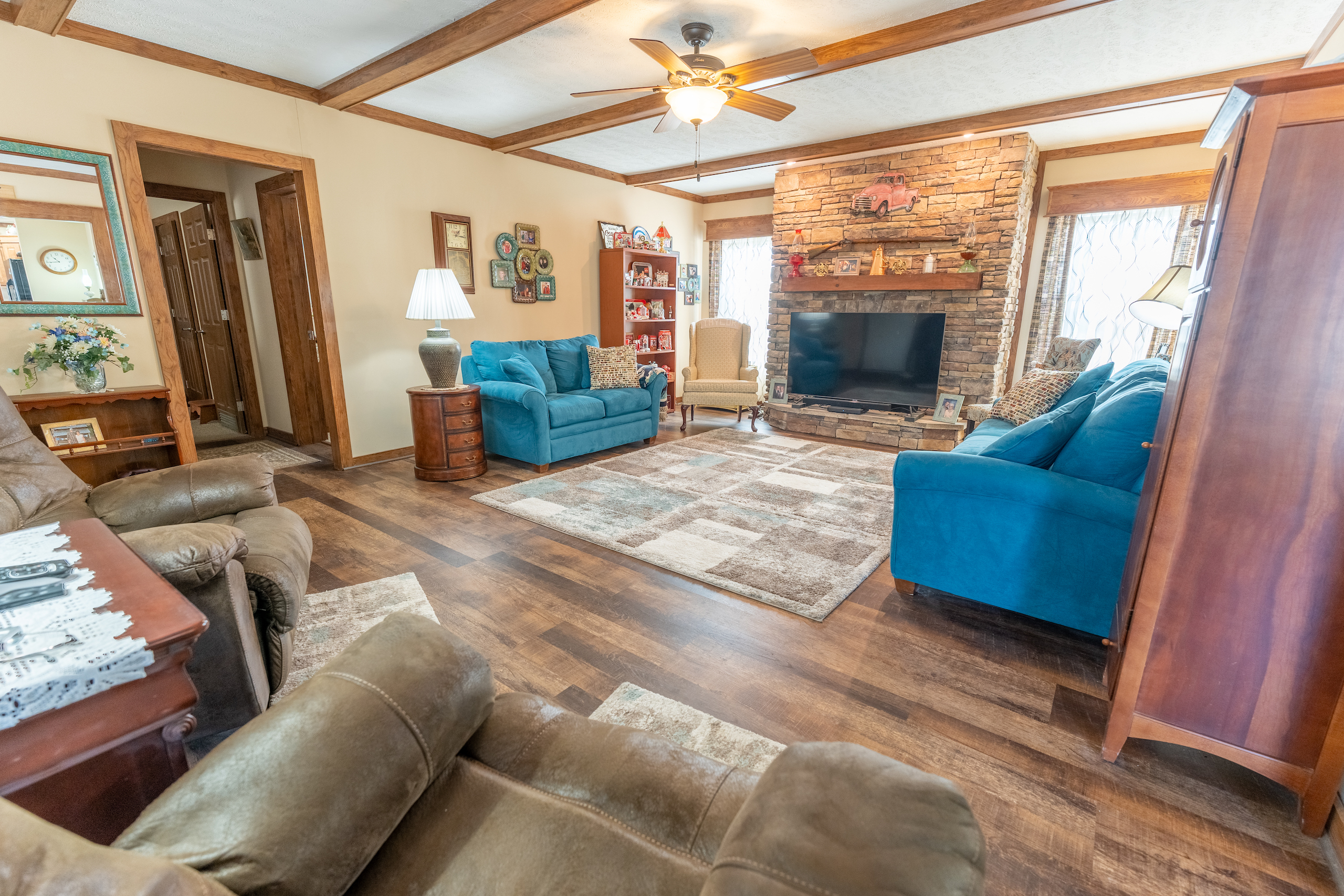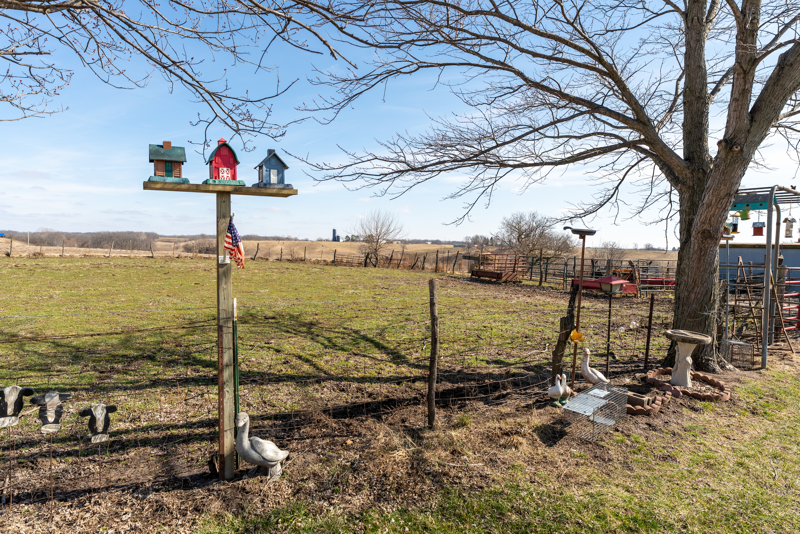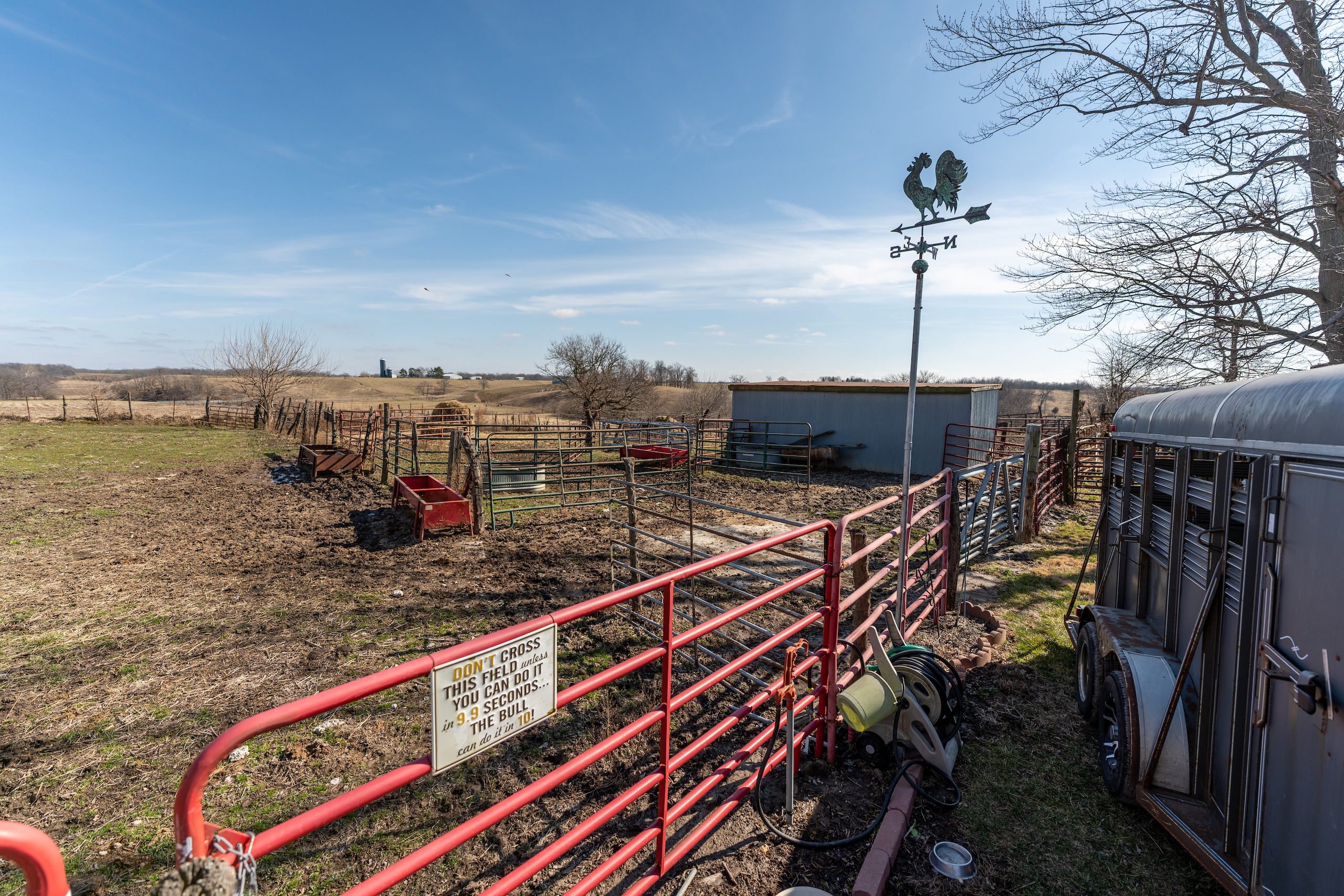 Rare opportunity for country living only minutes from town. The mobile home is extremely nice, with numerous upgrades. Nine-foot ceilings, solid wood cabinets, additional HVAC ducts and a fireplace are just a few items you rarely see in a mobile home. Three bedrooms and two full baths make this the perfect spot to live out of town while maintaining quick and easy access to amenities. The primary bedroom has his and hers walk-in closets and an impressive primary bath. The other two bedrooms also contain walk-in closets and easy access to the additional bathroom. The property will be surveyed and will contain approximately 2 acres. The area to the east of the house is already set up for cattle. This property provides the perfect spot for a few cows, sheep, goats, chickens or whatever else you may enjoy. The property is overflowing with storage options. Two Amish-built storage buildings, a garage and a shipping container with power are ready to house all your hobbies inside and out of the weather. Properties like this, with the proximity to town, are hard to find. Call Land Specialist Joe Cebuhar today for a private tour.