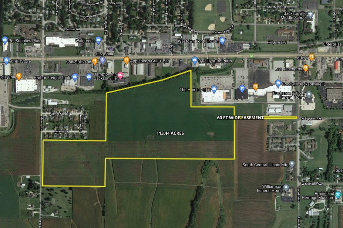 With low-interest rates, rising grain prices, and strong market demand for highly productive tillable ground, the Freeman Farm offered at auction is a generational opportunity. This prime tract is 113.44+/- taxable acres with a PI of 138.4. FSA records indicate 109.34 acres of tillable ground, making this an outstanding income producing piece. The farm has been well maintained, includes tile improvements, and offers excellent access from both the West and East side of the property. The West access is road frontage on Massey Lane, and from the East, is a convenient easement coming in from Lincoln Avenue. This farm is only minutes from Morton Avenue and Highway 67 in Jacksonville, IL and is a short drive to a large grain elevator. Soils consist of Osco, Tama, and Muscatune Silt Loam.