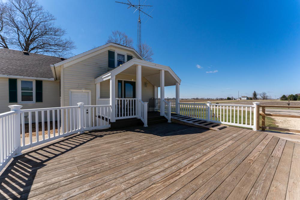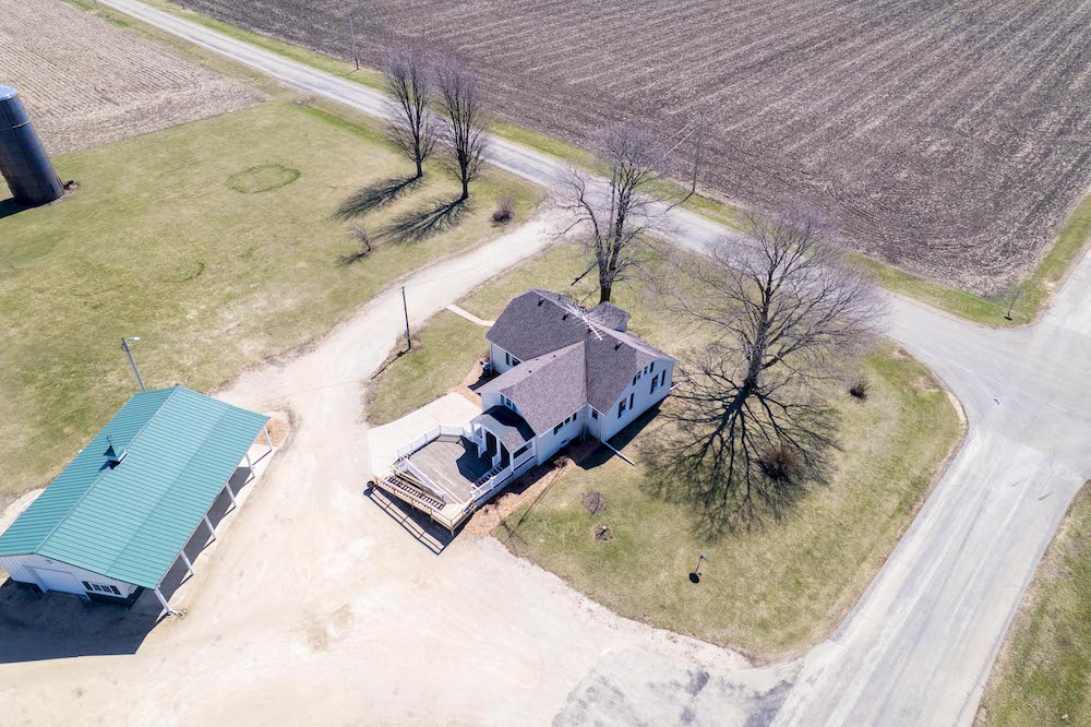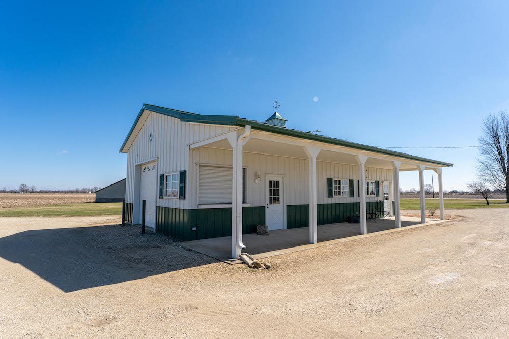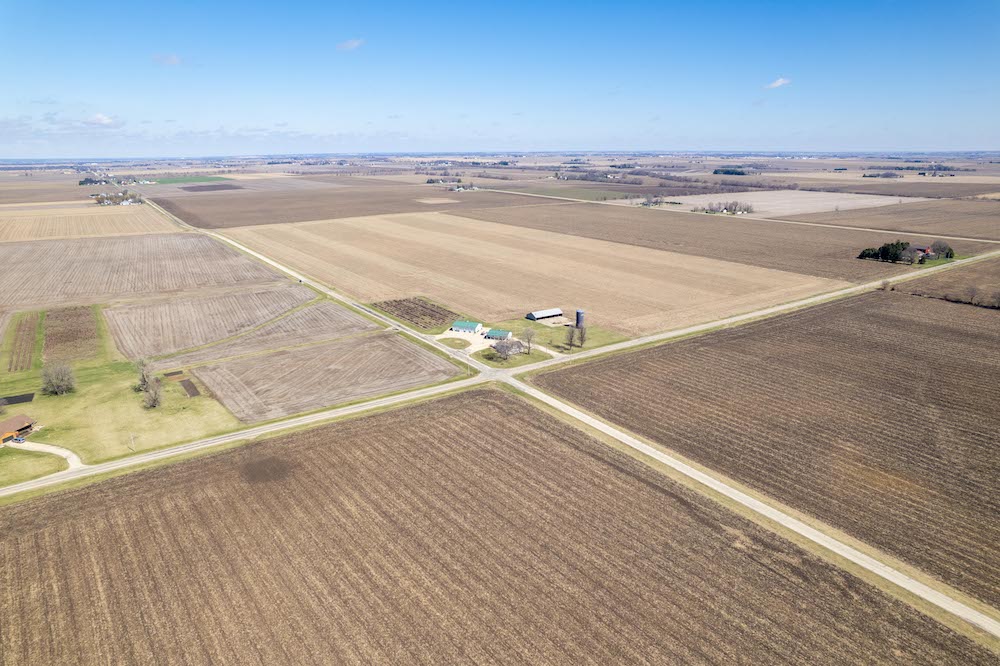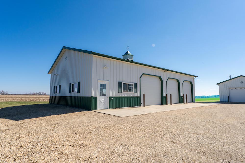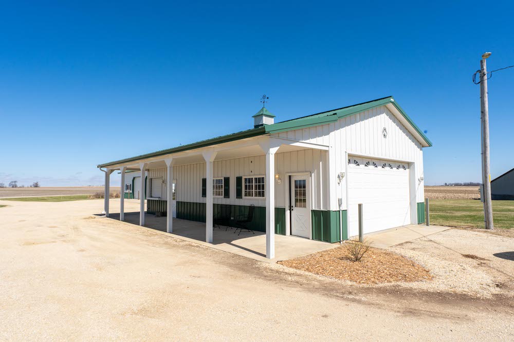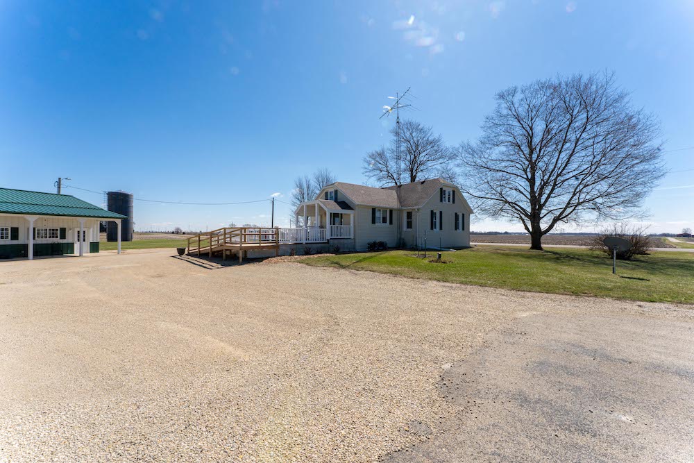 Located in a rural setting just outside of Rochelle, this Ogle County property offers a combination of residential living, functional outbuildings, and open space suited for a variety of uses. The layout provides separation from nearby properties while still maintaining access to town, making it a practical option for those looking for acreage with usable improvements. The farmhouse sits in a central position on the property and has been maintained with attention to its original layout while providing functional living space. Inside, the home features a natural flow between the kitchen, dining area, and family room. The kitchen is equipped with a large amount of cabinet storage and counter space, allowing for meal preparation and daily use. An eat-in island provides space for informal dining, while a separate dining room offers additional room for gatherings. The dining area connects directly to an oversized family room, creating a continuous main living space. The main level of the home includes two bedrooms and a full bathroom, offering convenient access without the need for stairs. Upstairs, there are two additional bedrooms along with space designated for a second bathroom that is ready for installation. This layout provides flexibility depending on how the home is used. From the kitchen, there is direct access to a back deck that overlooks the outbuildings and open areas of the property. This outdoor space connects the home to the working portions of the acreage and allows for easy movement between the structures. The outbuildings are a key component of the property and offer a range of uses. The primary building measures approximately 36 by 56 and is set up as a fully functional shop. It includes three overhead doors on one side for vehicles and an additional door for larger equipment access. The building is equipped with heat, hot water, floor drains, and extensive lighting. This setup supports equipment storage, maintenance work, or workshop use. A second building measures approximately 24 by 44 and includes a concrete floor. While currently unfinished, it provides a solid structure that can be completed and adapted for additional storage, workspace, or other uses. The design includes overhead doors on both sides, allowing for drive-through access that can accommodate trailers, boats, or equipment. An 80 by 40 open lean-to structure adds additional covered storage. This area is suitable for equipment, machinery, or vehicles and is positioned alongside a large concrete parking area that supports easy access and maneuverability. The open ground surrounding the buildings provides space that could be used for pasture, fencing, or general outdoor use. The layout supports the addition of livestock areas or continued use as open ground, depending on the next owner’s plans. This property combines a maintained farmhouse with multiple functional outbuildings and open acreage in a location that is a short drive from Rochelle. Its structure and layout support a range of uses, including residential living, equipment storage, and agricultural activities.
