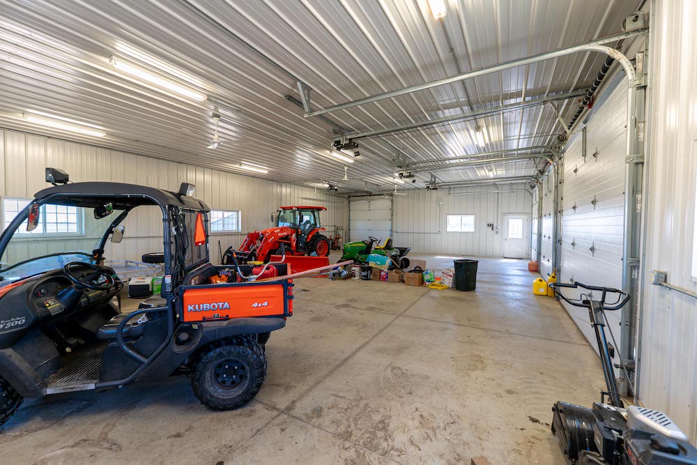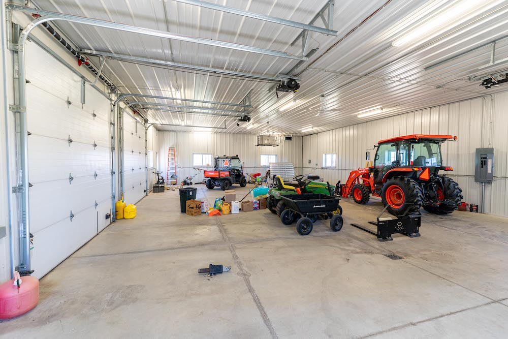 - 36x56 shop with heat, water, floor drains, and lighting