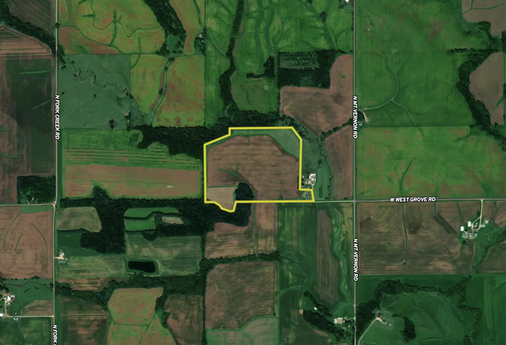 Located in the heart of Ogle County, this 51 +/- acres is located on the interior of the 224 +/- acre property. Turning off of Mt. Vernon Road onto West Grove Road, the road ends leading into the farm. Future survey will allow access to the road via a land to access the land. This parcel shares the same access as tract 1 coming off of West Grove Road. The majority of this tract is open agriculture fields with gently rolling hills and an average PI of 115. This piece is in the interior of the 224-acre farm. It consists of 33 +/- acres of farm ground that is bordered by 12 acres of CRP ground and some timber on the south side. There are 224 acres in total for sale and can be added to other acreages. Open tenancy 2025.