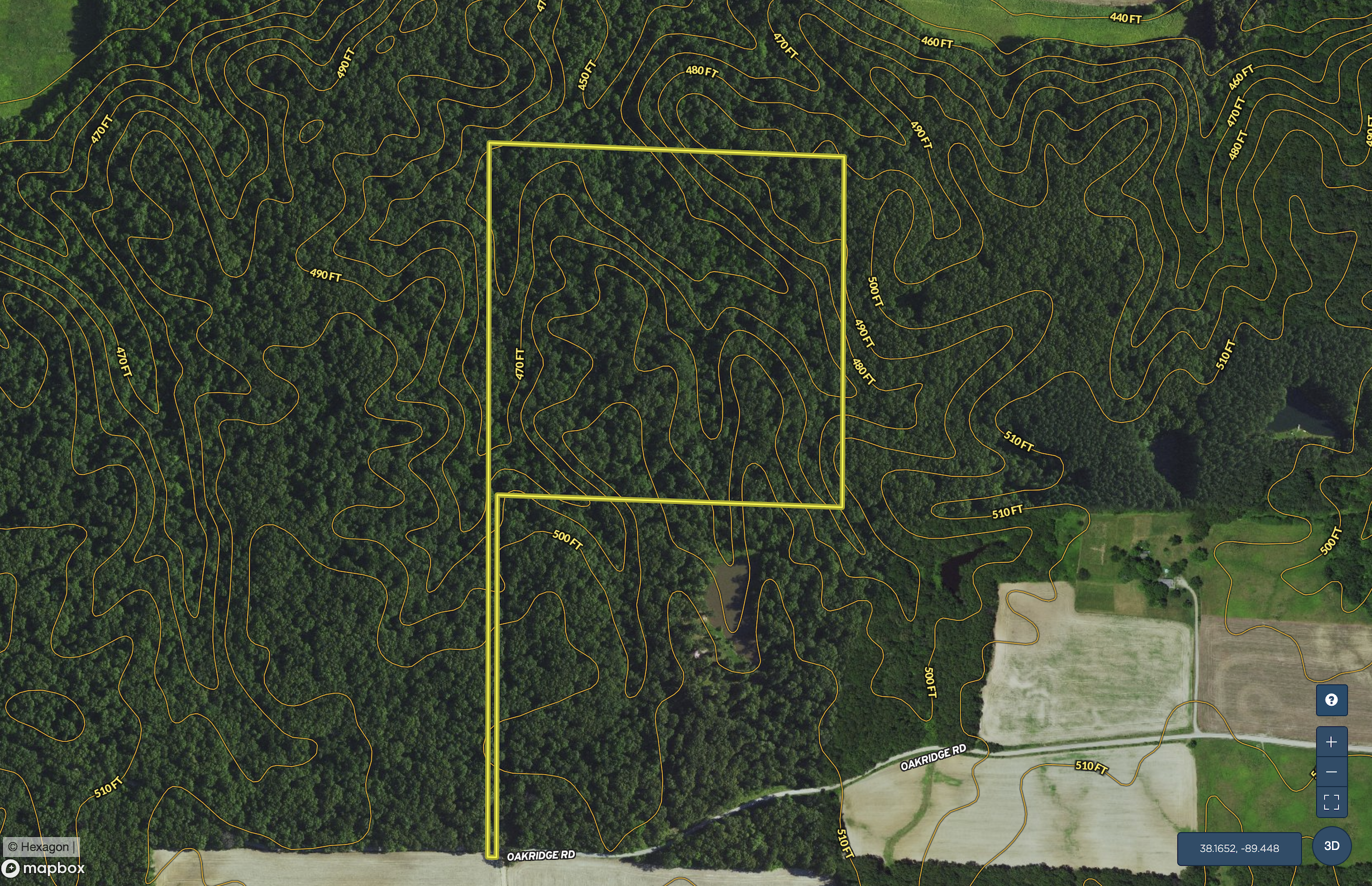 This property lays along Oakridge Road just 15 minutes northwest of Pinckneyville. As you enter the property there is a nice portable shed, roughly 200 square feet, to keep all your hunting necessities. Follow the well- maintained trail back into the heart of this mostly hardwood timber property where you are greeted by a quiet little campground where you can get away from everything. The mature timber has made way for some excellent wildlife habitat from the thriving deer and turkey population to the small game. If you are looking for your own little hunting tract with top-notch hunting, then this is a must see! Call today to set up your own private tour.