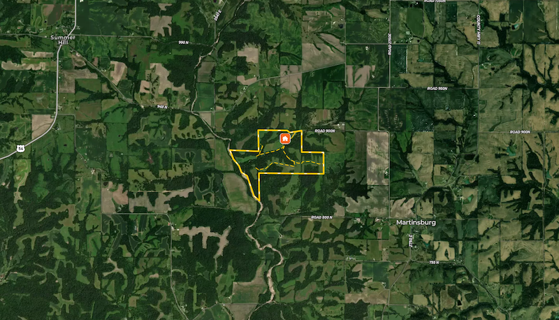 Located just west of Martinsburg, this 259.5± acre tract with a home and outbuildings sits quietly at the dead end of 190th Street. Offering complete privacy and seclusion, it’s the perfect retreat for those seeking a quiet country setting.