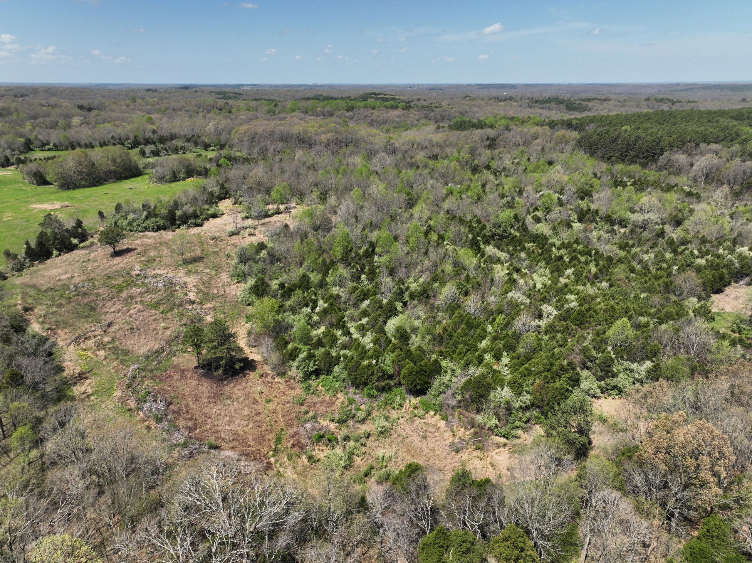 Diverse hunting tract with tillable acreage! This tract has numerous improvements geared toward whitetail and turkey hunting and is located in an area known for big bucks! It has 42.5+/- tillable acres that provide plenty of food for wildlife and a return on investment. Numerous smaller fields are scattered throughout the property and provide plenty of ideal food plot locations. The combination of smaller fields and the large tillable acreage has created miles of field edge and numerous funnels and pinch points throughout. It has a gently rolling topography in the fields with areas of steeper terrain and rock outcroppings within the timbered draws. The timber is a blend of softwoods and mast-producing hardwoods with areas of dense understory. A large rock bottom creek runs through the property and is a major travel corridor for wildlife in the area. Several cedar and autumn olive thickets provide ideal bedding cover close to food sources. An established trail system provides easy travel throughout the property. The property has no road frontage and is accessed from the west side via a gated easement. If you’re looking for a diverse hunting tract with tillable acreage, call us today and schedule your private tour!