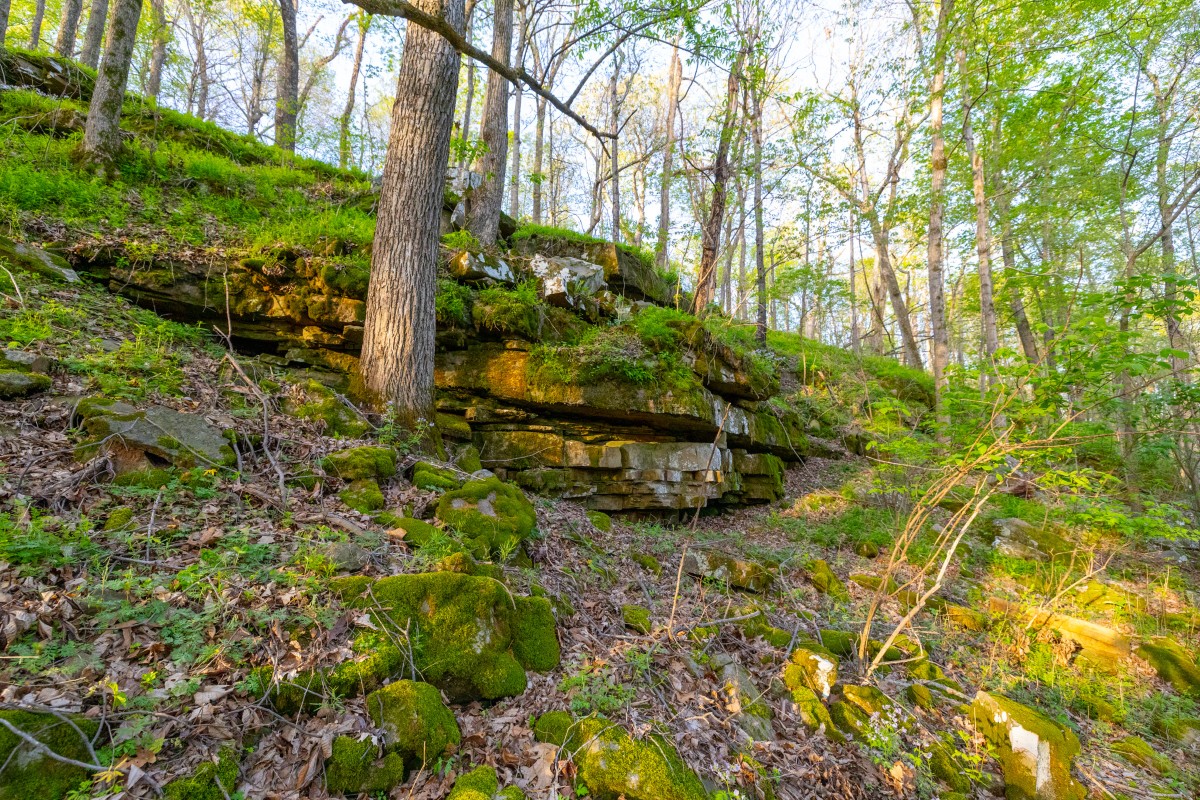 - Rolling topography with areas of steeper terrain and a bluff that forms the transition to river bottom acreage