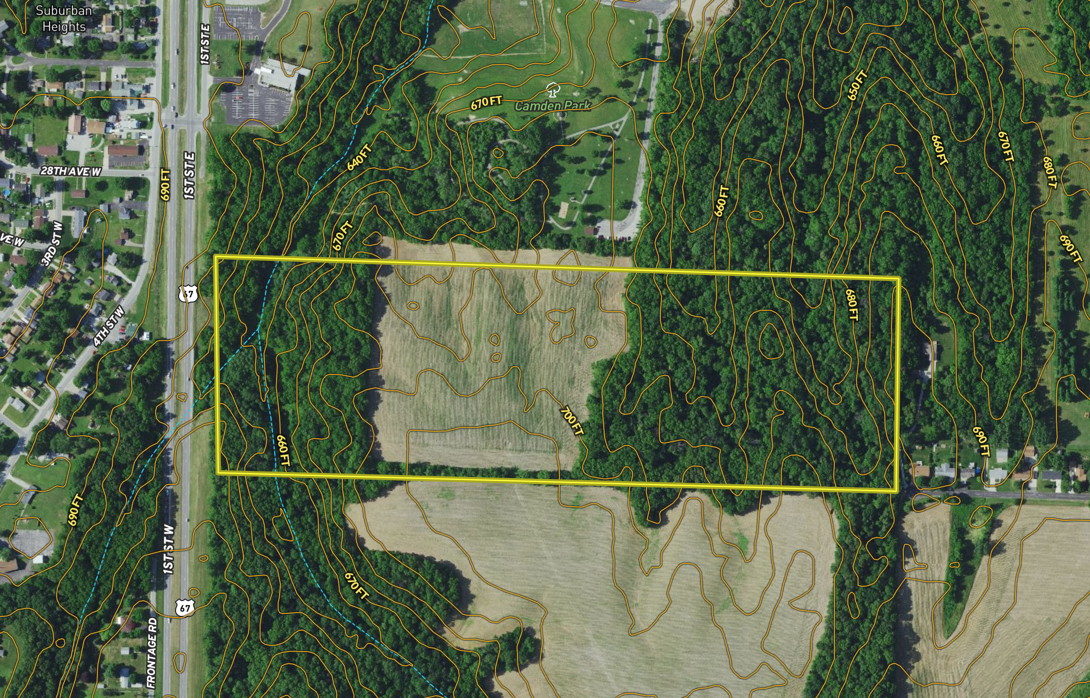 Situated on the south side of Camden Park, you will find this recreational property. The property is made up of approximately 15 acres currently in row crop production and generating $1,500 per year in income. The soils on the farmland are primarily made up of Fayette silt loam, Sylvan silt loams, and Sylvan silty clay loam with an average productivity index of 106.9 and is currently being rotated between soybeans and corn. The remainder of the property is heavily wooded and partially rolling providing excellent cover and habitat for wildlife. The woods also have several small drainages running through the property that provide a seasonal water source for the wildlife. The standing timber on the property is phenomenal and notably consists of many walnut and oak variety that should have a strong potential income. If you are in the market for a universal recreational property near Milan, please give the listing agent a call today for additional information or to schedule a showing.