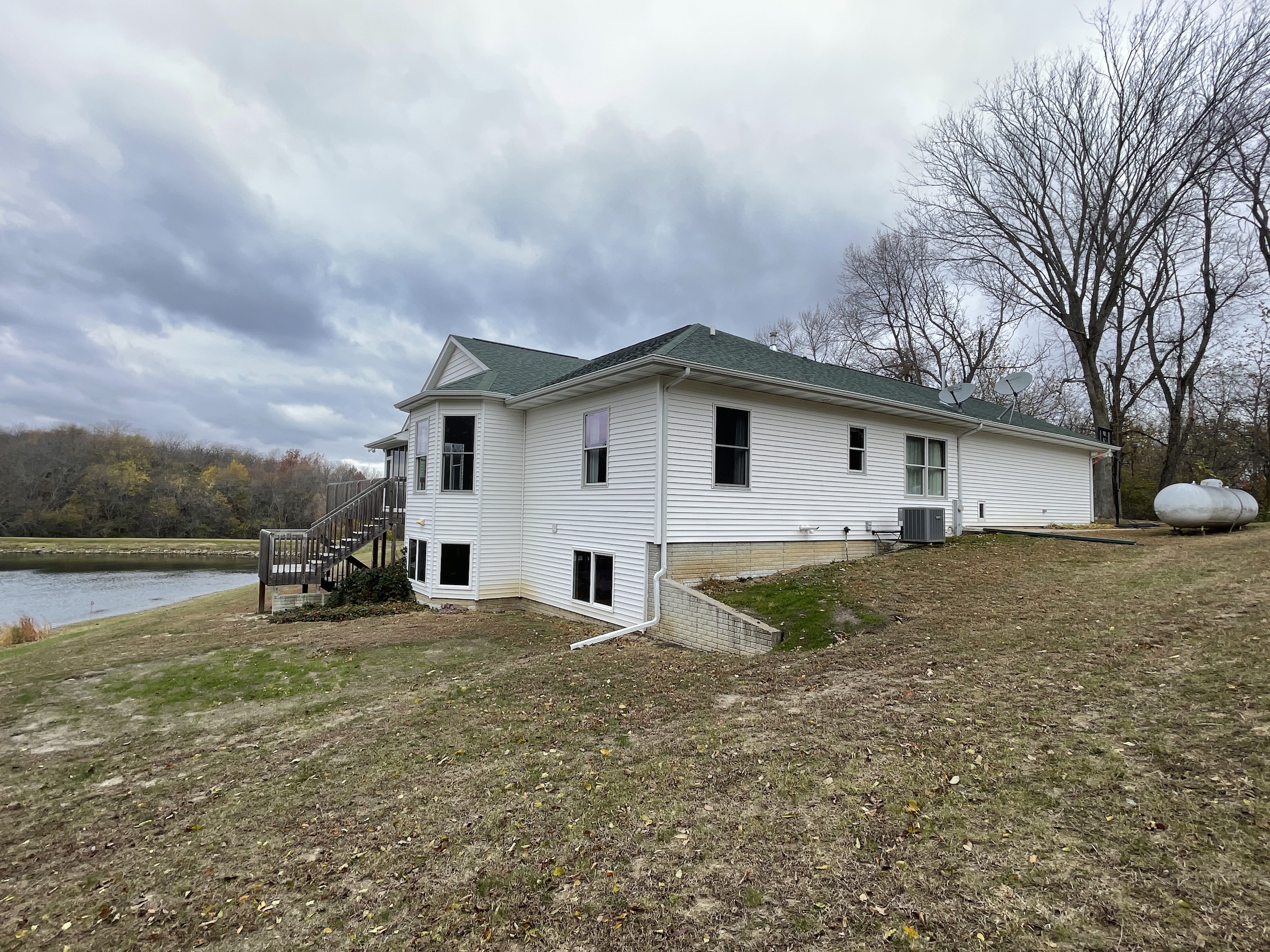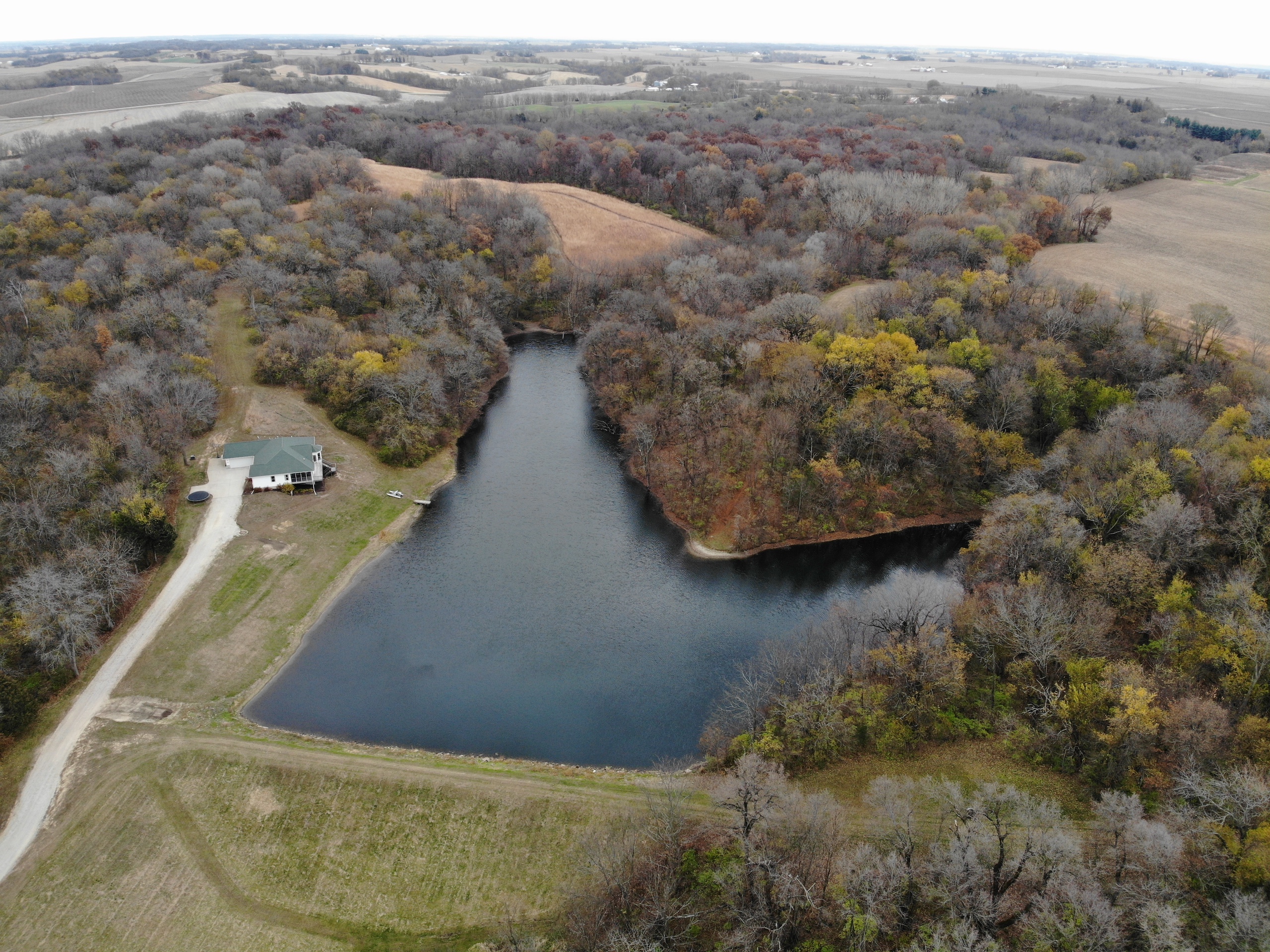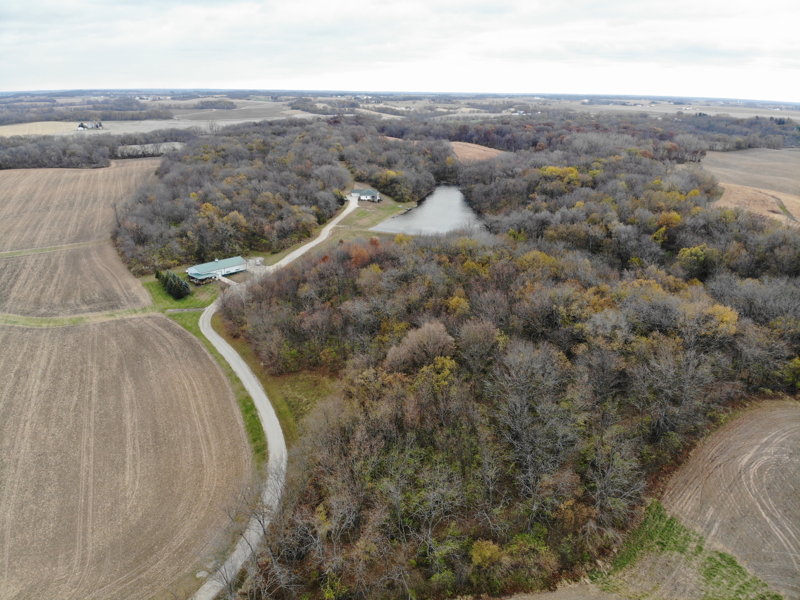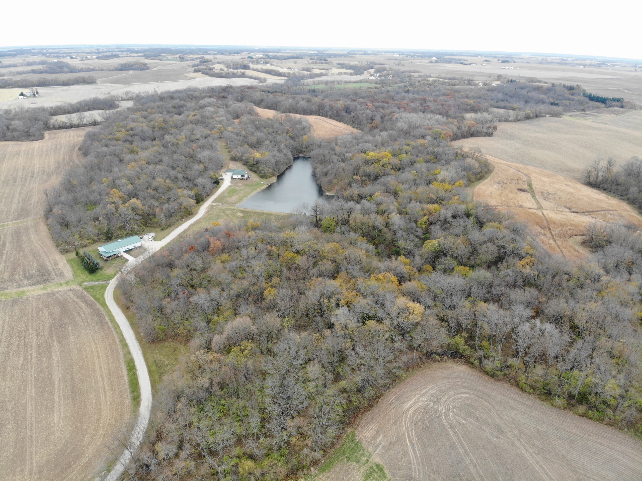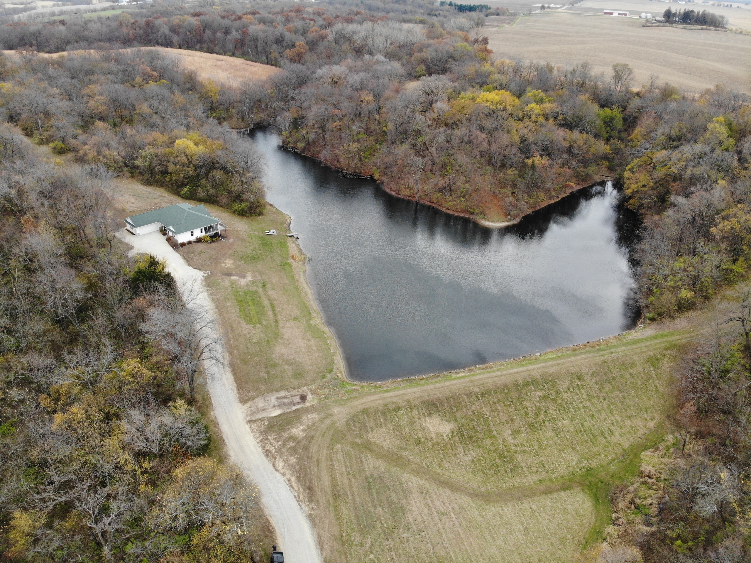 If you are in the market for a recreational property with a custom-built home in an extremely secluded location, this property will be at the top of your list to see, as it offers way more than your traditional property! The 1,890 sq ft home was constructed in 2013 by renowned builder Hazelwood Homes and features a full basement and a 2-car attached garage. The main level of the home features the master suite, with an exceptional master bathroom, living area, beautiful kitchen, formal dining room, laundry room and two additional bedrooms. The living area and master bedroom also have access to the attached deck that offers one of the most beautiful views overlooking the 3-acre pond. The basement is mostly unfinished, but does offer several options for storage, additional living space, bedrooms, man cave and more! There is a concrete room in the basement where you can store your important keepsakes, and there is also a large storage room that houses the furnace and water softener. There is plumbing roughed in the floor to accommodate an additional bathroom, a bar, and has access outside below the deck overlooking the pond. The pond is extremely clear, and is fully stocked with largemouth bass, bluegill, redear sunfish, and catfish. The pond offers excellent fishing and is also a key water source for the local deer herd and the waterfowl enjoy flocking to it as well. Just down the driveway from the home is the ultimate shop building! This 42’ X 82’ building was built by Morton Buildings in 2008 and has everything a homeowner needs from full concrete, wrap-around porch, large overhead doors, dual zone in-floor heat, hot and cold water, septic, and acoustic ceilings to keep the noise to a minimum. It also features additional space that could be used as guest quarters. The remainder of the property is made up of timber and approximately 18 acres of open fields that create prime habitat to hunt mature deer in the fall, and strutting turkeys in the spring. 8.71 acres are enrolled in a CRP program through September 2030 and pays $1,300 annually. The remaining field could be used as wildlife habitat, livestock, hay, food plots, or a mixture of all. The property also has numerous trails within making access easy by ATV or side by side. If you’re in the market for an absolutely beautiful, move-in-ready property with many appealing features. Give the listing agent a call today for your private showing or for additional information.