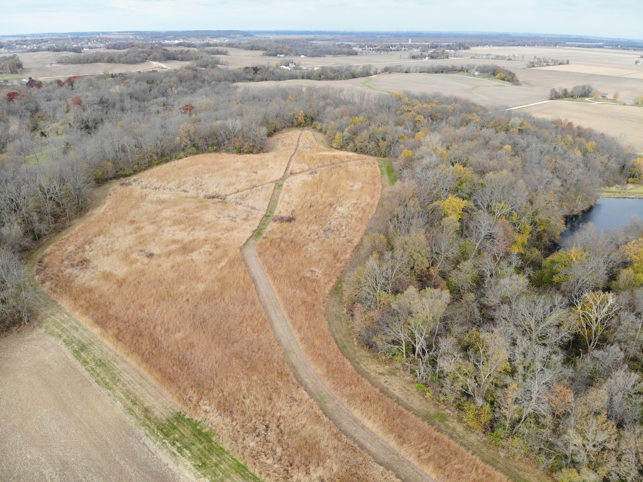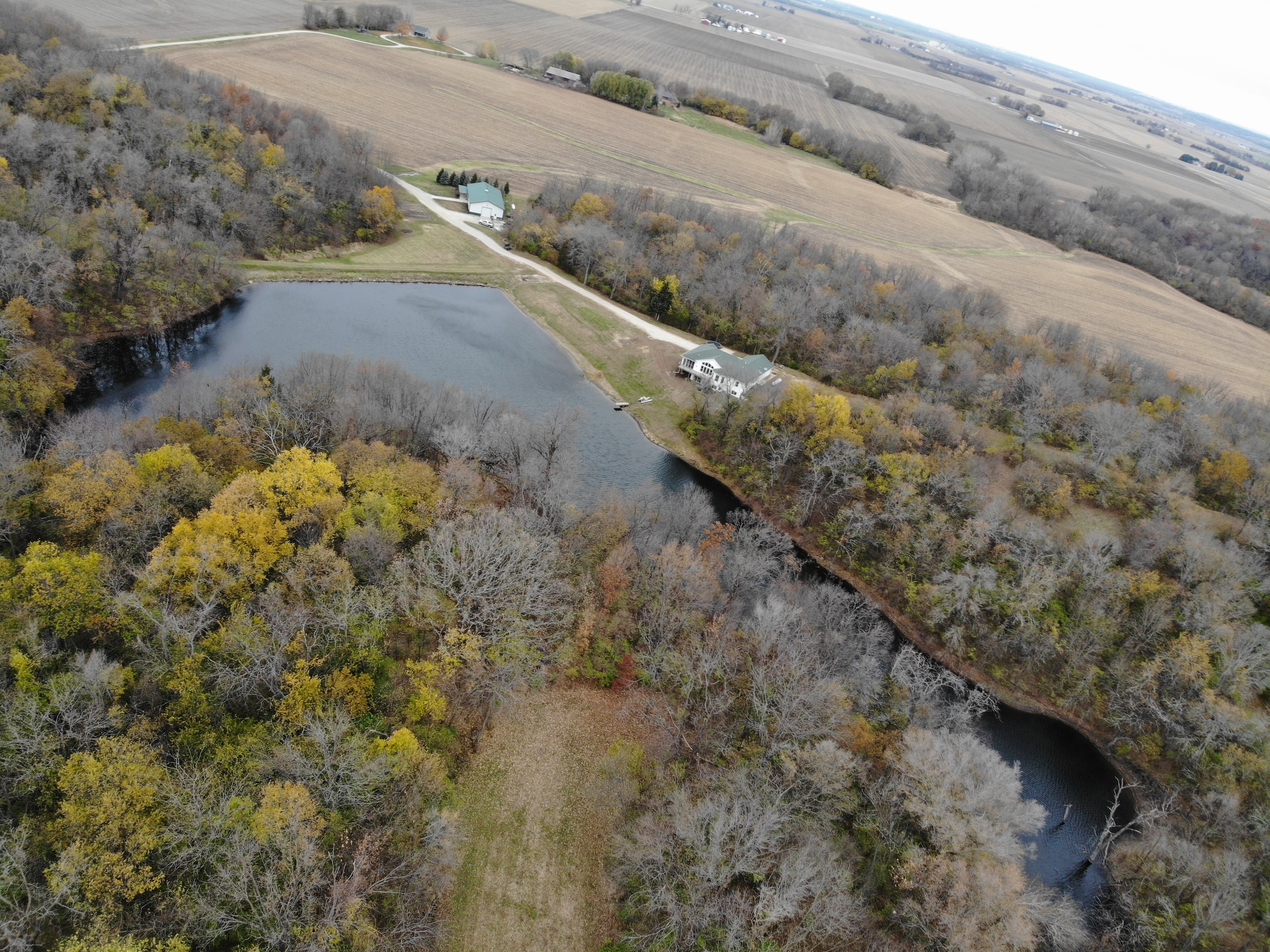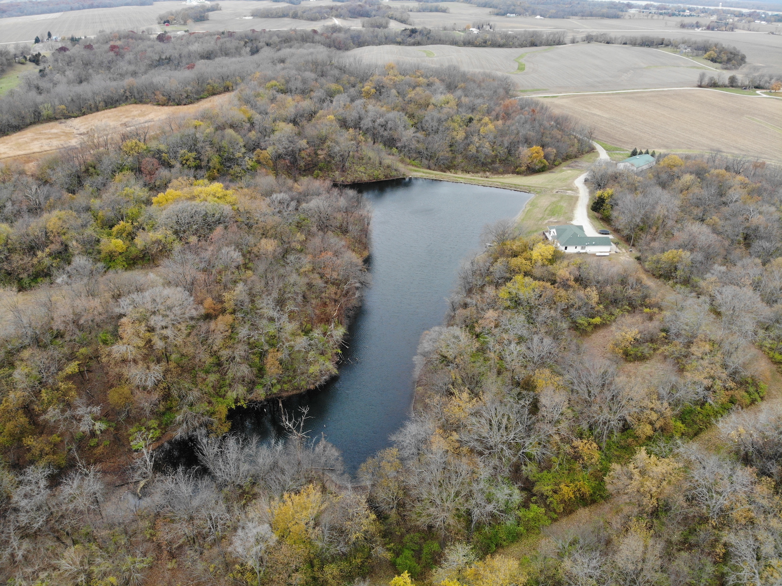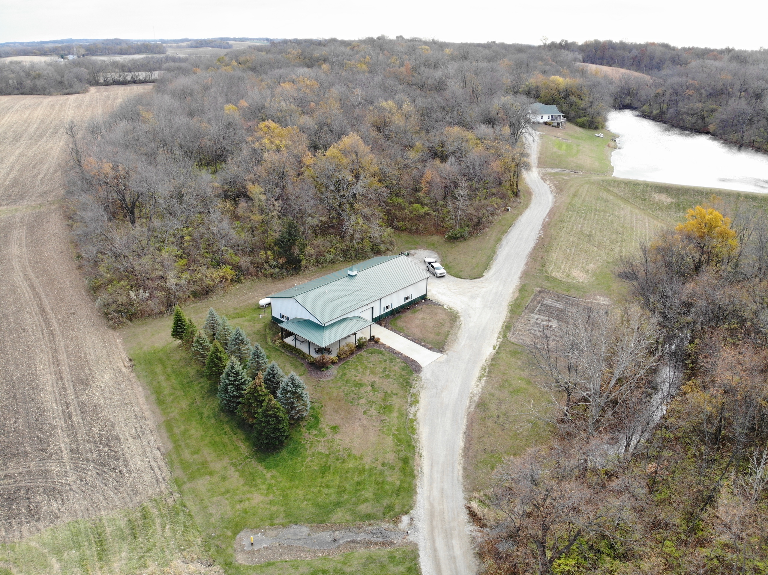 If you are in the market for a recreational property with a custom-built home in an extremely secluded location, this property will be at the top of your list to see, as it offers way more than your traditional property! The 1,890 sq ft home was constructed in 2013 by renowned builder Hazelwood Homes and features a full basement and a 2-car attached garage. The main level of the home features the master suite, with an exceptional master bathroom, living area, beautiful kitchen, formal dining room, laundry room and two additional bedrooms. The living area and master bedroom also have access to the attached deck that offers one of the most beautiful views overlooking the 3-acre pond. The basement is mostly unfinished, but does offer several options for storage, additional living space, bedrooms, man cave and more! There is a concrete room in the basement where you can store your important keepsakes, and there is also a large storage room that houses the furnace and water softener. There is plumbing roughed in the floor to accommodate an additional bathroom, a bar, and has access outside below the deck overlooking the pond. The pond is extremely clear, and is fully stocked with largemouth bass, bluegill, redear sunfish, and catfish. The pond offers excellent fishing and is also a key water source for the local deer herd and the waterfowl enjoy flocking to it as well. Just down the driveway from the home is the ultimate shop building! This 42’ X 82’ building was built by Morton Buildings in 2008 and has everything a homeowner needs from full concrete, wrap-around porch, large overhead doors, dual zone in-floor heat, hot and cold water, septic, and acoustic ceilings to keep the noise to a minimum. It also features additional space that could be used as guest quarters. The remainder of the property is made up of timber and approximately 18 acres of open fields that create prime habitat to hunt mature deer in the fall, and strutting turkeys in the spring. 8.71 acres are enrolled in a CRP program through September 2030 and pays $1,300 annually. The remaining field could be used as wildlife habitat, livestock, hay, food plots, or a mixture of all. The property also has numerous trails within making access easy by ATV or side by side. If you’re in the market for an absolutely beautiful, move-in-ready property with many appealing features. Give the listing agent a call today for your private showing or for additional information.