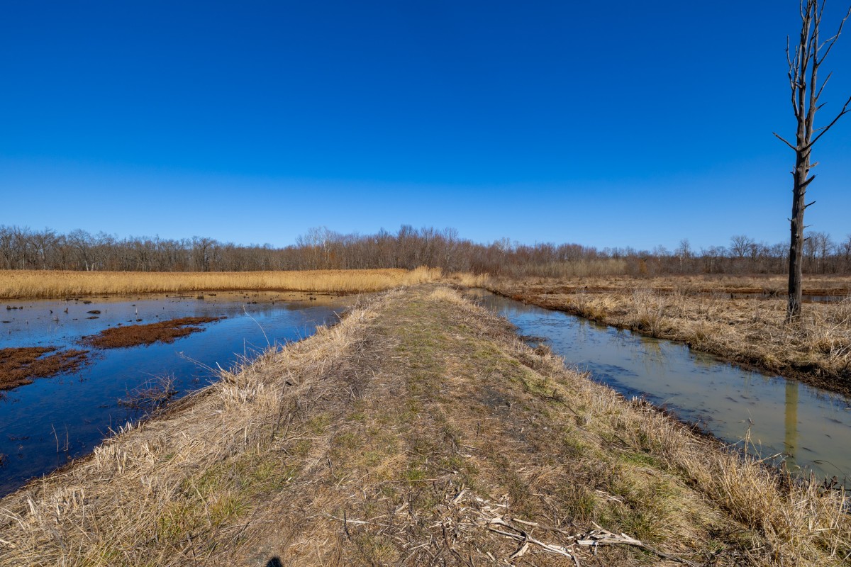 - Prime waterfowl hunting property with water control structure and bordering no hunting