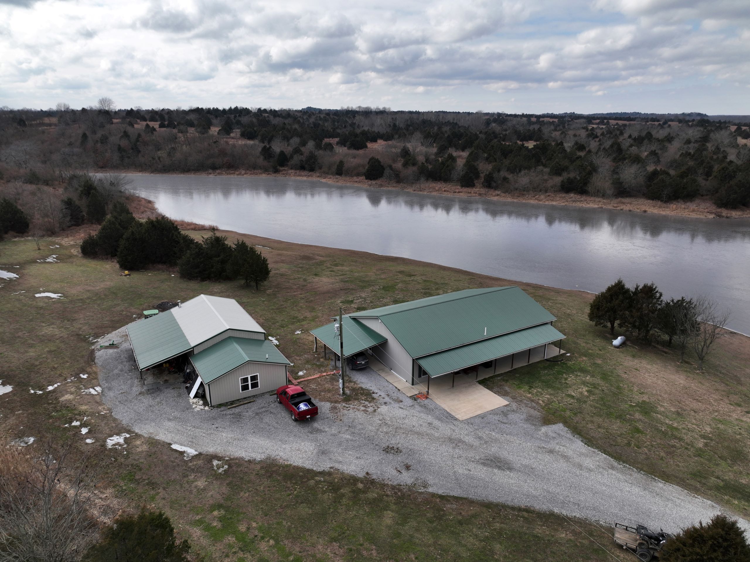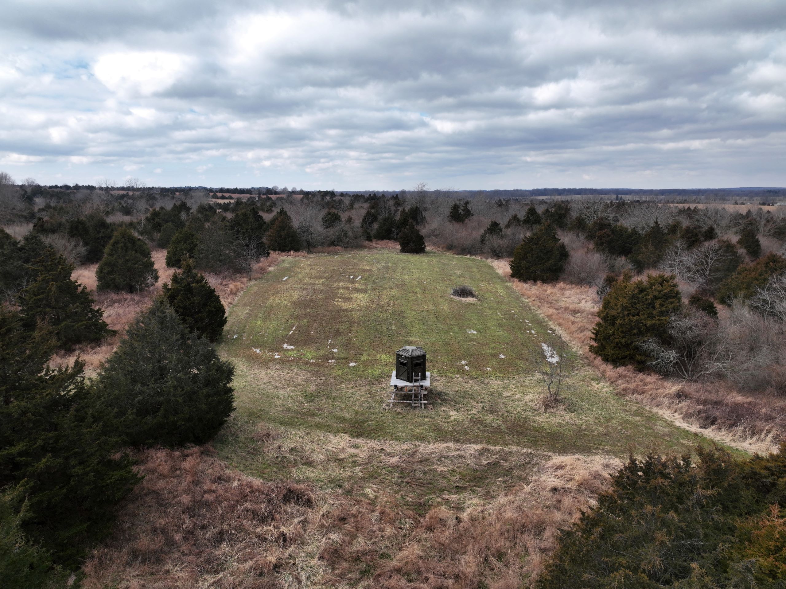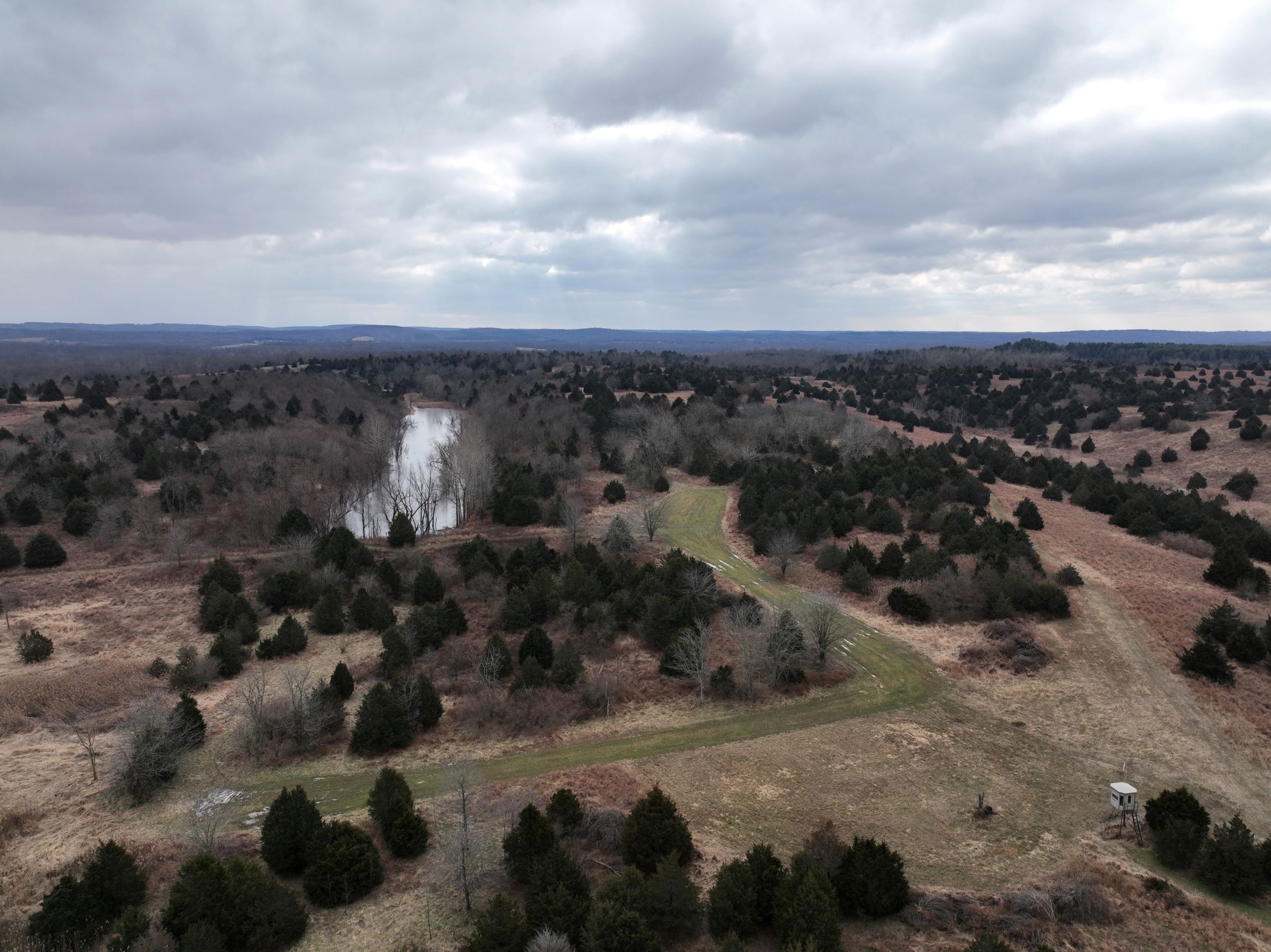 Diverse hunting tract with home & shop! This is a unique property that offers great habitat for whitetails and has a beautiful home overlooking a 7+/- acre lake. The home has 2,600 S.F. of living space with 4 bedrooms and 3 bathrooms. It has a spacious living and kitchen area with a walk-out screened-in porch where you can sit and enjoy views of the lake. An additional common area provides plenty of room for entertaining guests. Next to the home is a 60’x24’ shop with a finished living area, kitchenette, bathroom and bedroom. It has additional garage storage and an attached covered lean-to for equipment and gear. The home has a large yard area with a gravel drive and plenty of parking space. The property has a diverse blend of habitat types with everything needed to grow, hold and harvest big bucks. There are several established food plots throughout the farm with multiple elevated blinds. Several more open areas throughout the farm could easily be converted to additional food plot acreage. It has areas of softwoods and mast-producing hardwoods on the eastern portion of the farm and some exceptional bedding and security habitat throughout the rest of the farm. The blend of native grasses and cedars provides the ideal cover that deer need to grow old! There are multiple smaller ponds scattered throughout, providing plenty of water for wildlife all year long. An established trail system provides easy travel for farm work or hunting access. If you’re looking for a diverse hunting tract with a home and shop, give Land Specialist Justin Mason a call today and schedule your private tour!