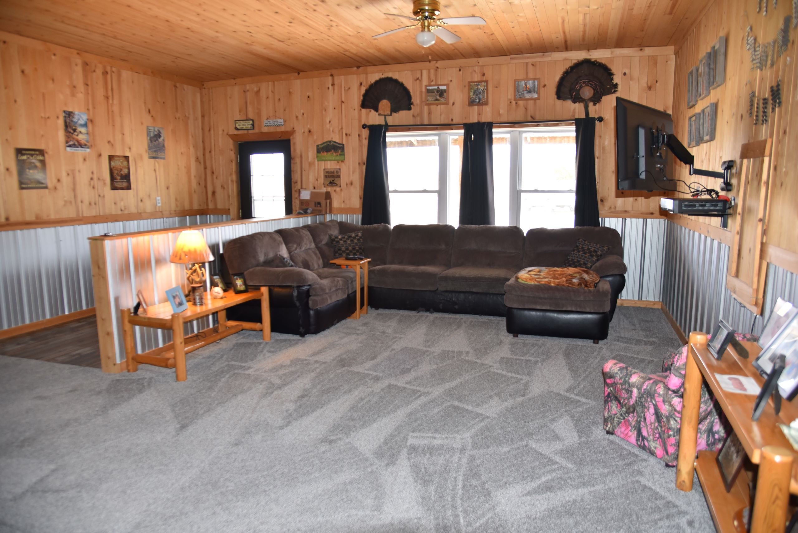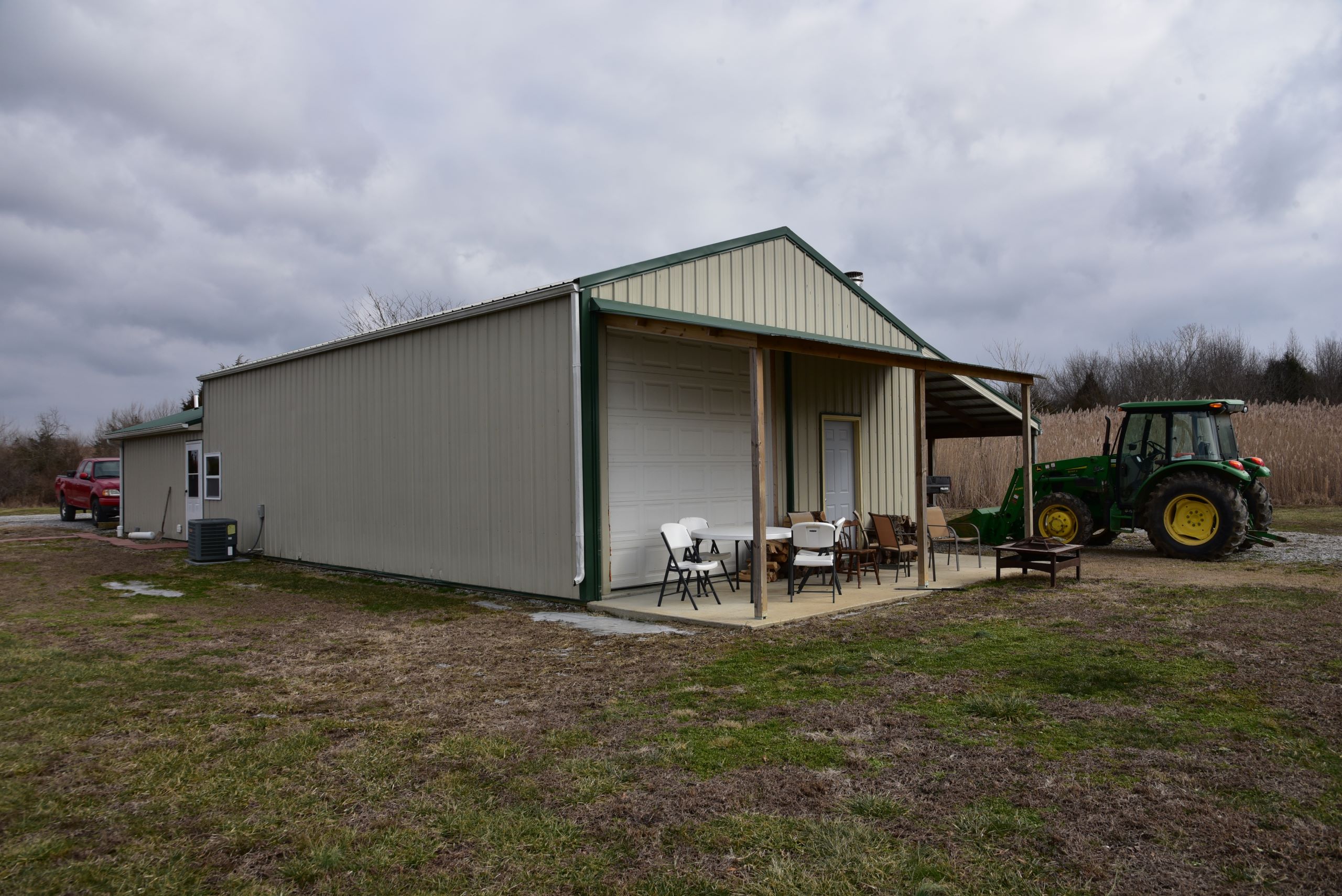 - A garage area and lean-to shed provide ample storage
