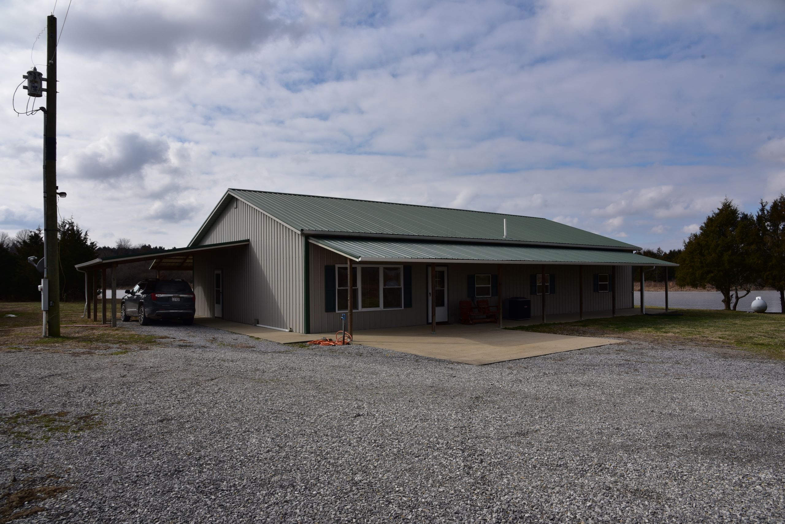 - Covered front porch and attached carport