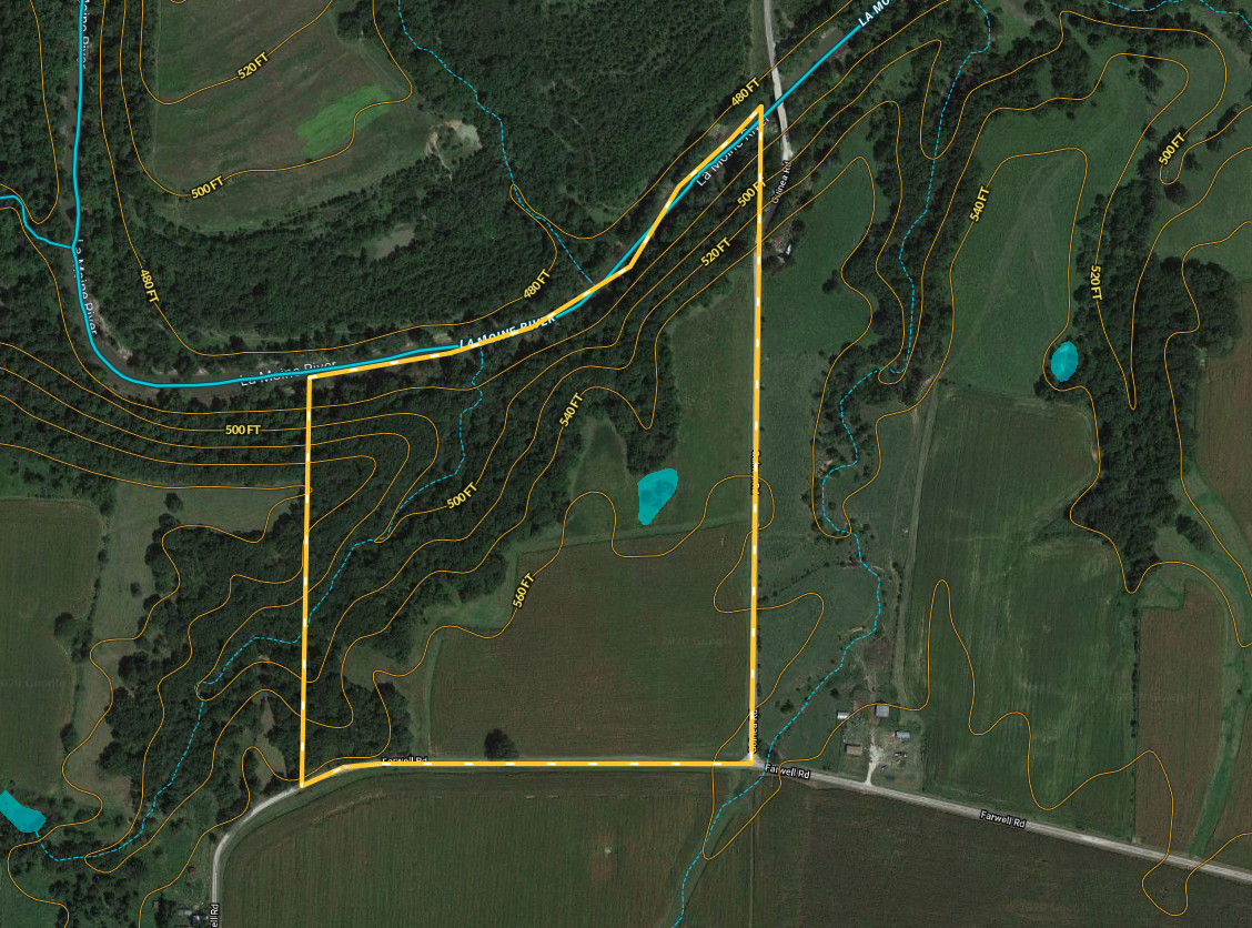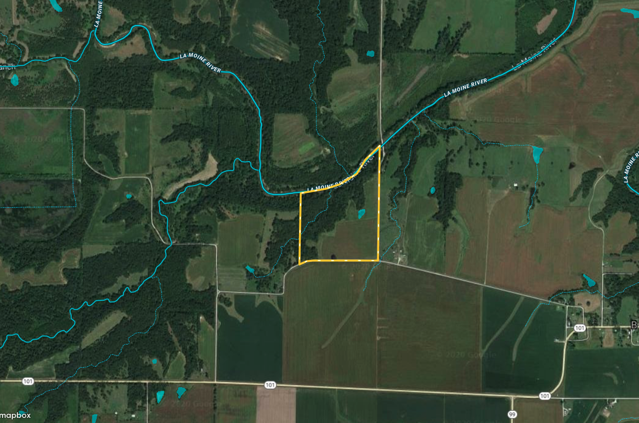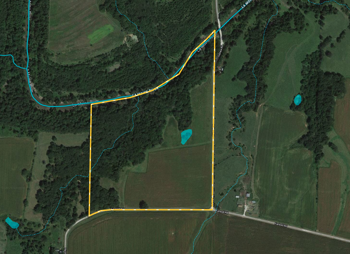 Tillable, Wild Game, Whitetail, Turkey, Waterfront, Creek, Investment, Minerals, River, Big Game, Small Game, Other Game, Frontage, Roads, Road Frontage, County Road, Road Access, Pavement, Tillable / Production Acres, Corn, Soybeans, Area Features, Public Hunting, Public Fishing, Camping/Campground, Golf Course, Airport, Activities on Property, Hunting, Fishing, Hiking, ATV Riding, Horseback Riding, Camping, Family Activities, Seller's Mineral Rights Convey