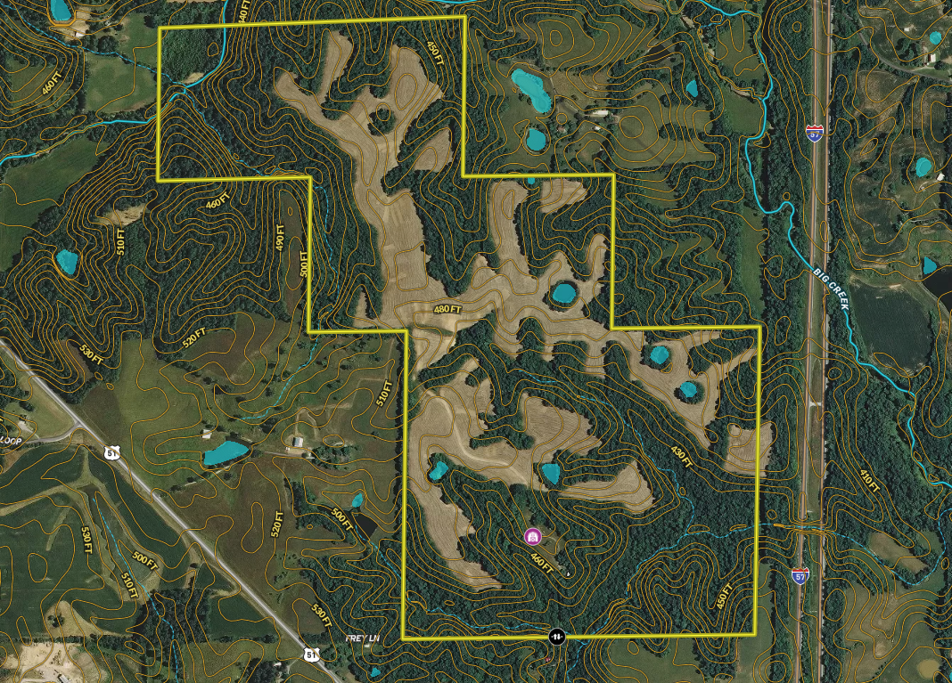 If you are in the market for a top-end whitetail hunting farm, then check this one out! Located on a dead-end road, this is one of the most well-balanced farms on the market. At first glance, you will notice how the tillable fields seem to run throughout the entire property. Not only does this spread out the food across the entire farm but it provides more edge for whitetails to travel. As those deer move you can also see that they don’t have to travel far before hitting another water source. There are 5 ponds and two creeks almost evenly spread throughout. And on top of both of these features, the timber was recently select cut, so the woods are packed full of treetops and native browse. This 1-2-3 punch of food, water and cover create the most ideal situation for deer and turkeys to grow and flourish on the property. Upon entering through the twin gates, the private road will meander through the timber and open up into some small pasture fields. This would make the ideal building site for that dream hunting lodge. Utilities are there so you can tie right into the existing service. Flip through the years of hunting photos and then give us a call to schedule a showing.